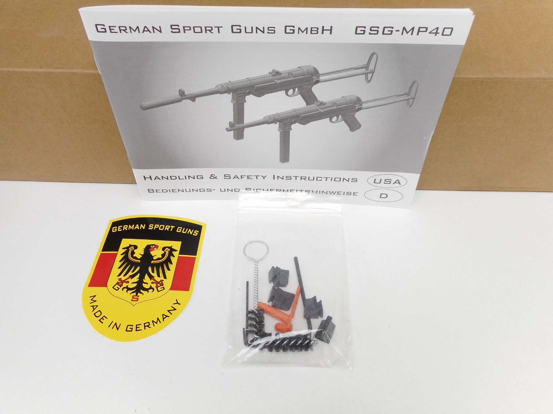 GSG , MODEL: MP40 , CALIBER: 22 LR , COMES WITH BOX, MAGAZINE, MANUAL, BORE BRUSH, EXTRA FRONT SIGHT INSERTS, 3 ALLEN KEYS AND A CREST. BORE IS EXCELLENT, APPEARS AS NEW MAY HAVE BEEN TEST FIRED. HOODED FRONT SIGHT. ADJUSTABLE REAR SIGHT. FOLDING SKELETON STOCK. SYNTHETIC GRIP PANELS. SHOWS VIRUALLY NO HANDLING MARKSACTION: SEMI AUTOMATIC RIFLE , BARREL LENGTH: 12" , SERIAL # BL43110 , CONDITION: AS NEW IN BOX , CLASS: CANADIAN NON RESTRICTED CLASS