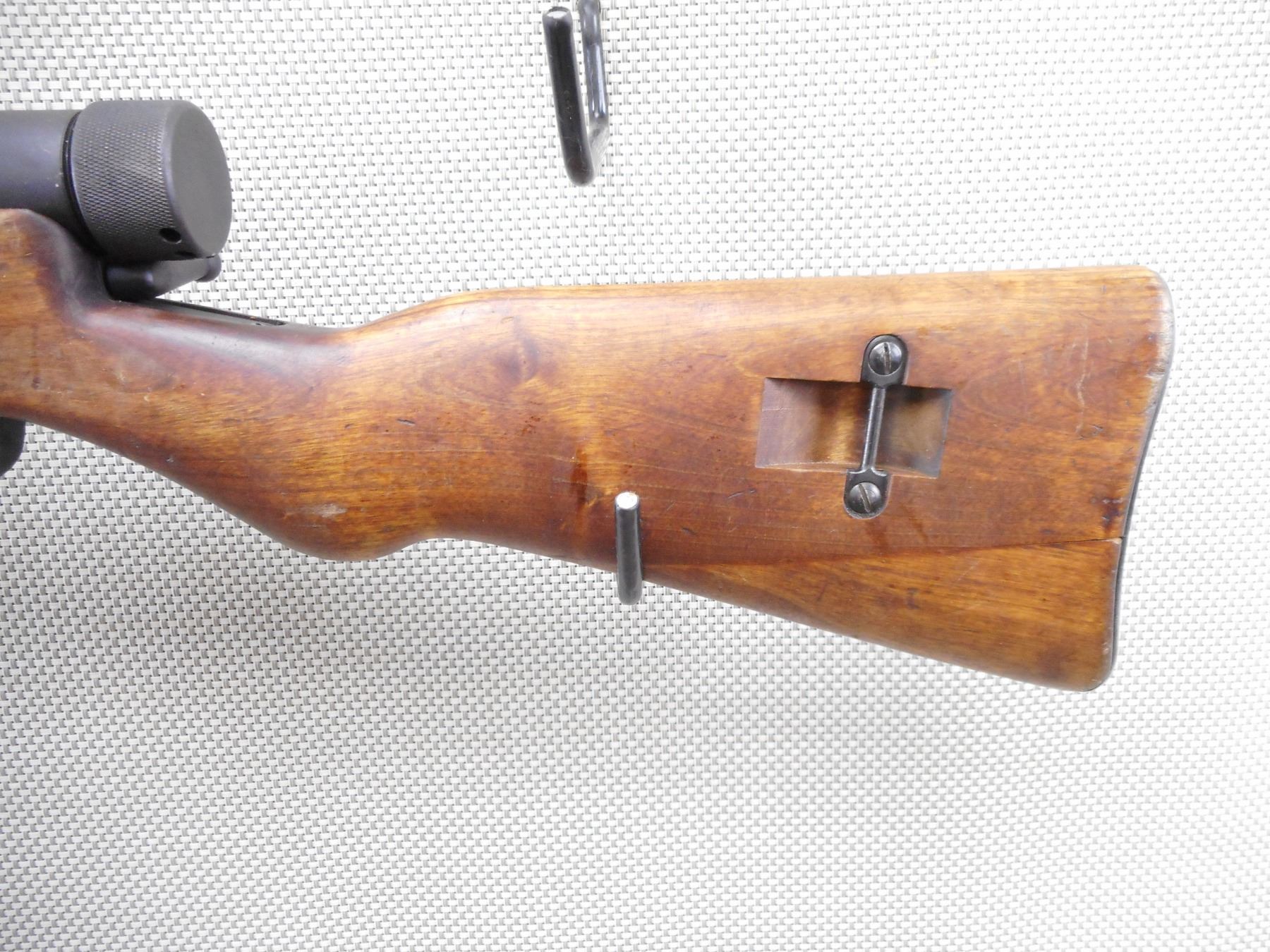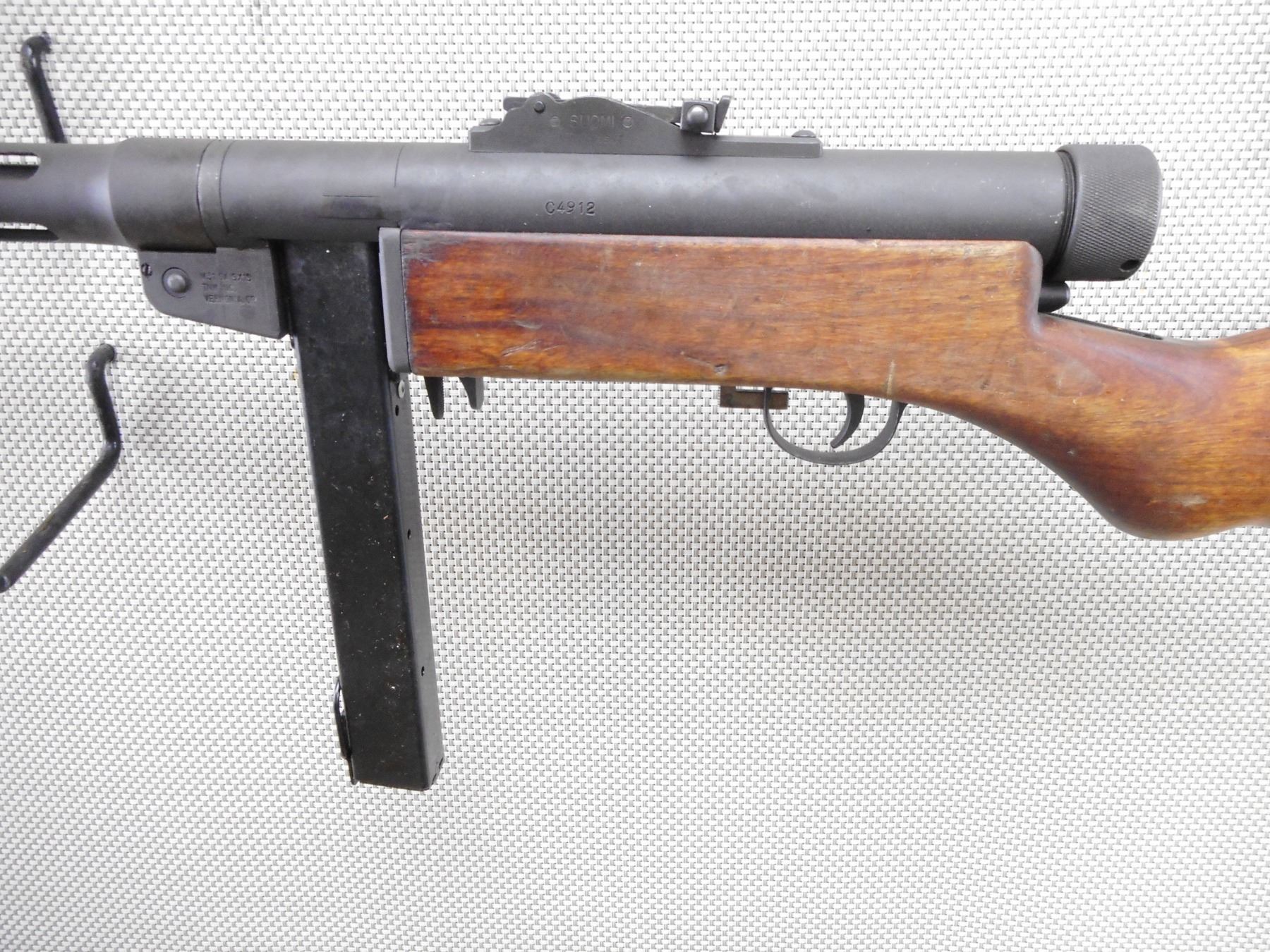 TNW , MODEL: SUOMI M31 , CALIBER: 9MM LUGER , COMES WITH MAGAZINE. BORE IS VERY GOOD. BLADE FRONT AND ADJUSTABLE REAR SIGHTS. SHROUDED BARREL. ORIGINAL MILITARY ONE PIECE HARDWOOD STOCK WITH SLING SWIVEL LOOPS. STEEL BUTT PLATE. LEATHER SLING MARKED SA NOT ATTACHED. SHOWS SOME HANDLING MARKS. ACTION: SEMI AUTOMATIC RIFLE , BARREL LENGTH: 19" , SERIAL # C4912 , CONDITION: 6/10 , CLASS: CANADIAN NON RESTRICTED CLASS