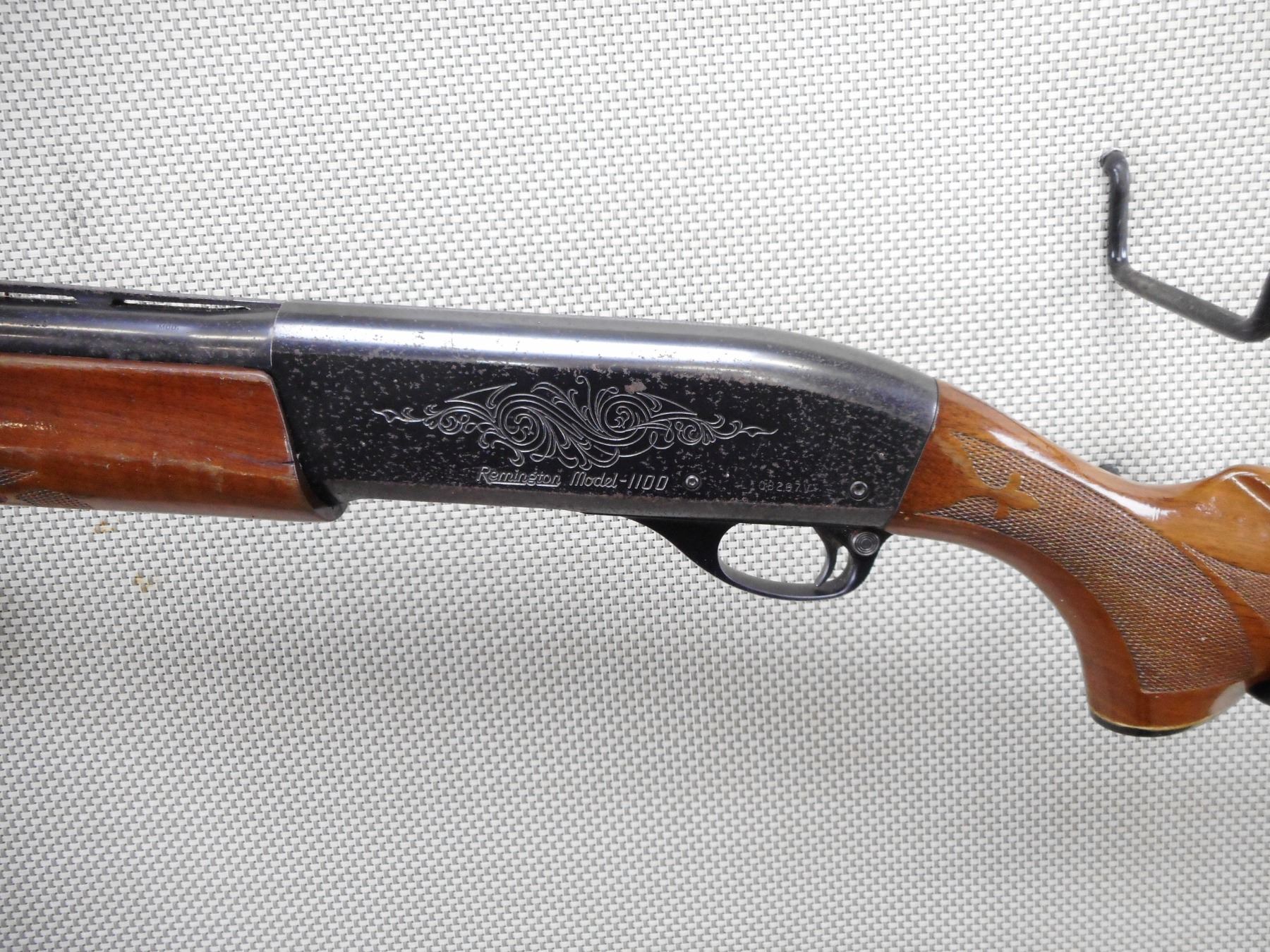 REMINGTON , MODEL: 1100 , CALIBER: 12GA X 2 3/4" , BORE IS VERY GOOD. EXTERNAL REMOVEABLE MODIFIED CHOKE. MISSING THE FRONT BEAD SIGHT. HAS THE MID BEAD SIGHT ON A VENTED RIB BARREL. CHECKERED TWO PIECE HARDWOOD STOCK WITH CRACKED AND CHIPPED FOREND. PLASTIC BUTT PLATE. SHOWS SOME HANDLING MARKS. ACTION: SEMI AUTOMATIC SHOTGUN , BARREL LENGTH: 22" , SERIAL # L108297V , CONDITION: 6/10 , CLASS: CANADIAN NON RESTRICTED CLASS