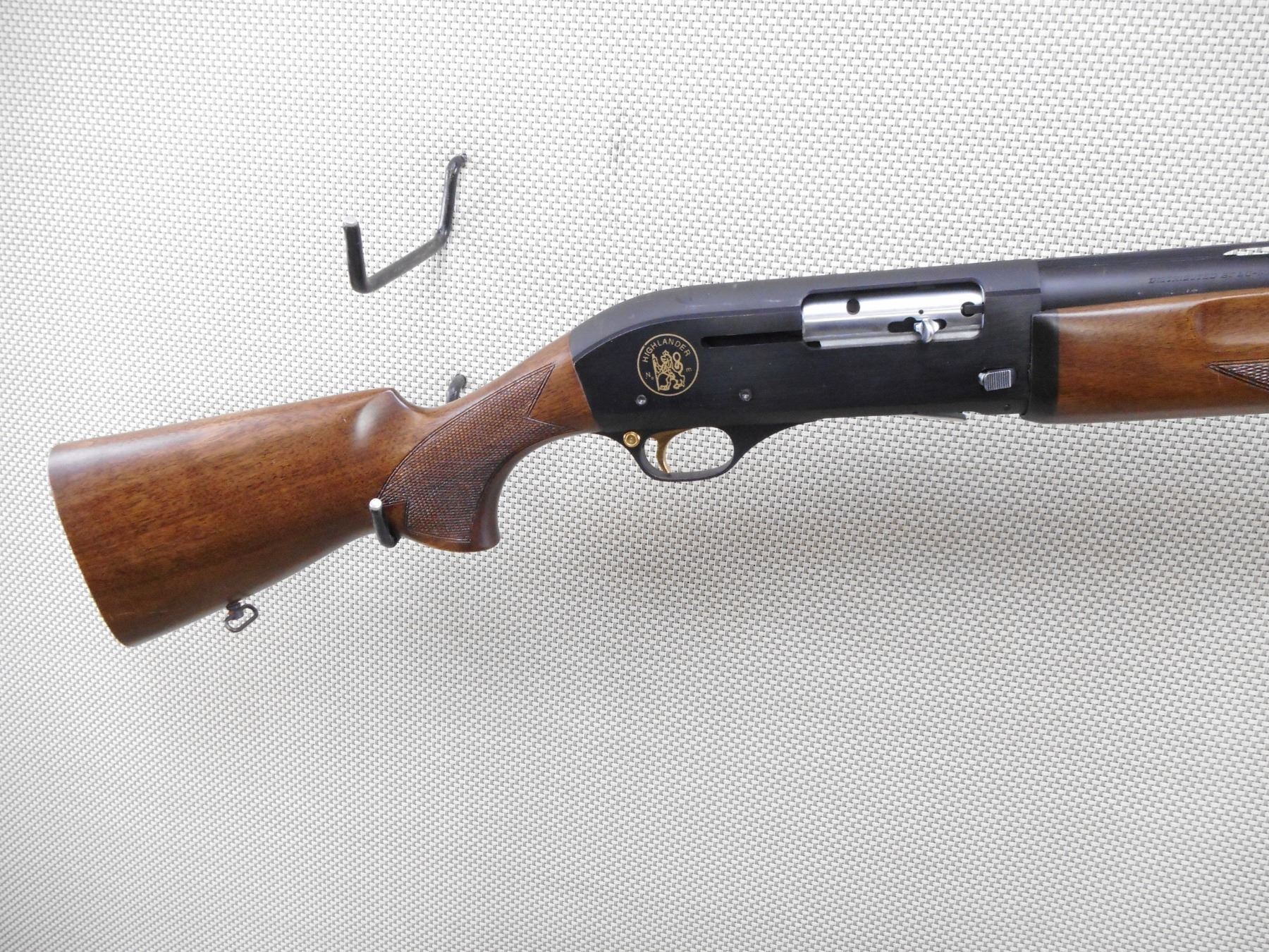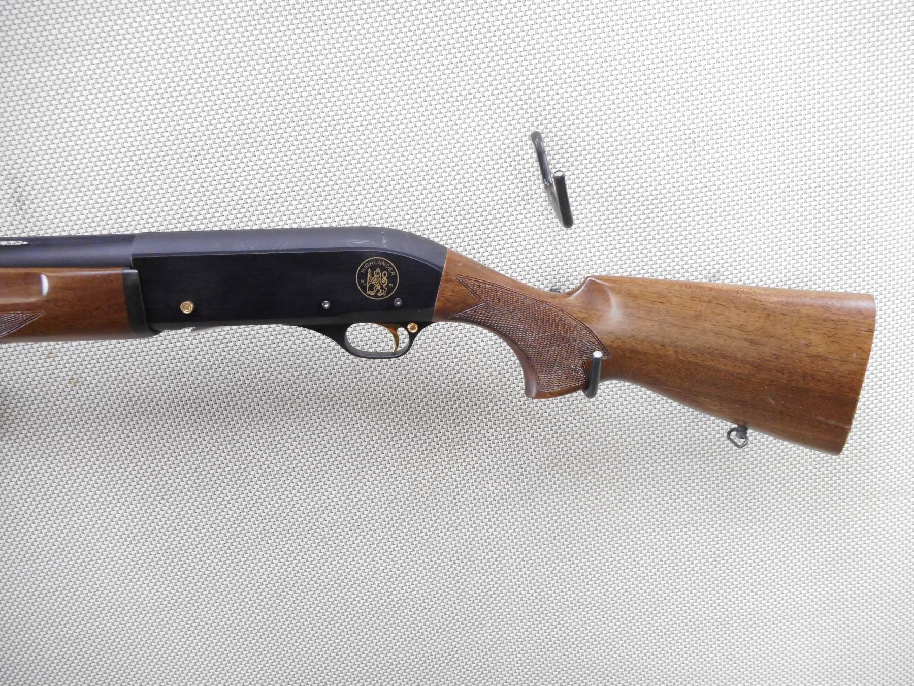 NORMARK , MODEL: HIGHLANDER , CALIBER: 12GA X 3" , BORE IS GOOD. FIXED FULL REMOVEABLE CHOKE. BEAD FRONT SIGHT ON A VENTED RIB BARREL. CHECKERED TWO PIECE HARDWOOD STOCK THAT IS MISSING THE BUTT PLATE. SLING SWIVEL LOOPS. SHOWS SOME HANDLING MARKS. ACTION: SEMI AUTOMATIC SHOTGUN , BARREL LENGTH: 28" , SERIAL # 33624 , CONDITION: 6/10 , CLASS: CANADIAN NON RESTRICTED CLASS