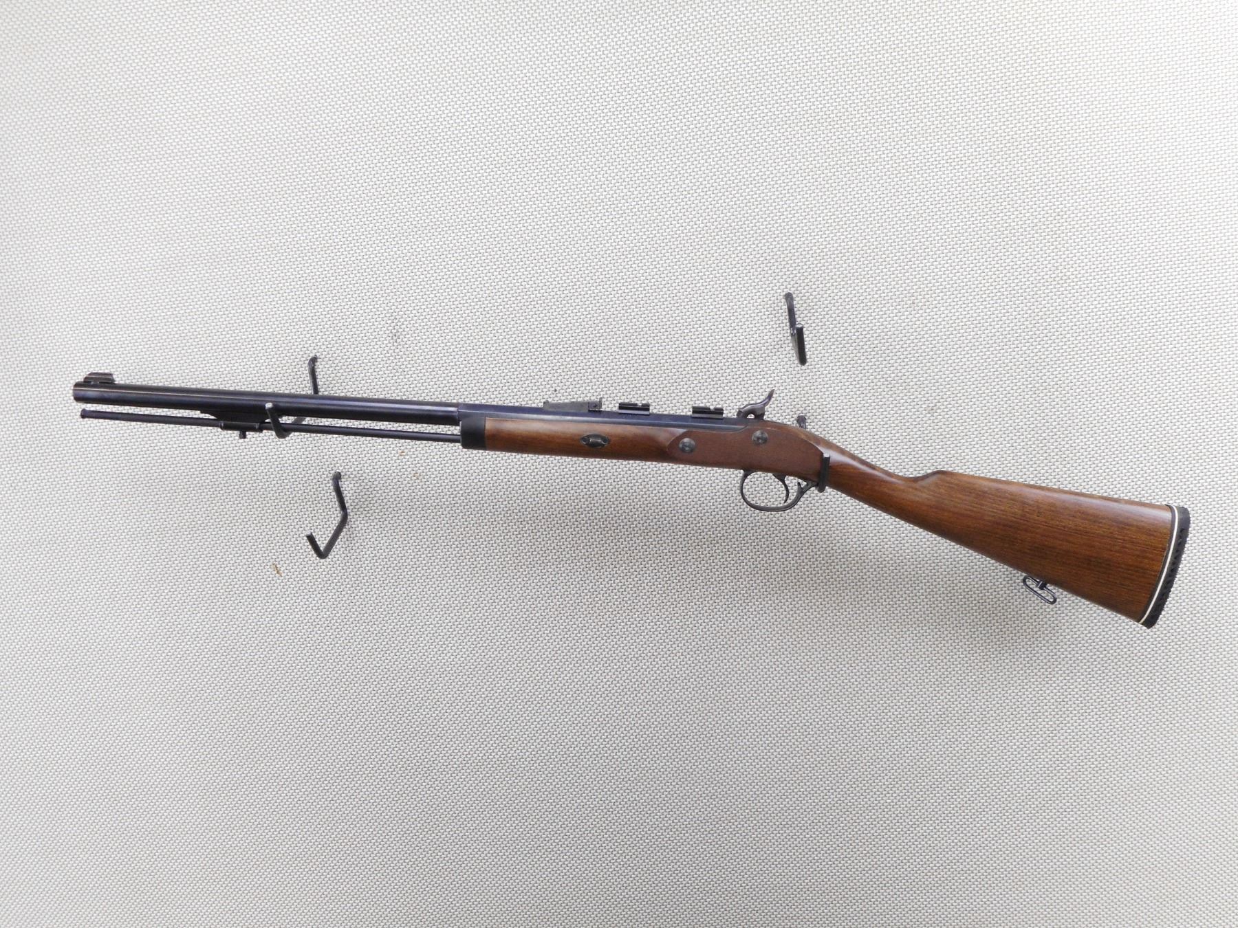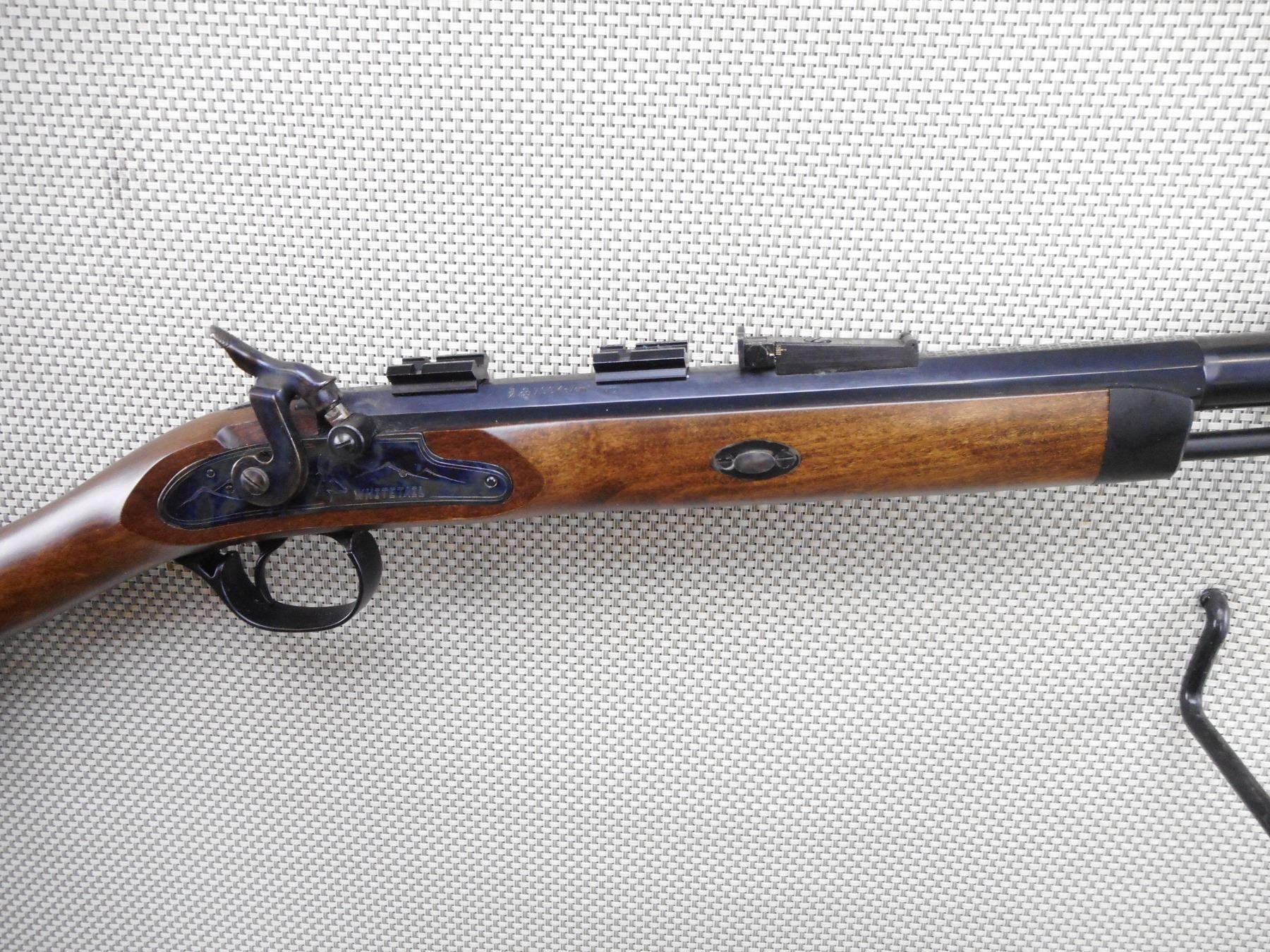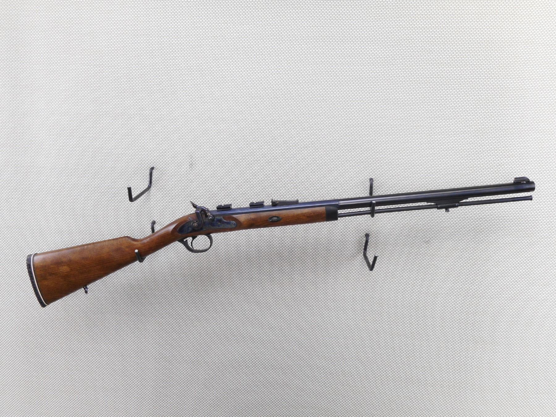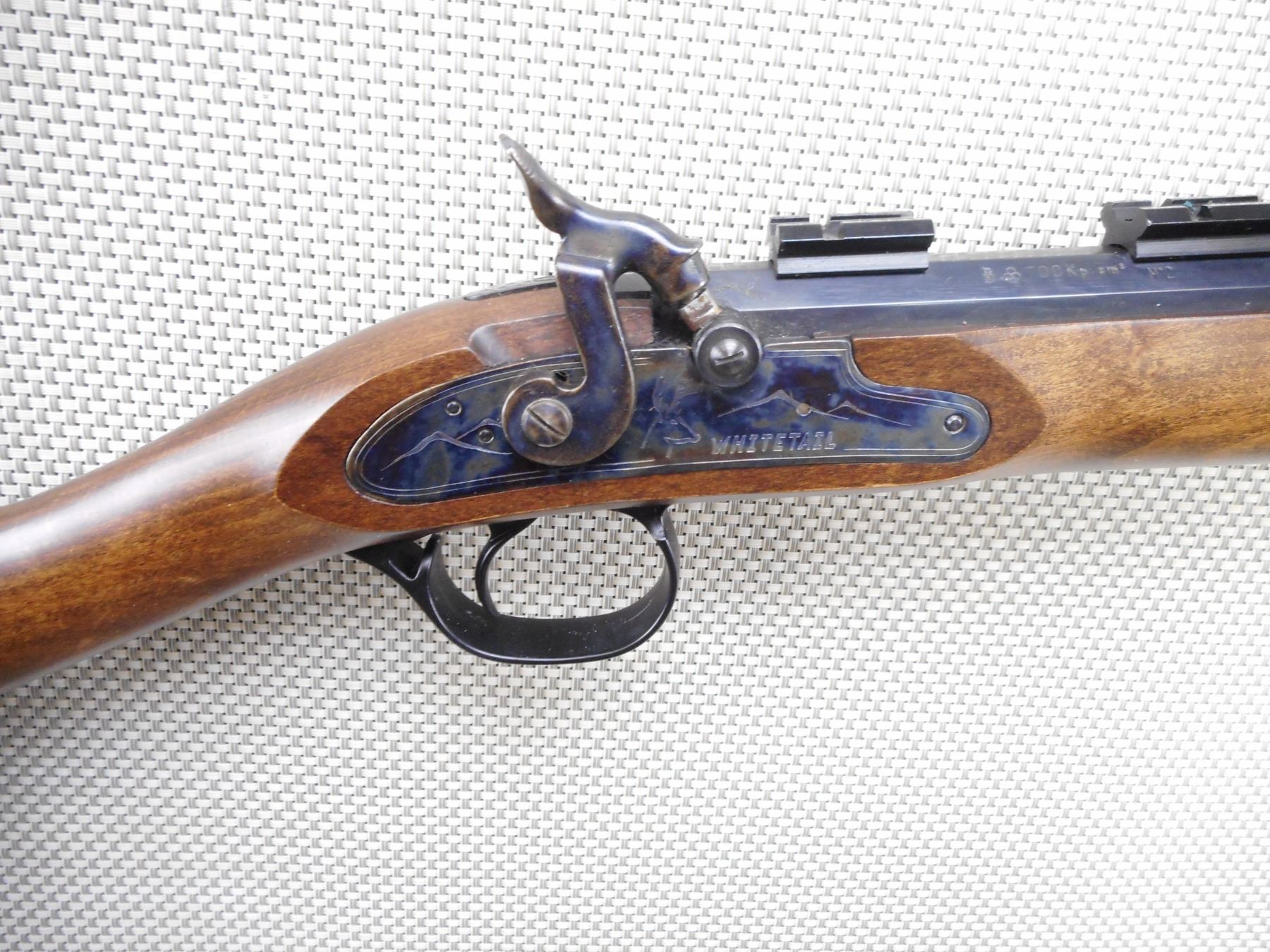 TRADITIONS , MODEL: WHITETAIL , CALIBER: 50 CAL PERC , BORE IS GOOD. BLADE FRONT AND ADJUSTABLE REAR SIGHT. DRILLED AND TAPPED WITH SCOPE MOUNTS. ONE PIECE HARDWOOD STOCK WITH VENTED RUBBER RECOIL PAD. SLING SWIVEL LOOPS. SHOWS SOME HANDLING MARKS. ACTION: SINGLE SHOT MUZZLE LOADER , BARREL LENGTH: 26" , SERIAL # 239641 , CONDITION: 8/10 , CLASS: CANADIAN NON RESTRICTED CLASS