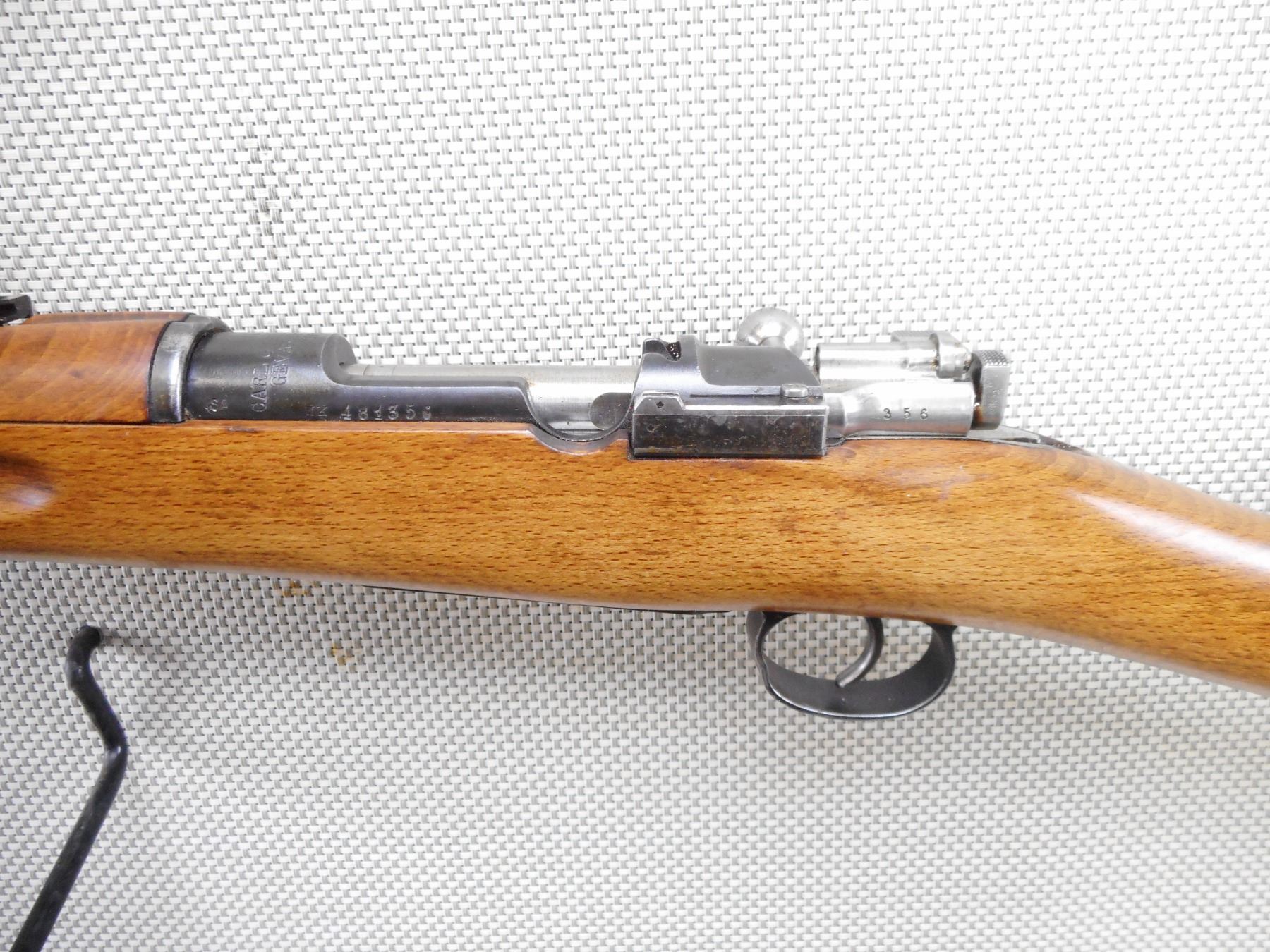 MAUSER , MODEL: 1896 SWEDISH SPORTER , CALIBER: 6.5 X 55 SWEDISH MAUSER , DATED 1920, BOLT AND RECEIVER MATCH BY SERIAL #. BORE IS EXCELLENT. BLADE FRONT AND ADJUSTABLE REAR SIGHT. SPORTERIZED TWO PIECE HARDWOOD STOCK. STEEL BUTT PLATE. SLING SWIVEL LOOPS. SHOWS SOME HANDLING MARKS. ACTION: BOLT ACTION RIFLE , BARREL LENGTH: 29" , SERIAL # 481356 , CONDITION: 5/10 , CLASS: CANADIAN NON RESTRICTED CLASS