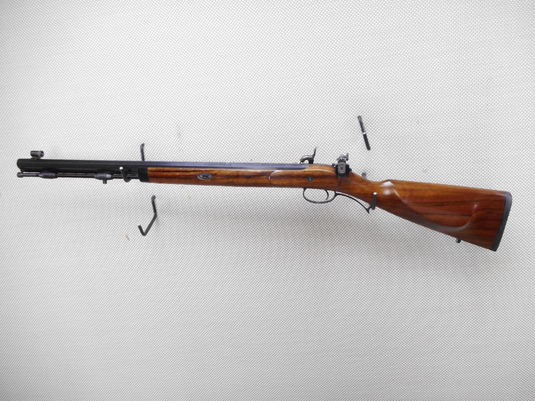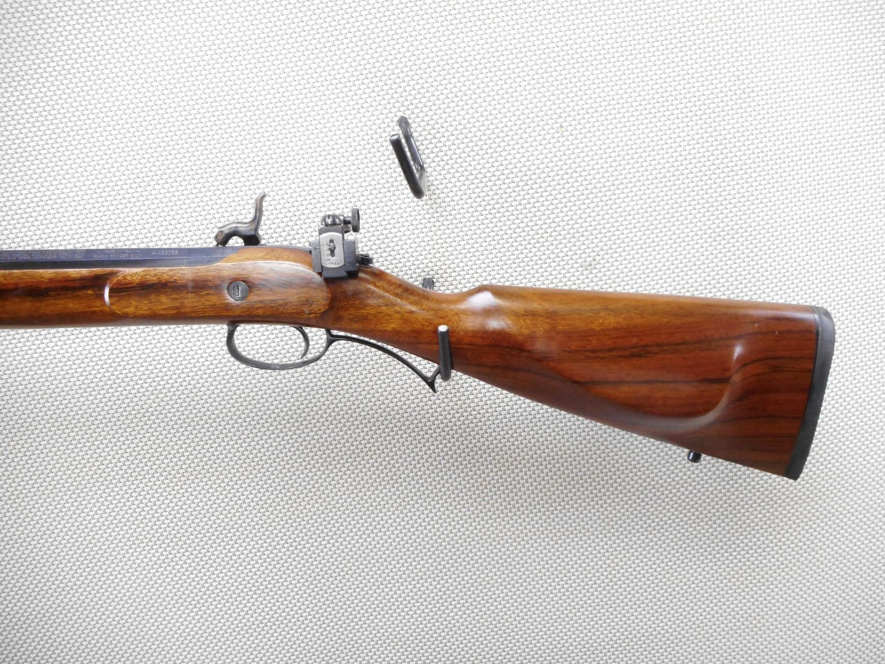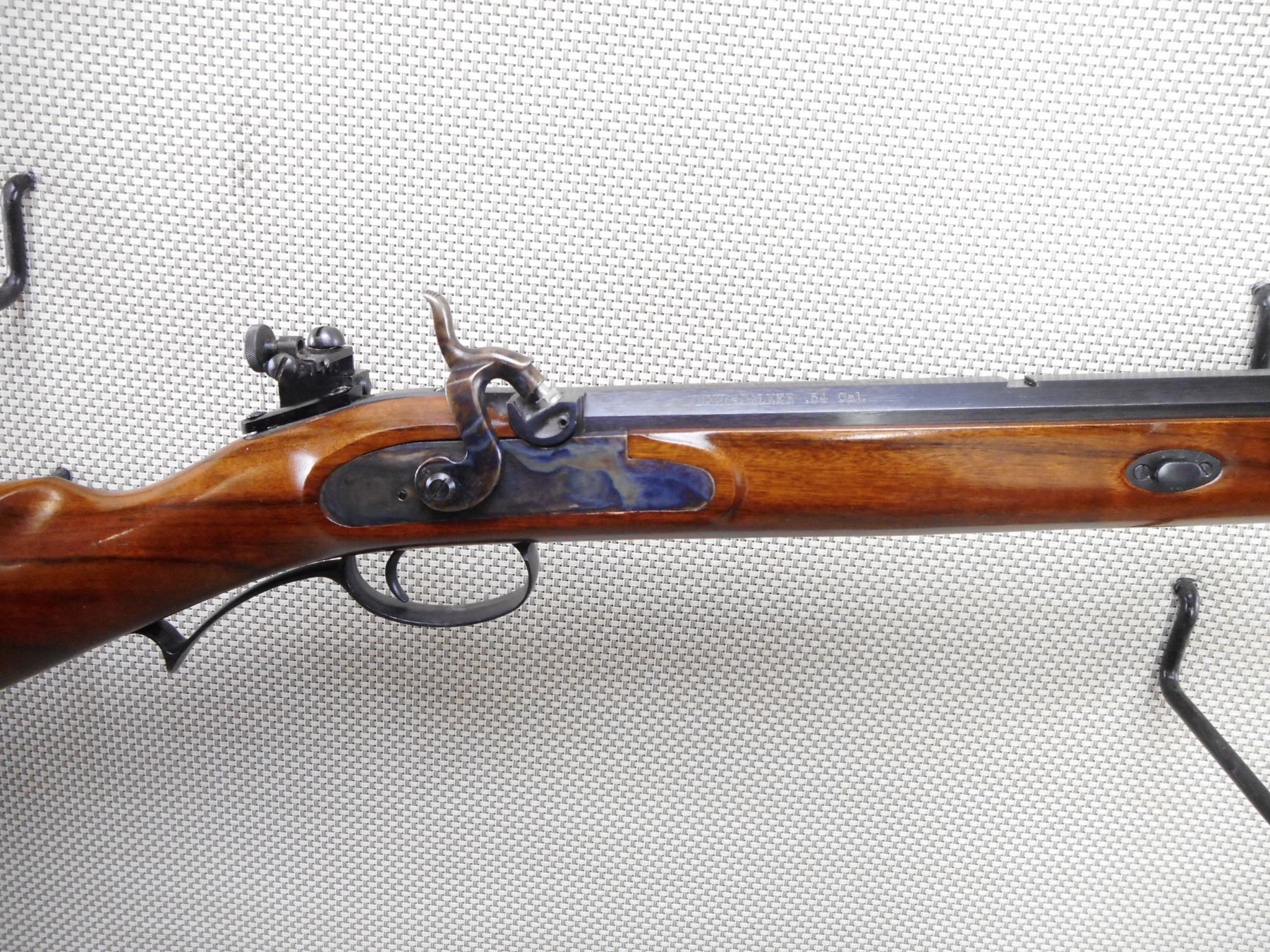 LYMAN , MODEL: DEER STALKER , CALIBER: 54 CAL PERC , BORE IS VERY GOOD. HOODED FRONT SIGHT, REAR PEEP SIGHT. FIBER GLASS RAM ROD. ONE PIECE HARDWOOD STOCK WITH SLING SWIVEL LOOPS. RUBBER RECOIL PAD. CASE HARDENED SIDE LOCK. SHOWS VERY LITTLE HANDING MARKS. ACTION: SINGLE SHOT MUZZLE LOADER , BARREL LENGTH: 25 1/2" , SERIAL # A489068 , CONDITION: 8/10 , CLASS: CANADIAN NON RESTRICTED CLASS