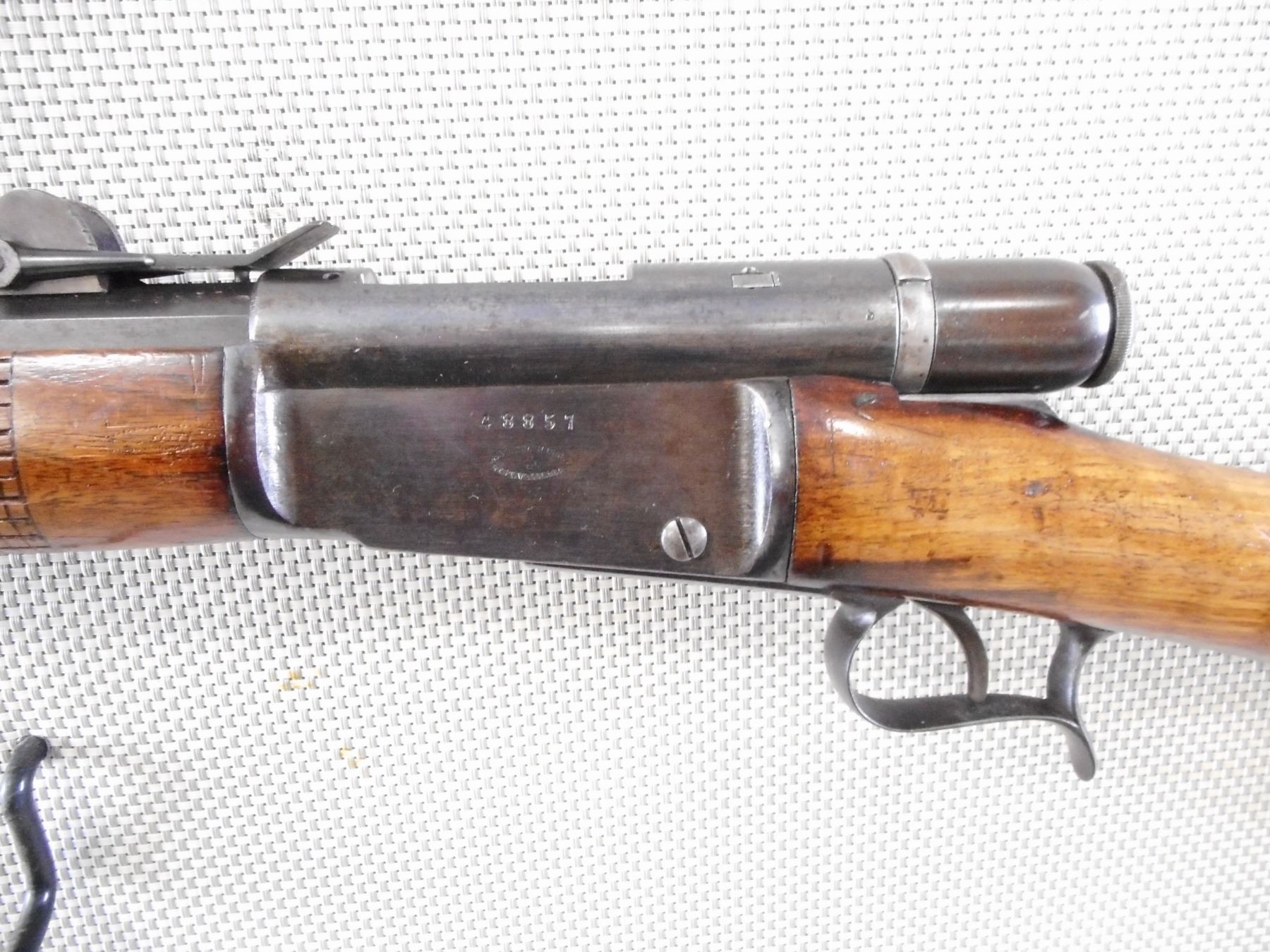 SWISS VETTERLI , MODEL: 69/71 , CALIBER: 41 SWISS CENTER FIRE , BORE IS VERY GOOD. BLADE FRONT AND ADJUSTABLE REAR SIGHT. 3 PIECE HARDWOOD STOCK WITH STEEL BUTT PLATE. SLING SWIVEL LOOPS. RETAINS FULL MILITARY CONFIGURATION. MISSING THE RAM ROD. SHOWS SOME HANDLING MARKS. ACTION: BOLT ACTION RIFLE , BARREL LENGTH: 32" , SERIAL # 48857 , CONDITION: 7/10 , CLASS: CANADIAN NON RESTRICTED CLASS