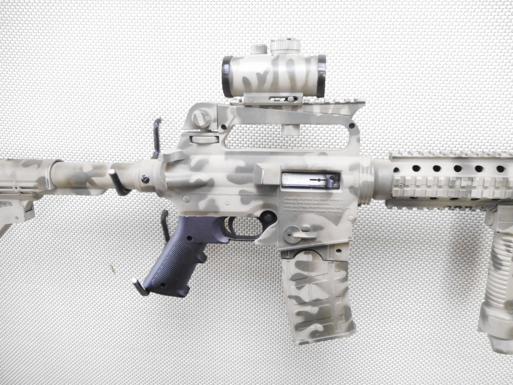 MOSSBERG , MODEL: 715T , CALIBER: 22 LR , COMES WITH MAGAZINE. BORE IS EXCELLENT. RAISED FRONT SIGHT AND CARRY HANDLE MOUNTED REAR RED DOT SCOPE. QUAD RAIL ACCESSORY SYSTEM. FOREND PISTOL GRIP. COLLAPSABLE BUTT ON AN ATI STOCK. SLING SWIVEL LOOPS. SHOWS VERY LITTLE HANDLING MARKS. ACTION: SEMI AUTOMATIC RIFLE , BARREL LENGTH: 18" , SERIAL # ELC3353196 , CONDITION: 6/10 , CLASS: CANADIAN NON RESTRICTED CLASS