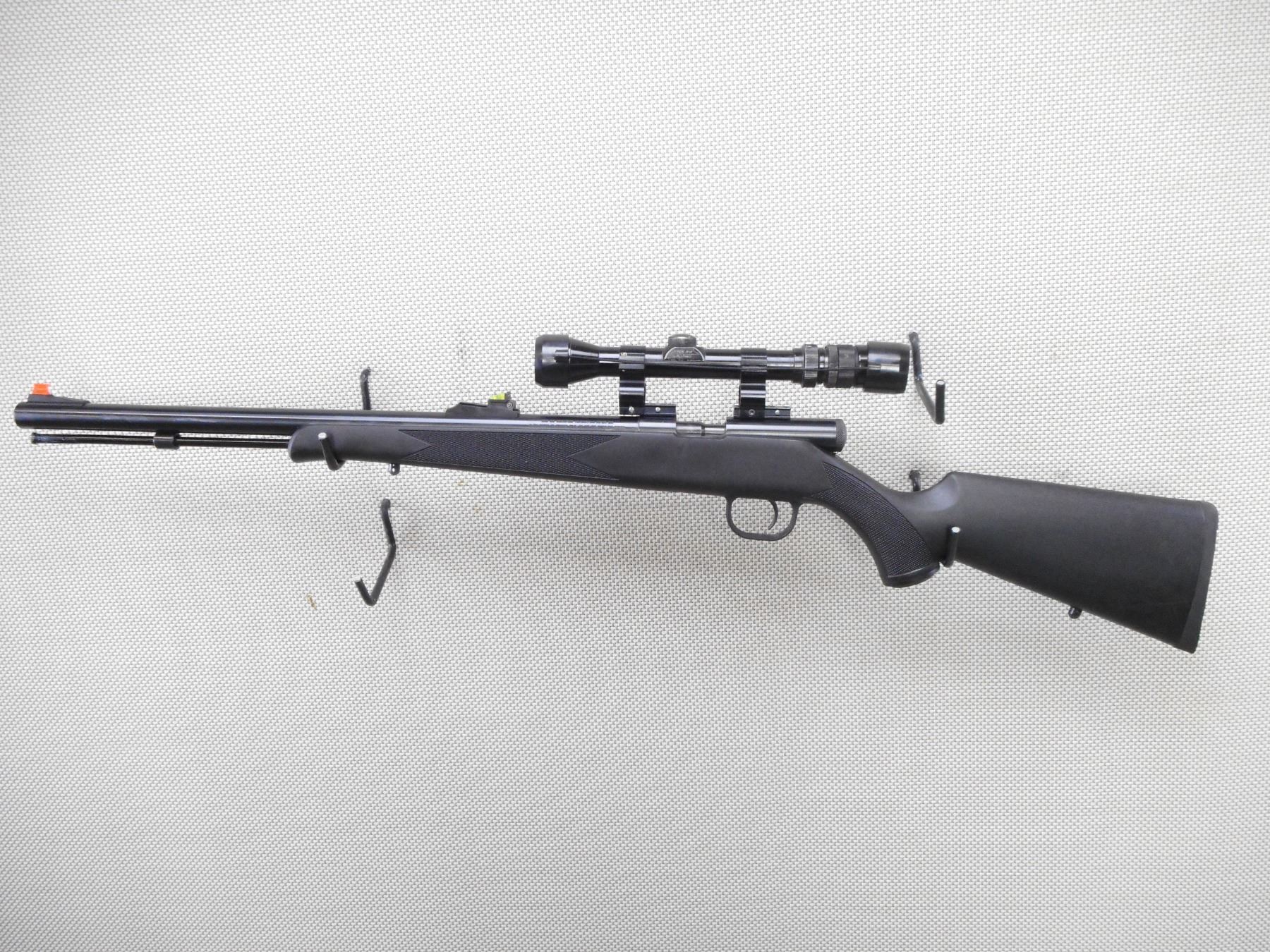 TRADITIONS , MODEL: TACKER 209 INLINE , CALIBER: 50 CAL PERC , BORE IS EXCELLENT. FIBER OPTIC FRONT AND MID SIGHTS. BUSHNELL BANNER 3 - 9 SCOPE. CHECKERED BLACK SYNTHETIC STOCK WITH RUBBER RECOIL PAD. SHOWS VERY LITTLE HANDLING MARKS.ACTION: SINGLE SHOT MUZZLE LOADER , BARREL LENGTH: 21 1/2" , SERIAL # 141305167902 , CONDITION: 7/10 , CLASS: CANADIAN NON RESTRICTED CLASS