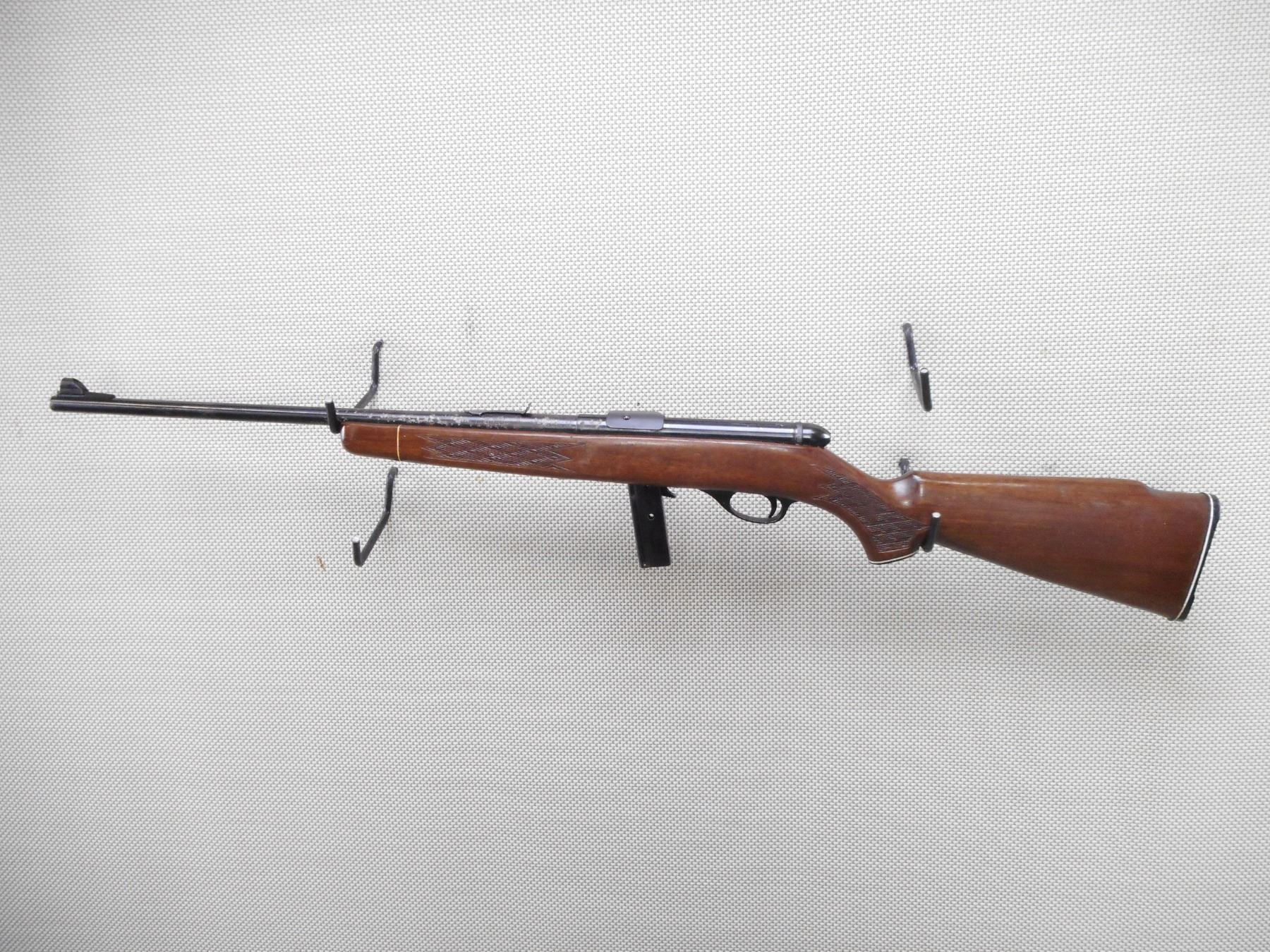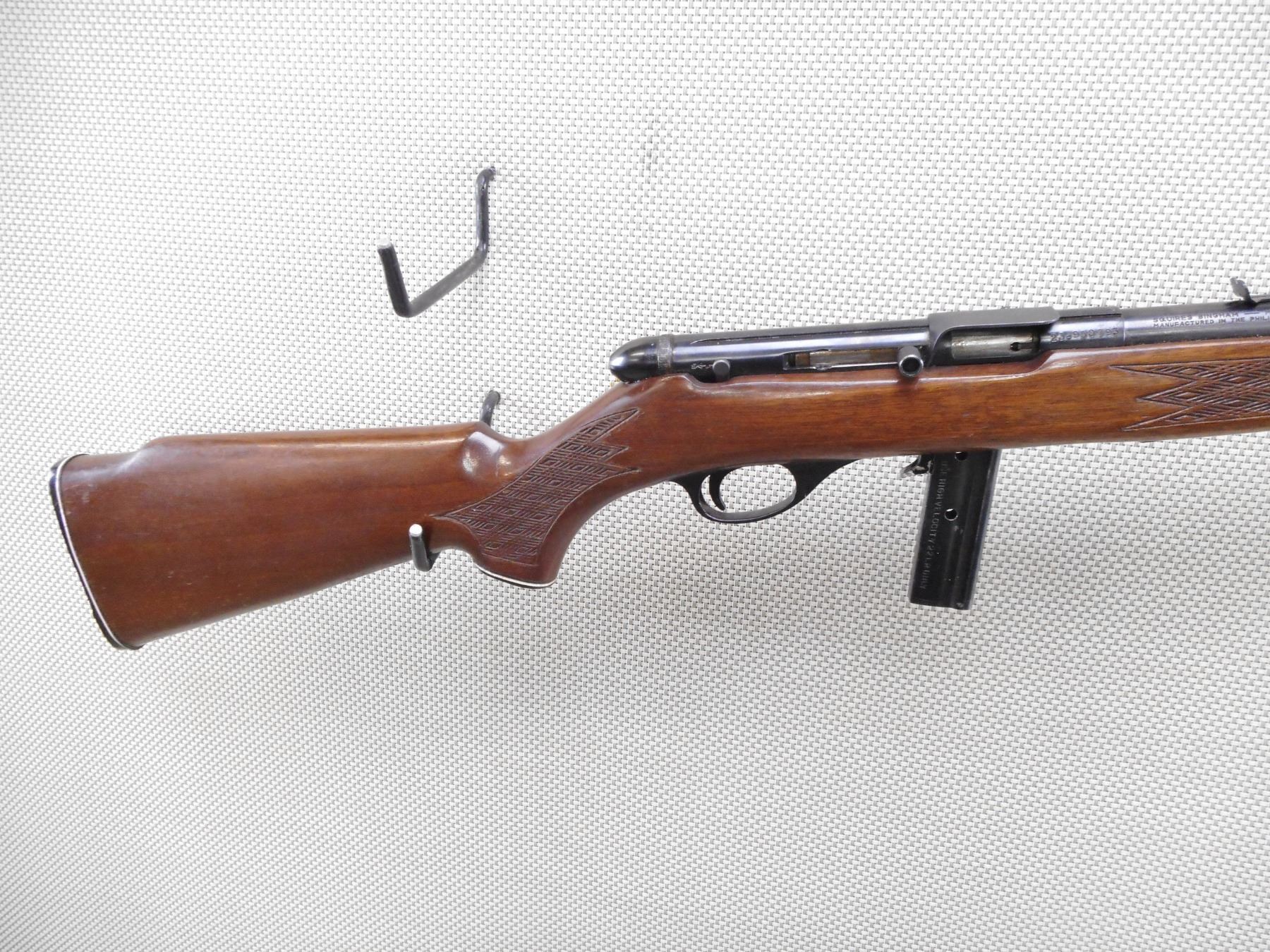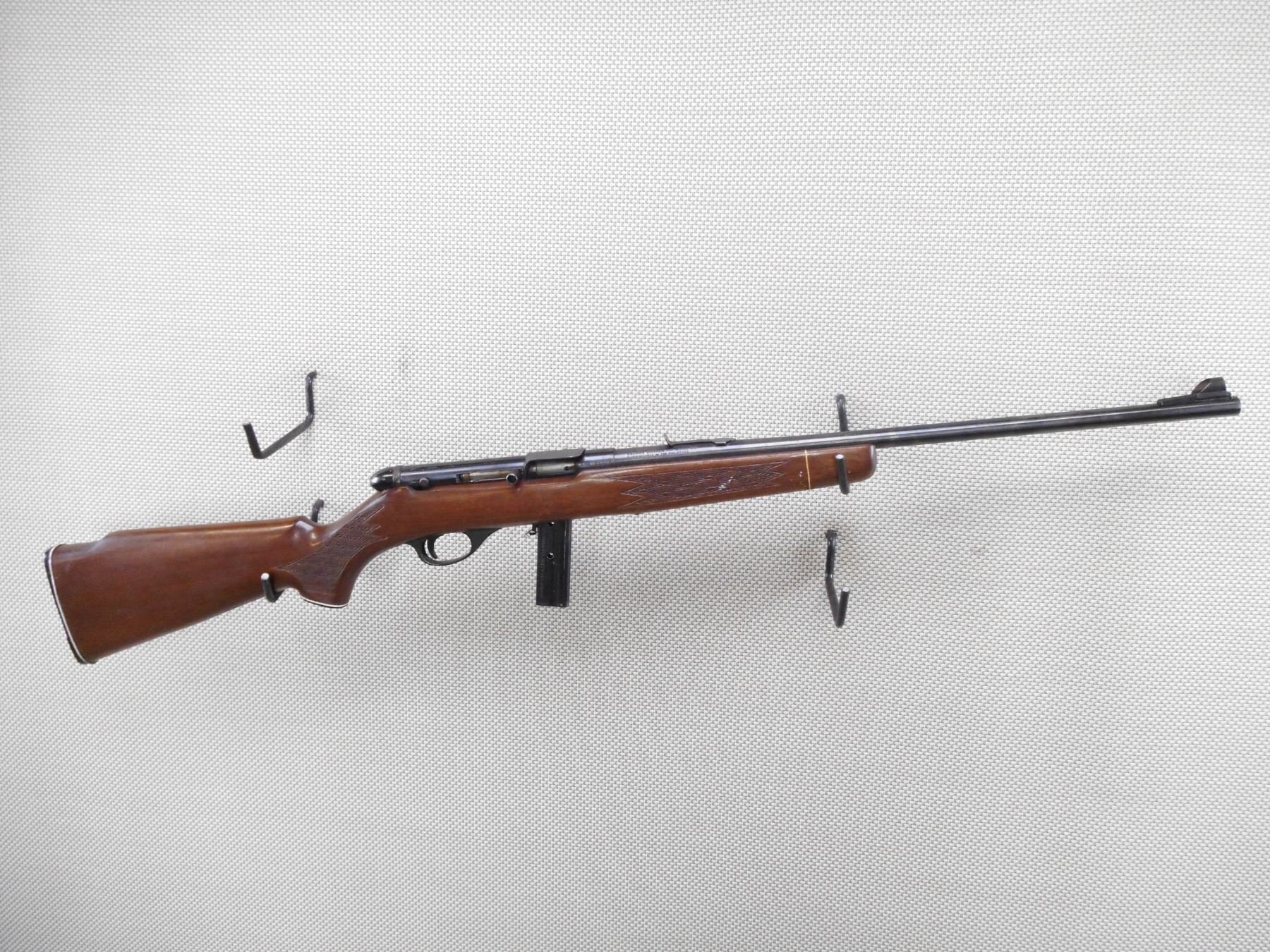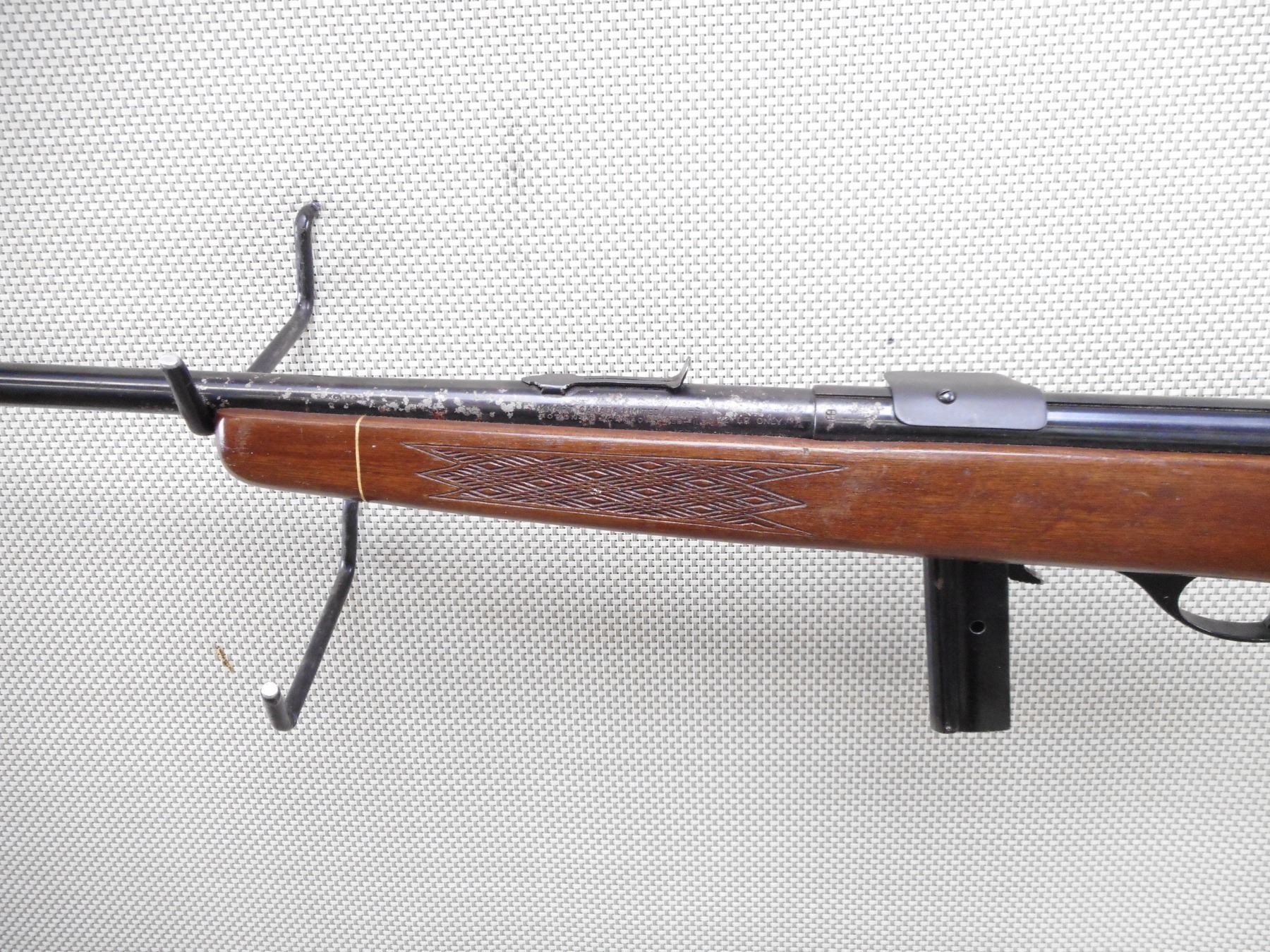 SQUIRES BINGHAM , MODEL: 20 , CALIBER: 22 LR , COMES WITH MAGAZINE. BORE IS VERY GOOD. HOODED FRONT SIGHT AND ADJUSTABLE REAR SIGHT MISSING THE ELEVATOR. CHECKERED ONE PIECE HARDWOOD STOCK. MAJOR DISCOLOURATION ON THE BARREL. SHOWS SOME HANDLING MARKS. ACTION: SEMI AUTOMATIC RIFLE , BARREL LENGTH: 20 1/2" , SERIAL # 23950793 , CONDITION: 6/10 , CLASS: CANADIAN NON RESTRICTED CLASS