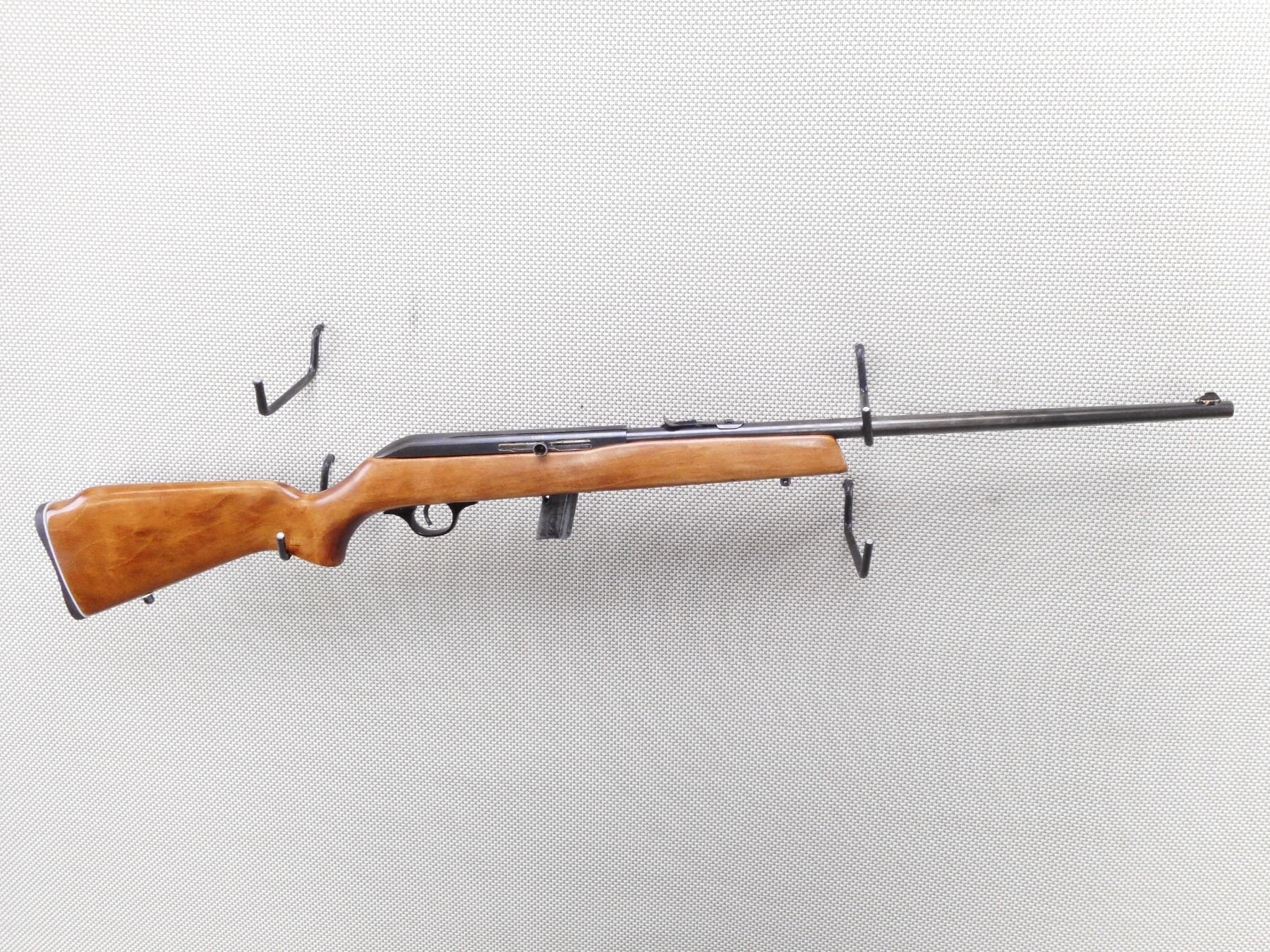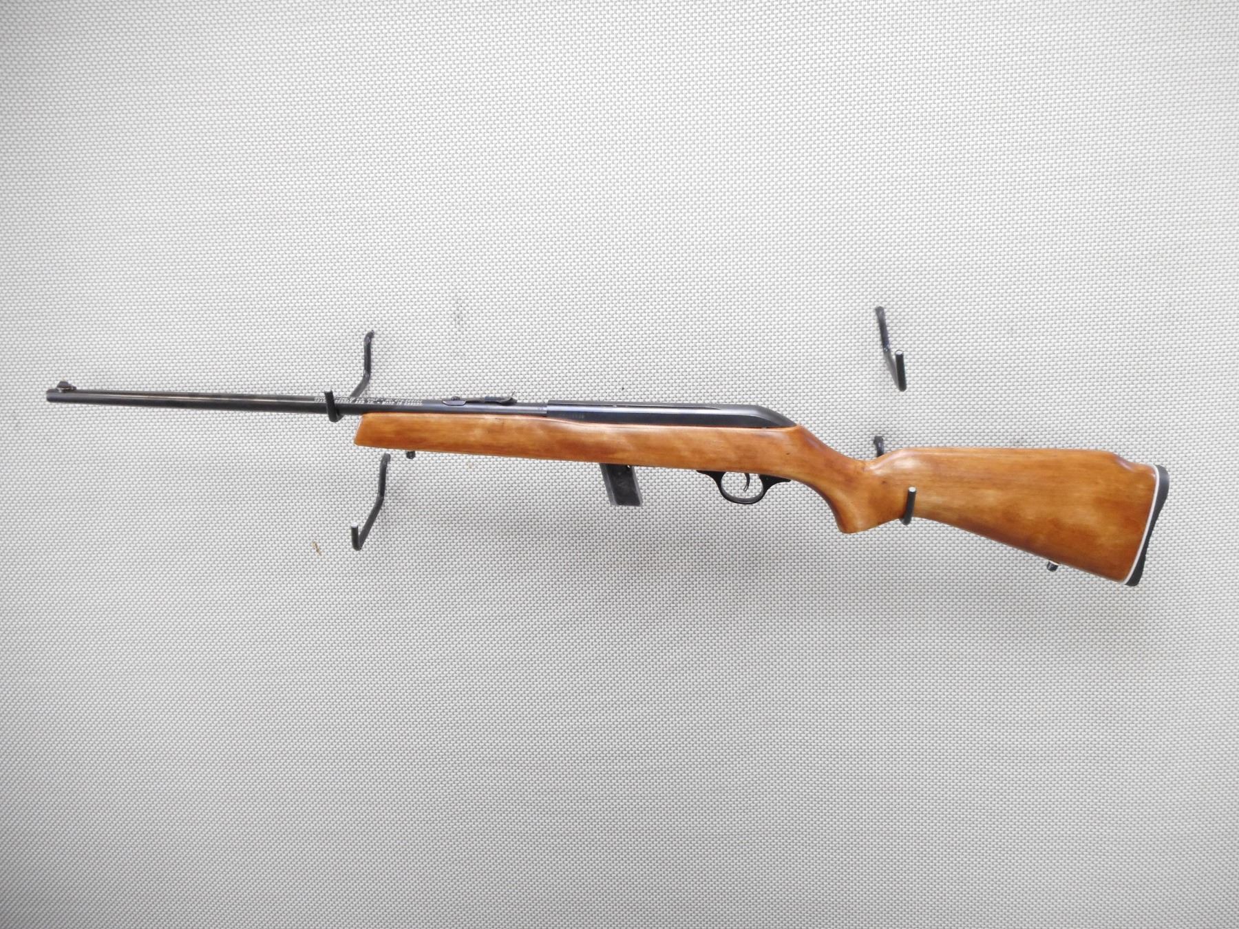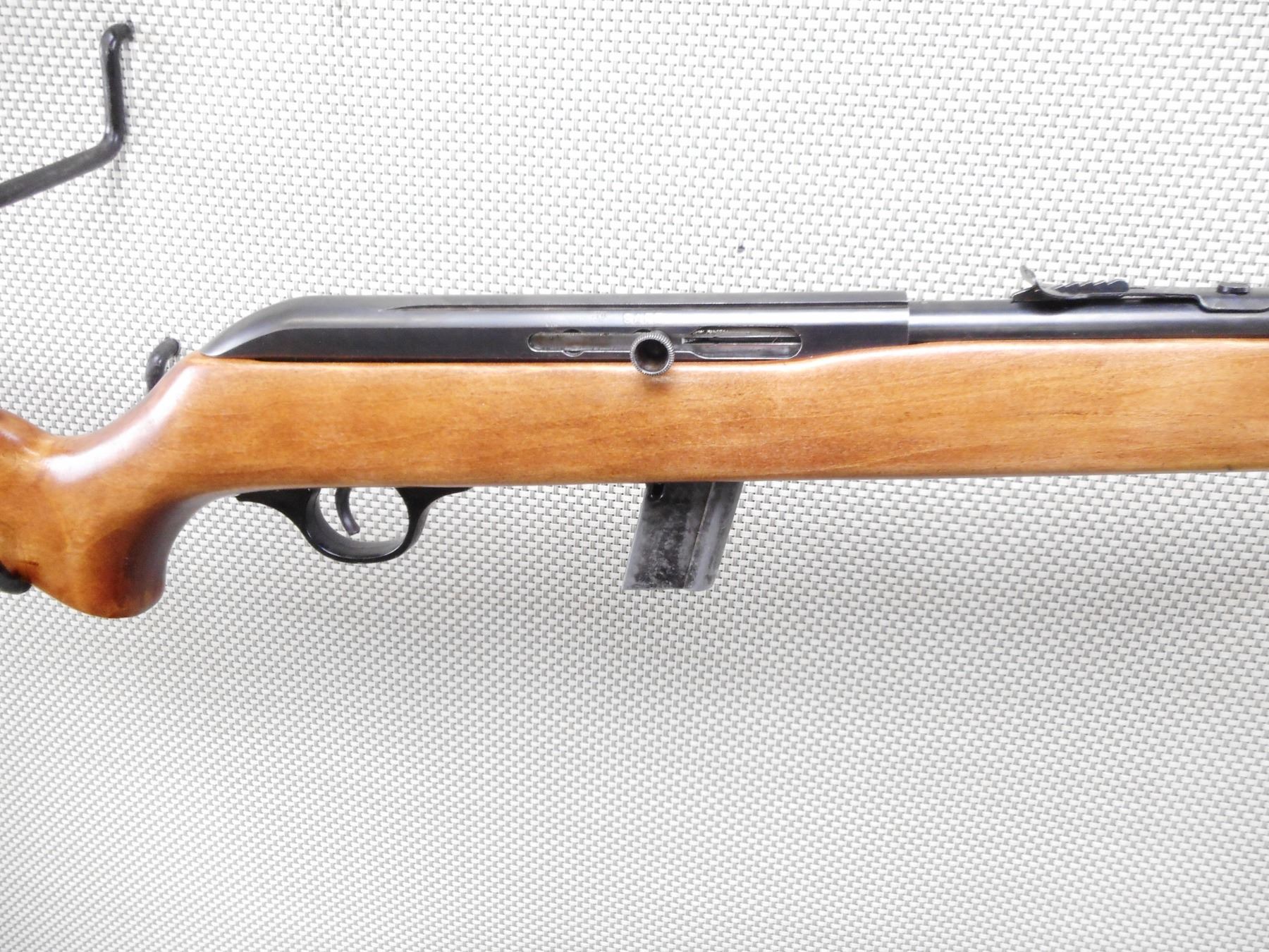 SEARS ROEBUCK , MODEL: 6C , CALIBER: 22 LR , COMES WITH MAGAZINE. BORE IS VERY GOOD. BLADE FRONT AND ADJUSTABLE REAR SIGHT. ONE PIECE HARDWOOD STOCK WITH PLASTIC BUTT PLATE. SLING SWIVEL STUDS. SHOWS SOME HANLDING MARKS. ACTION: SEMI AUTOMATIC RIFLE , BARREL LENGTH: 20" , SERIAL # TT029539 , CONDITION: 8/10 , CLASS: CANADIAN NON RESTRICTED CLASS