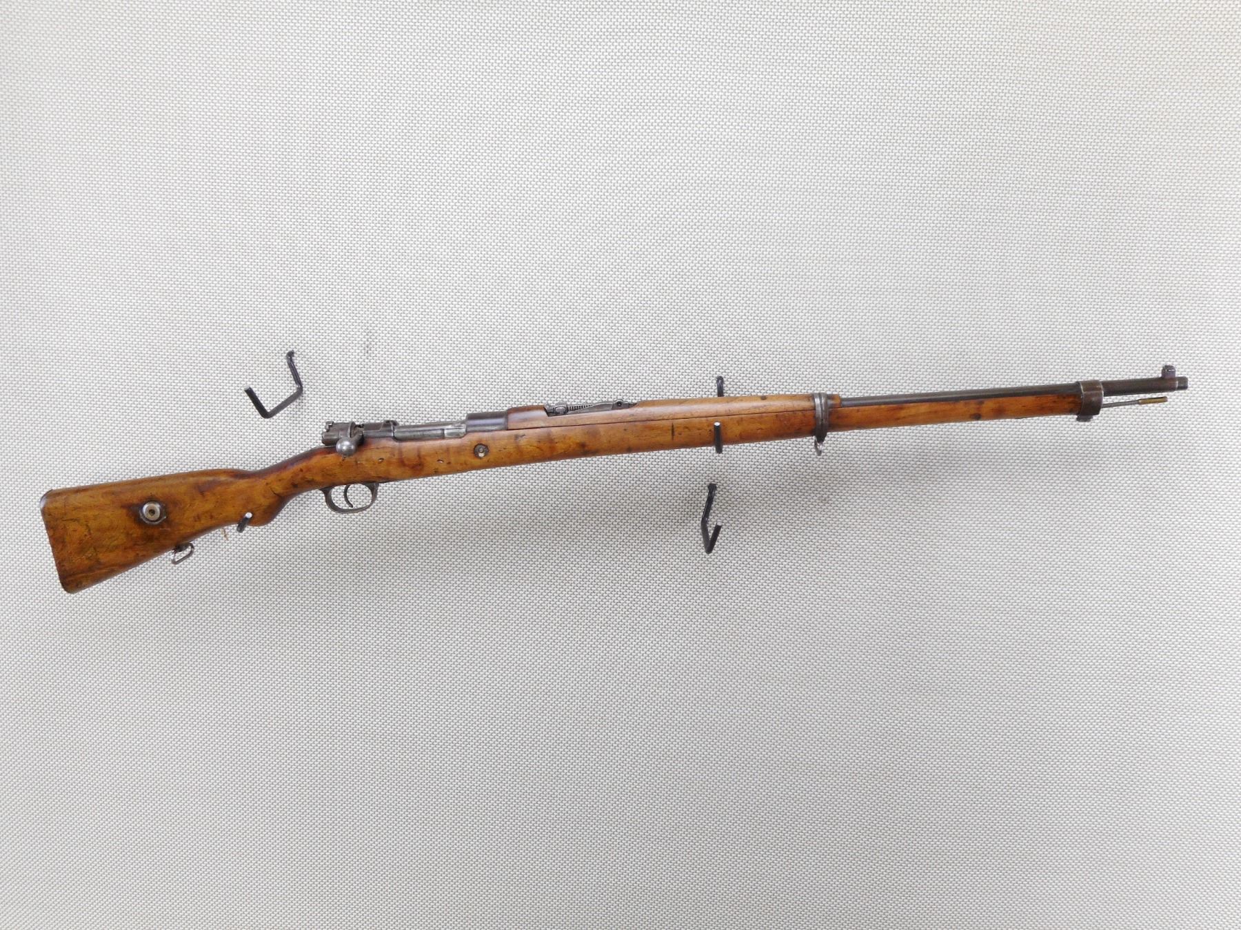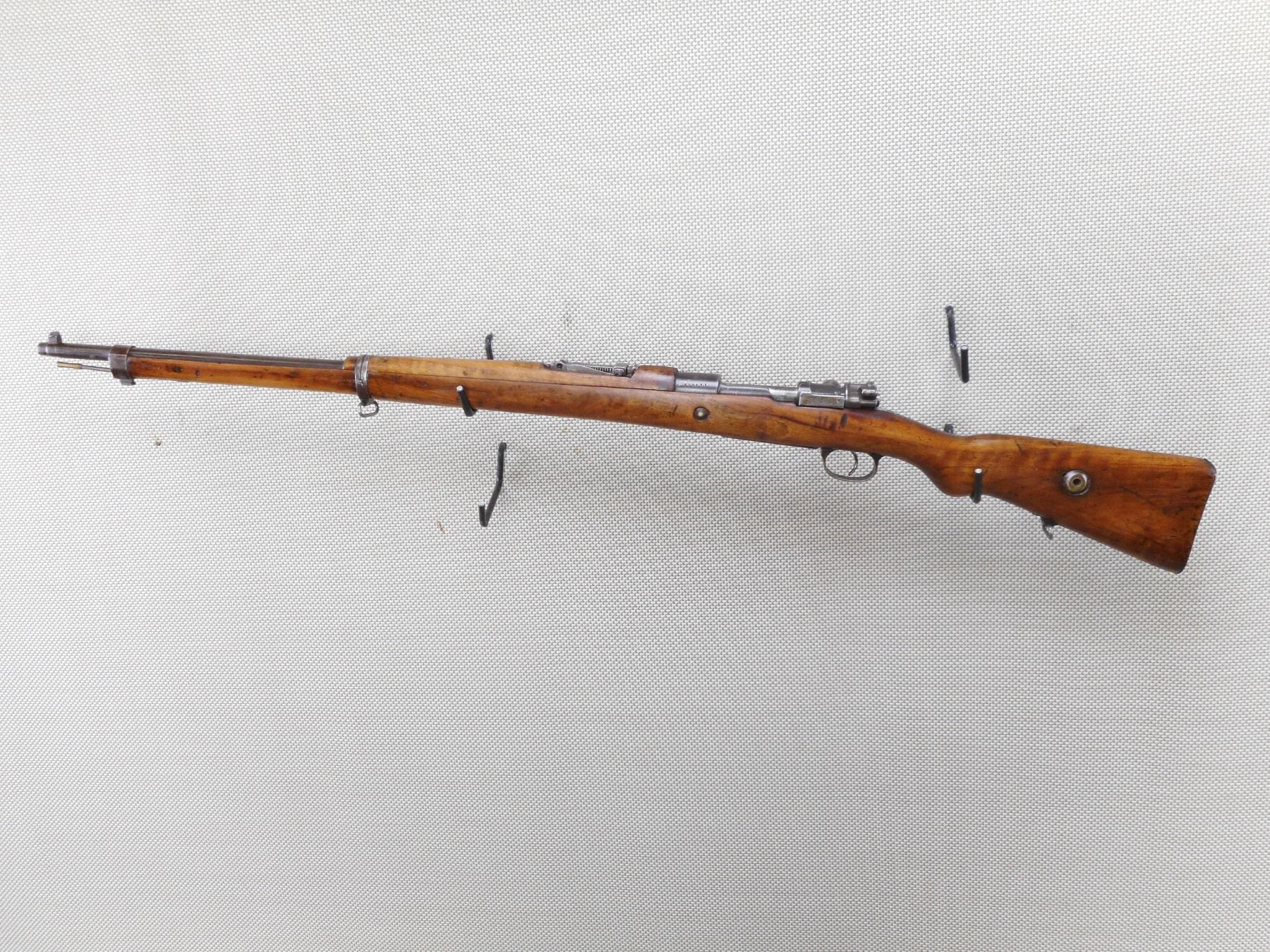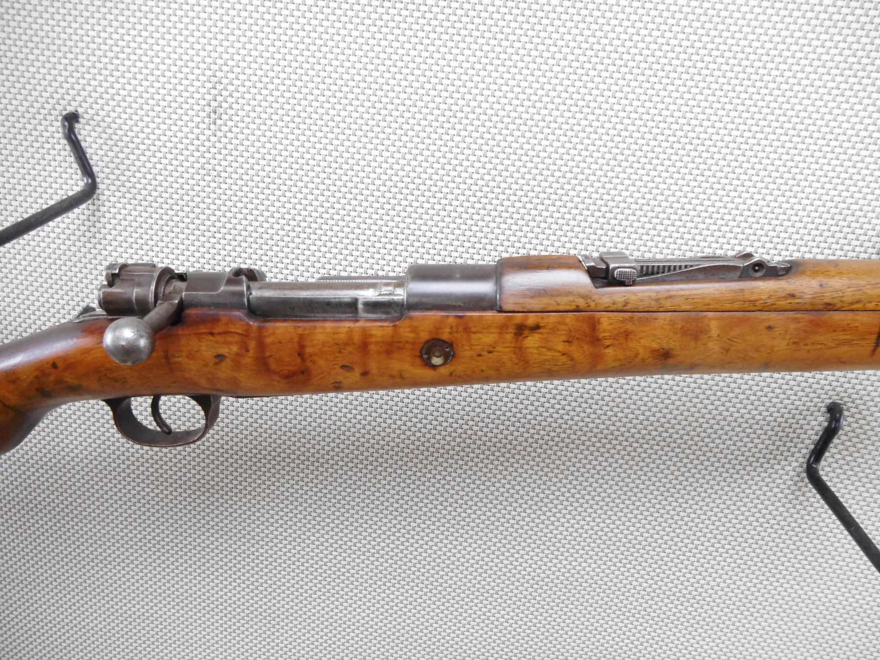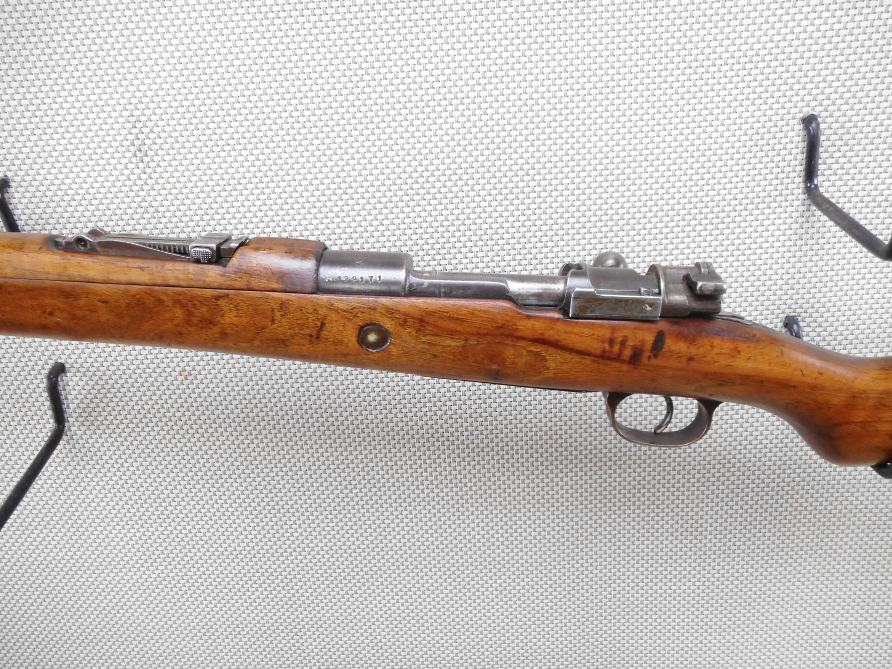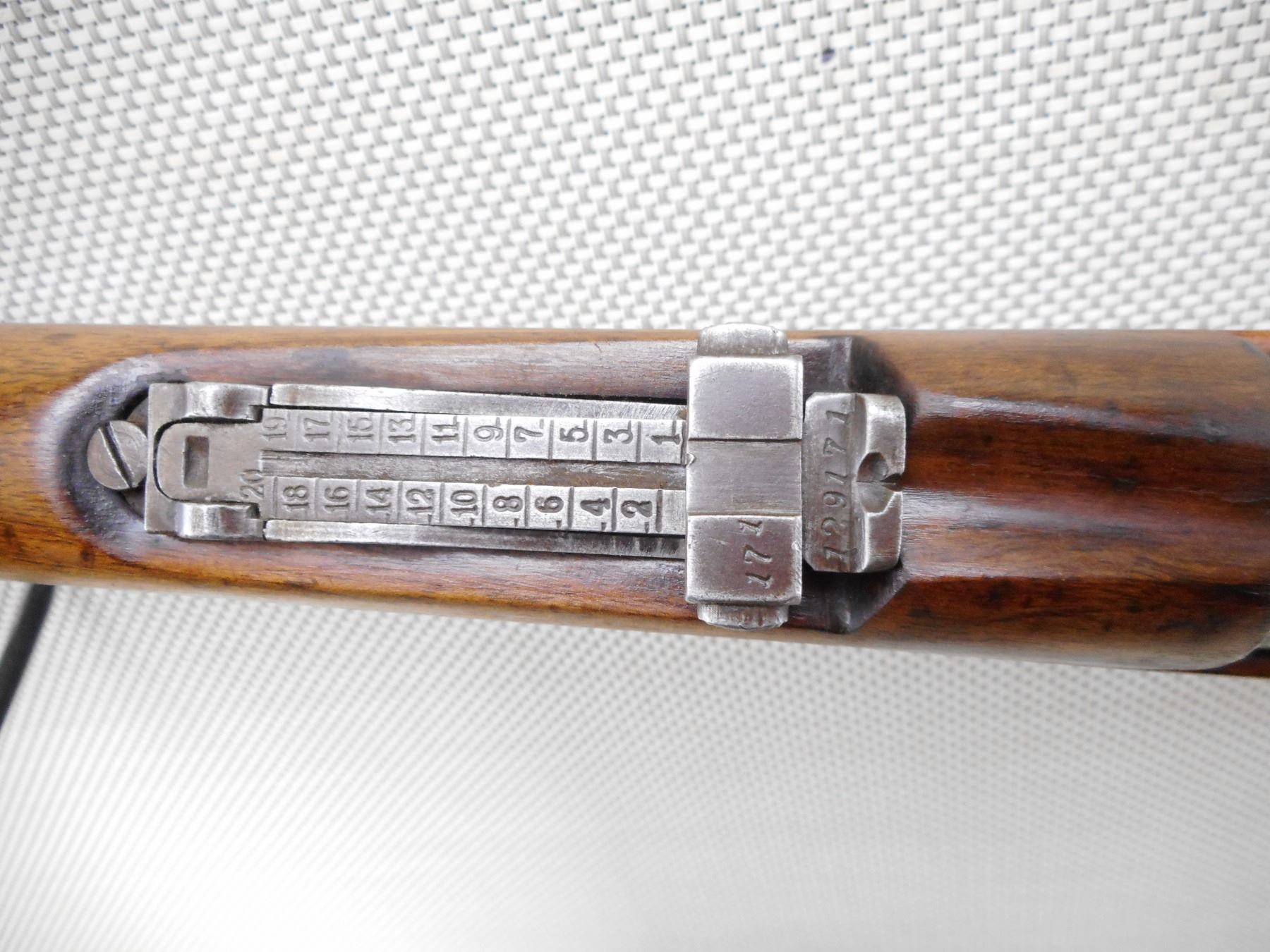 MAUSER , MODEL: 1903 TURKISH RIFLE , CALIBER: 8MM MAUSER , BORE IS FAIR. VISIBLE #'S DON'T MATCH. WORN WITH LIGHT PITTING. BARLEY CORN FRONT SIGHT. ADJUSTABLE U NOTCH REAR SIGHT. CLEANING ROD. FULL LENGTH MILITARY STOCK. METAL FINISH TURNING SILVER GREY. STOCK HAS BEEN REFINISHED. STEEL BUTT PLATE. SHOWS NUMEROUS HANDLING MARKS AND WEAR. ACTION: BOLT ACTION RIFLE , BARREL LENGTH: 29" , SERIAL # 129171 , CONDITION: 6/10 , CLASS: CANADIAN NON RESTRICTED CLASS