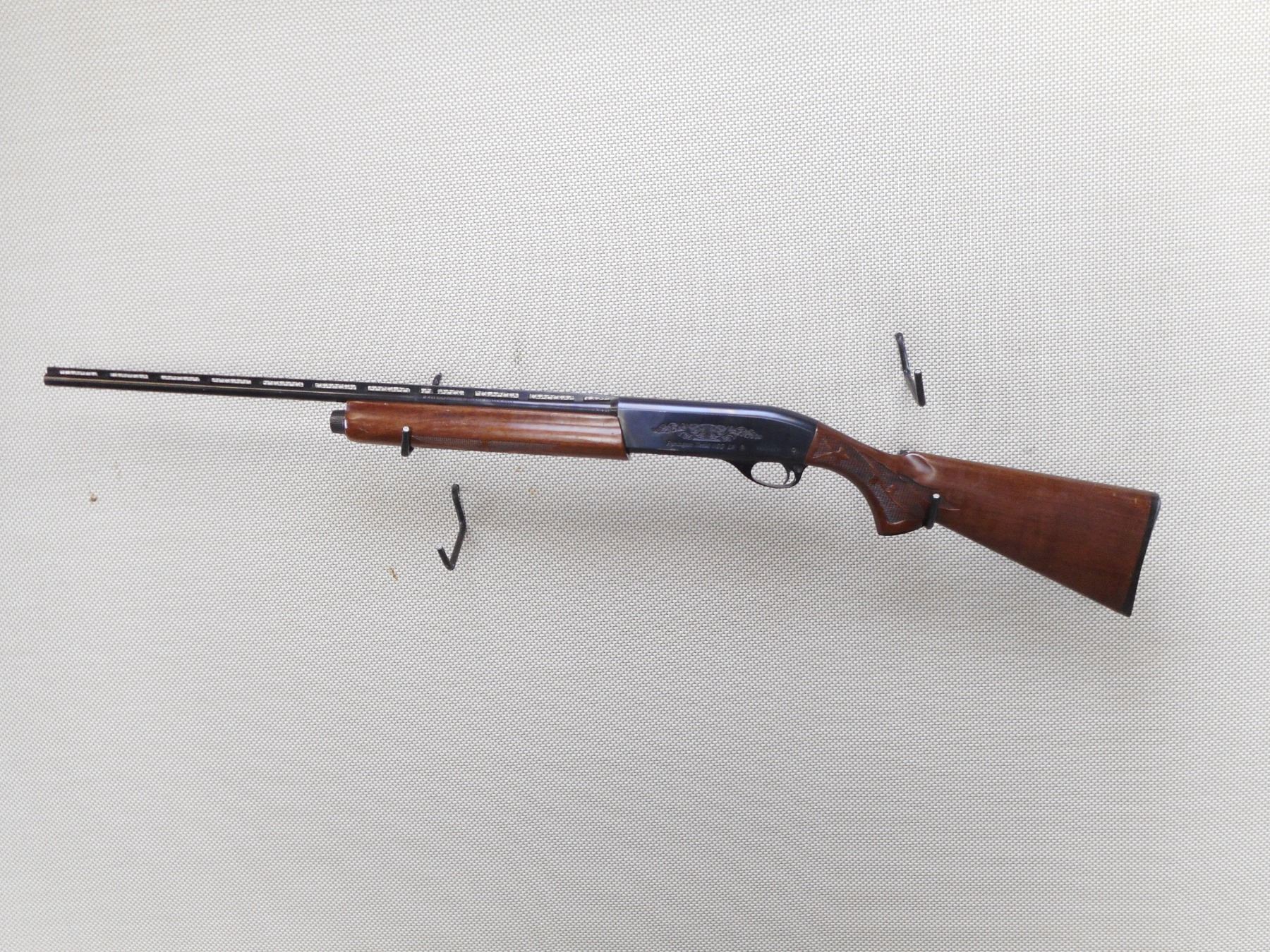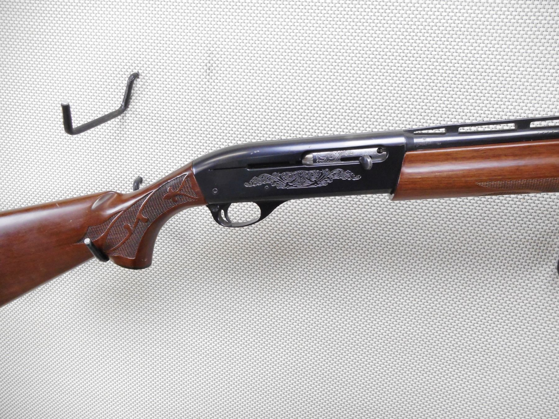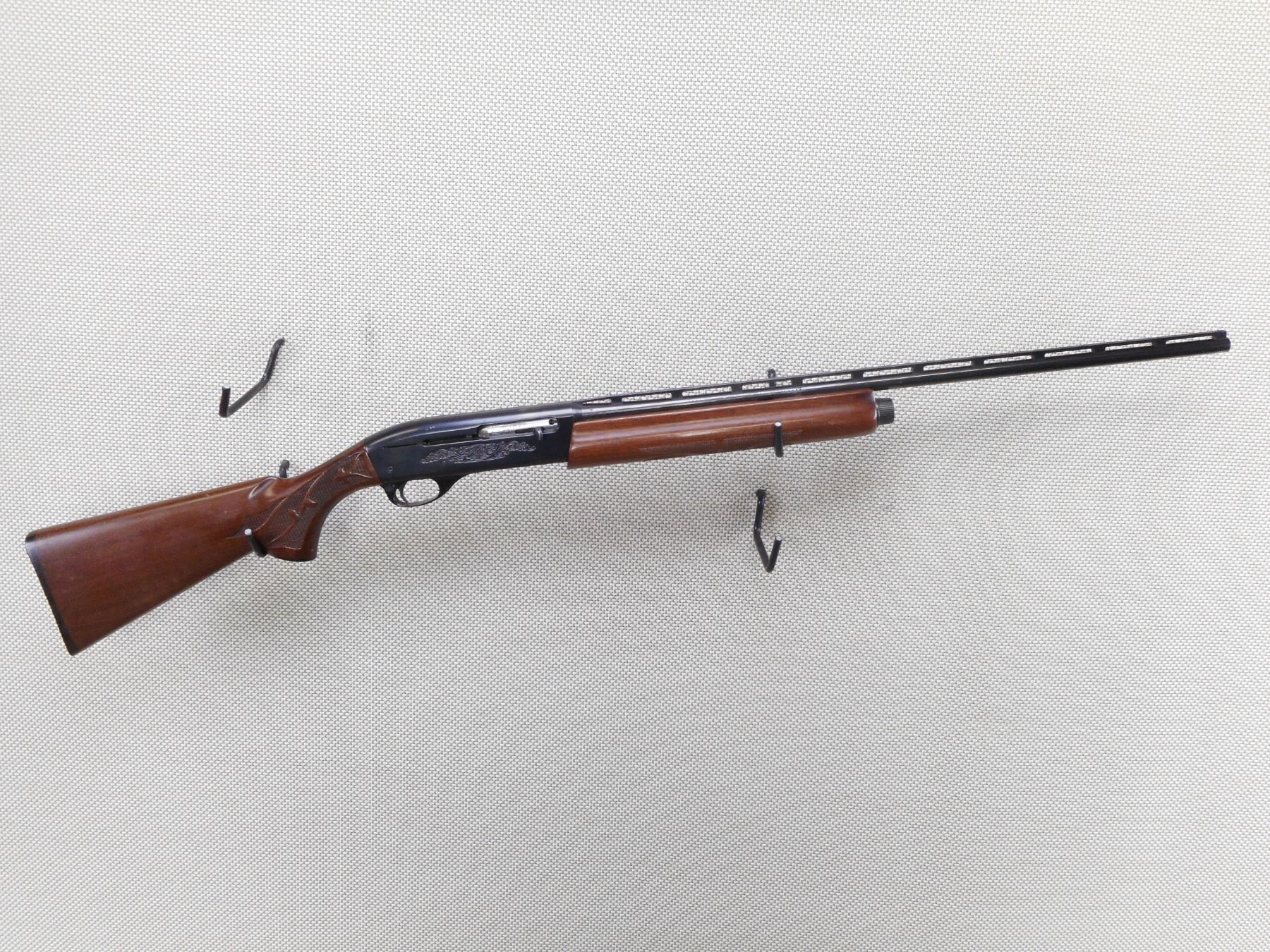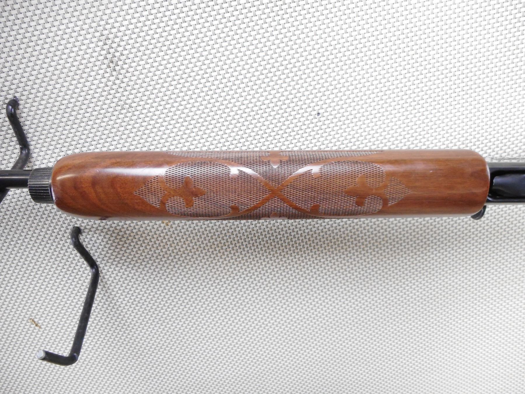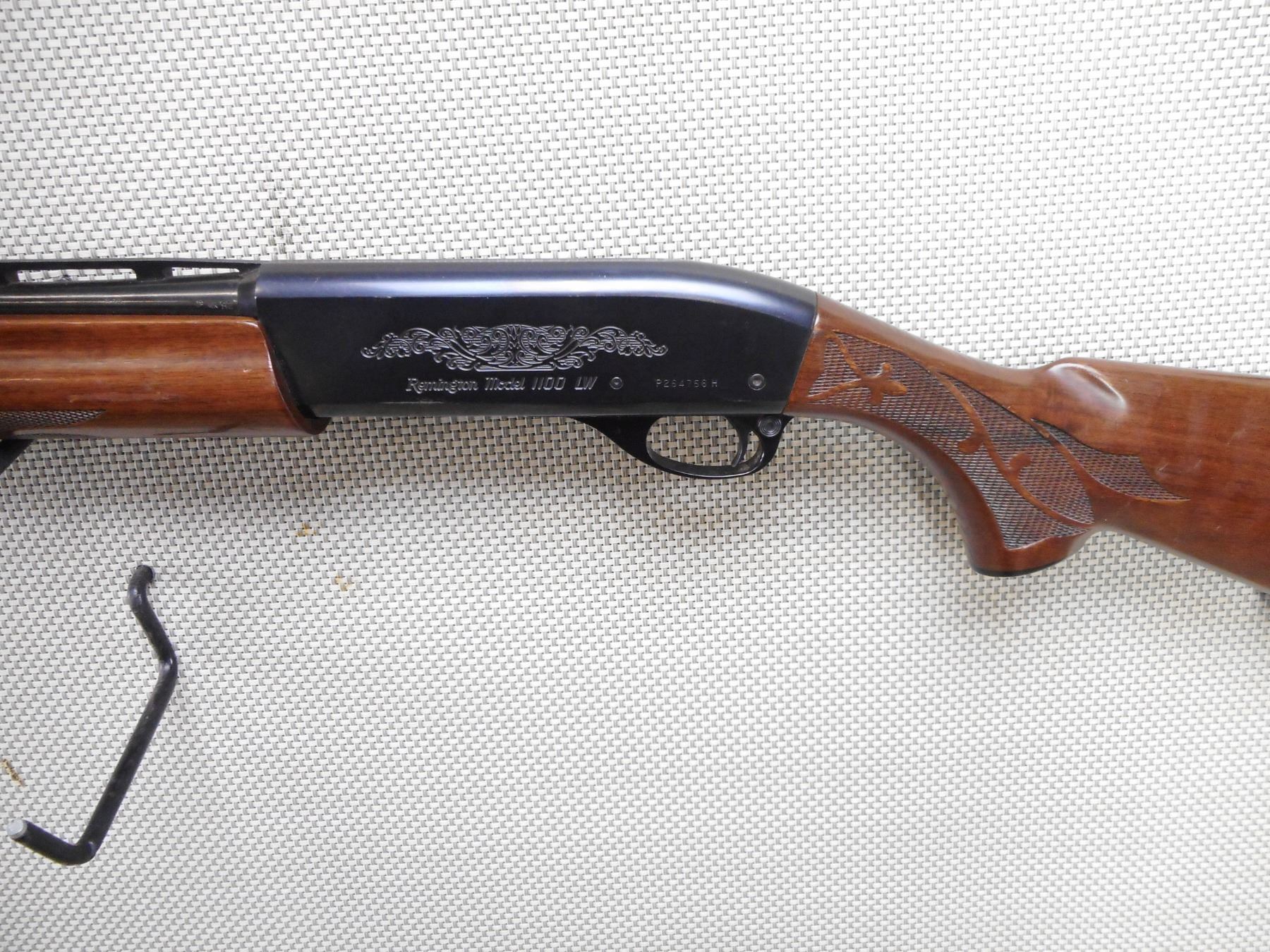 REMINGTON , MODEL: 1100 , CALIBER: 410GA X 3" , BORE IS EXCELLENT. FIXED MODIFIED CHOKE. BEAD FRONT SIGHT. SERRATED RAISED RIB ON BARREL. BLUED FINISH ON METAL PARTS. ENGRAVED RECEIVER. CHECKERED WOOD FOREND. CHECKERED BUTT STOCK WITH CHECKERED BLACK POLYMER BUTT PLATE. SHOWS SOME HANDLING MARKS, DINGS, AND RUB MARKS ON THE STOCK. ACTION: SEMI AUTOMATIC SHOTGUN , BARREL LENGTH: 25" , SERIAL # P264756H , CONDITION: 7/10 , CLASS: CANADIAN NON RESTRICTED CLASS