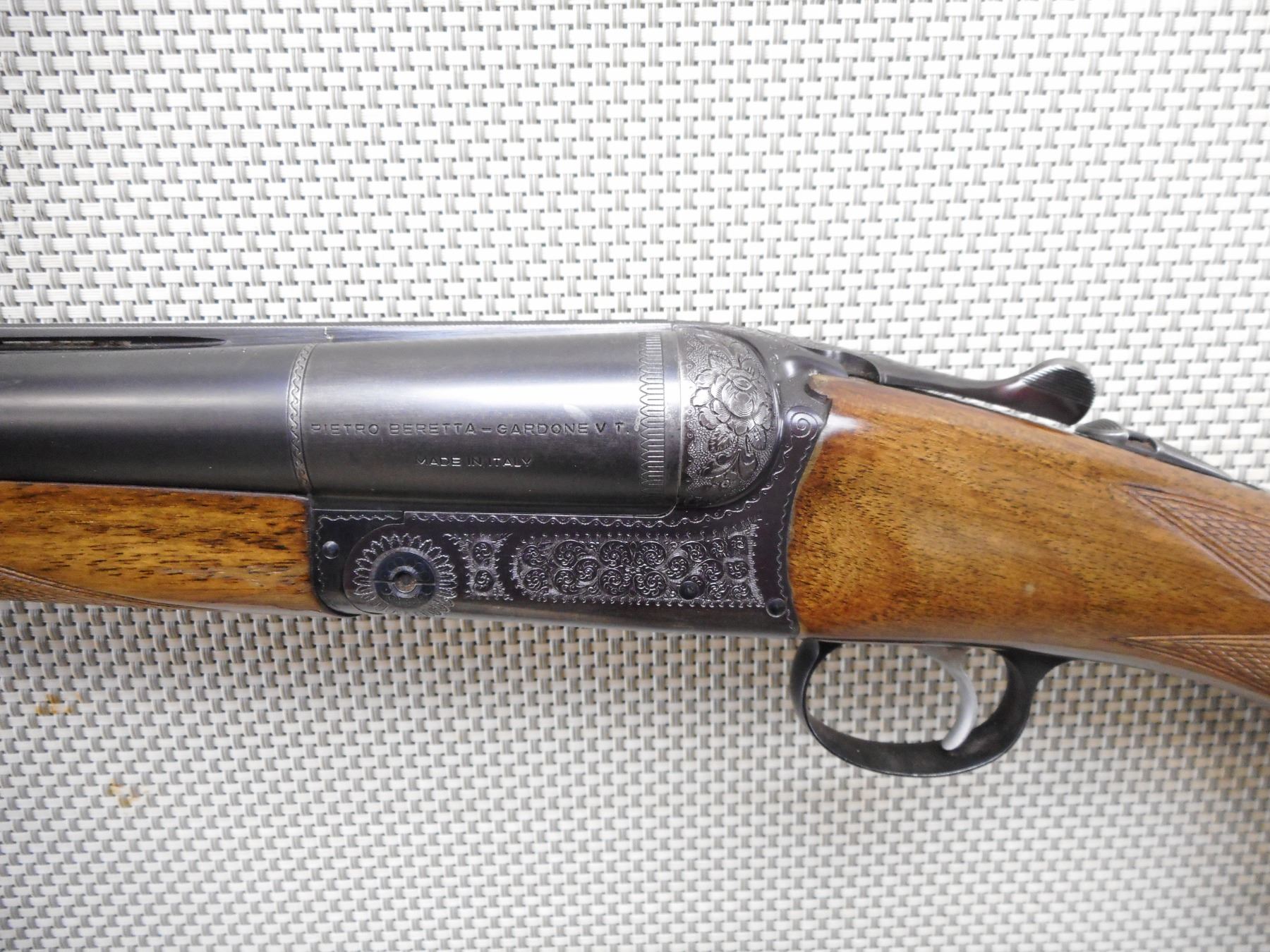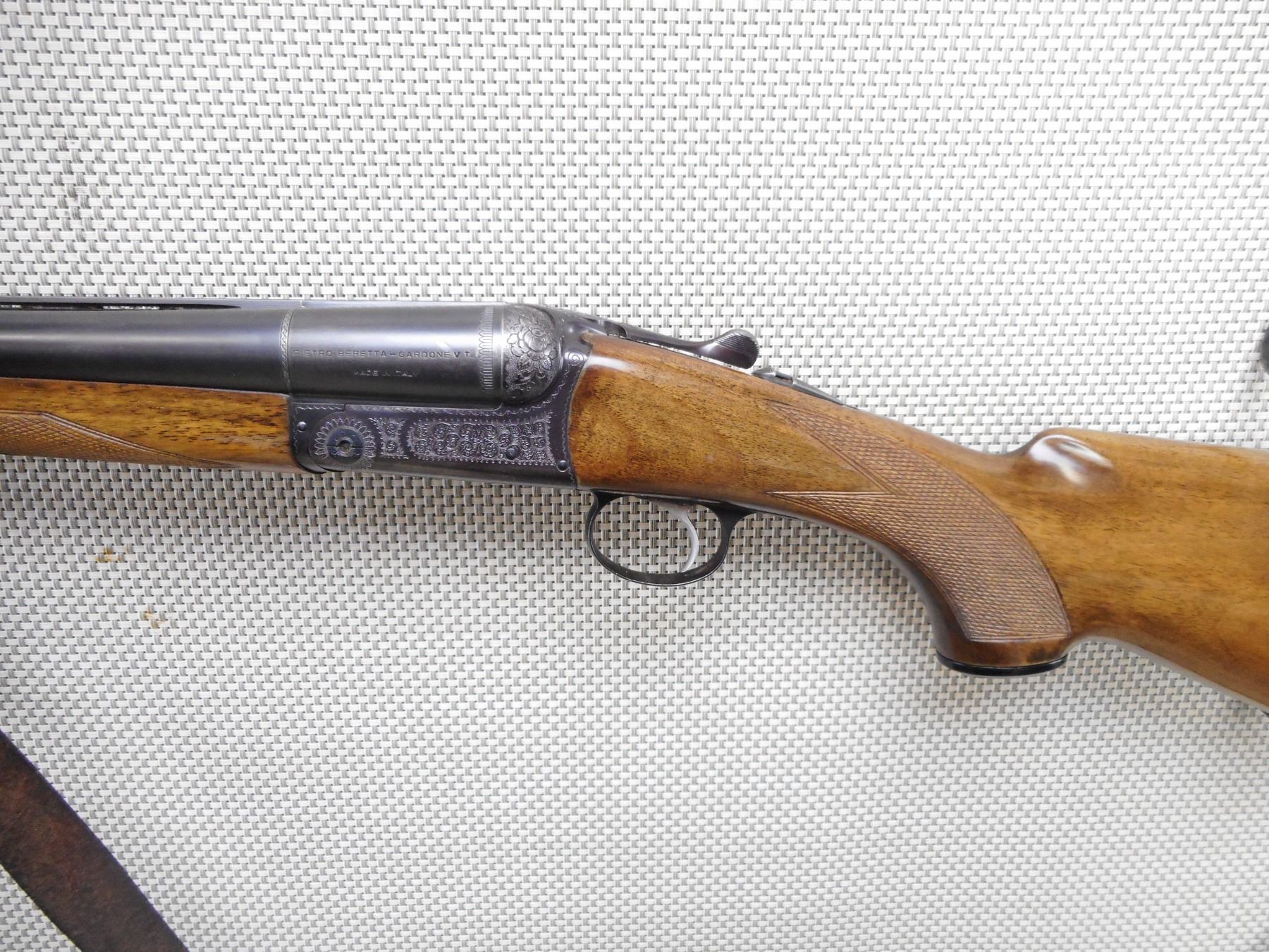 BERETTA , MODEL: SIDE BY SIDE , CALIBER: 12GA X 2 3/4" , BORES ARE EXCELLENT. IMPROVED MOD AND FULL FIXED CHOKES. BEAD FRONT SIGHT, RAISED SERRATED RIB BETWEEN BARRELS. BLUED FINISH ON METAL. CHECKERED WOOD FORESTOCK AND BUTT. BERETTA LOGO GRIP CAP. VENTED RUBBER RECOIL PAD. SLING SWIVELS WITH LEATHER SLING. RECEIVER SHOWS SOME ENGRAVING. SINGLE SELECTIVE TRIGGER. SHOWS SLIGHT HANDLING MARKS AND WEAR.ACTION: SIDE BY SIDE BREAK ACTION SHOTGUN , BARREL LENGTH: 30" , SERIAL # 47142 , CONDITION: 7/10 , CLASS: CANADIAN NON RESTRICTED CLASS