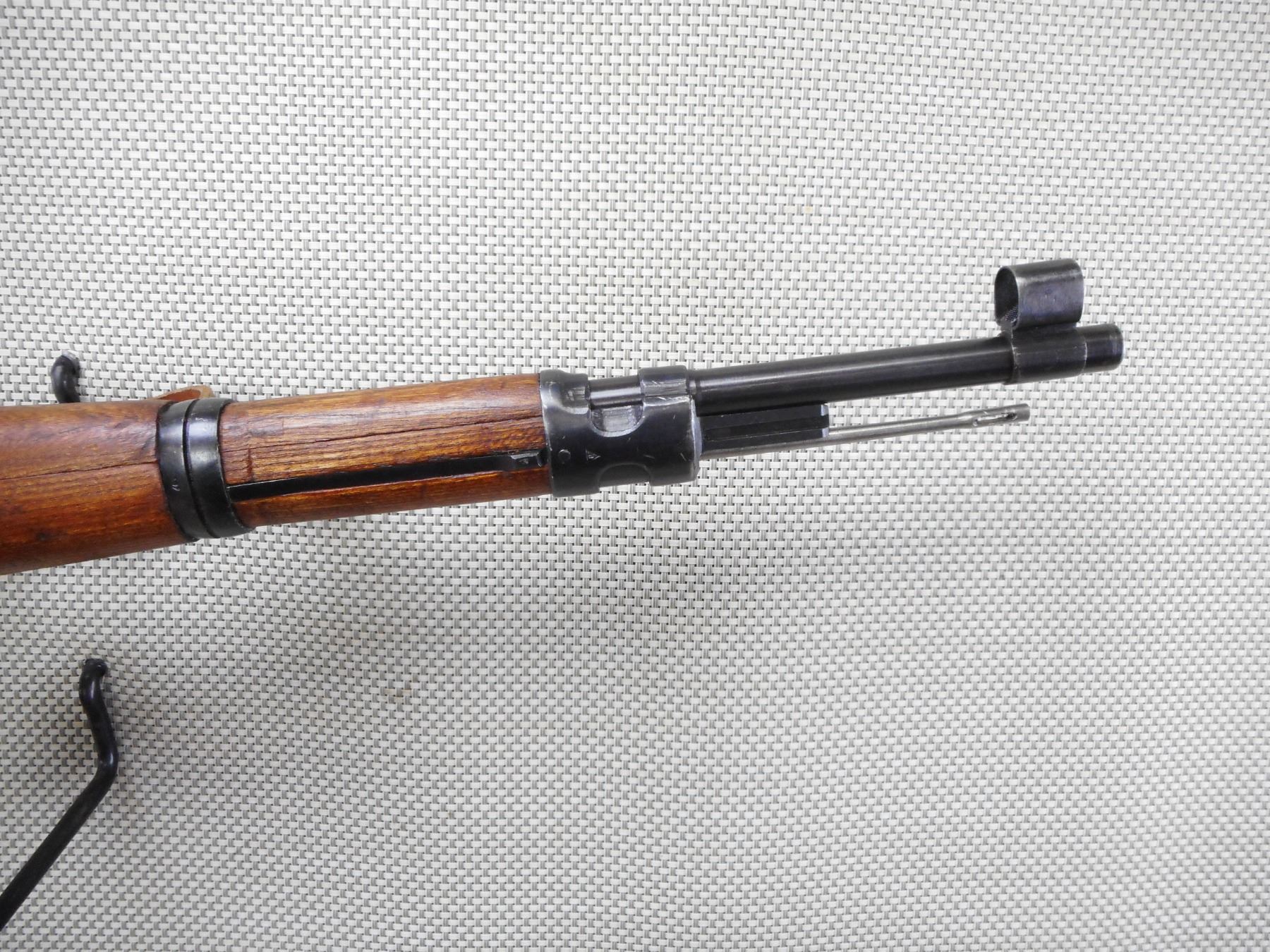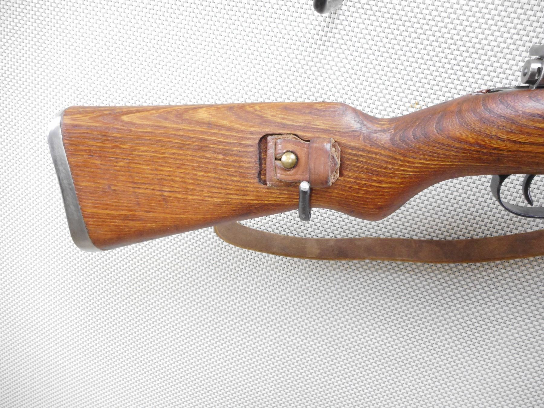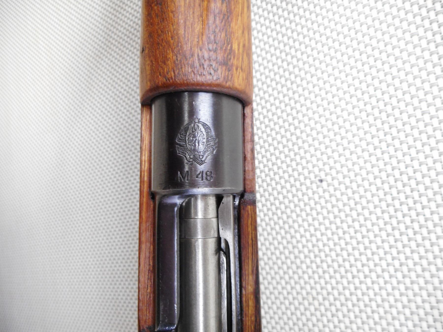 YUGOSLAVIAN , MODEL: M48 , CALIBER: 8MM MAUSER , BORE IS EXCELLENT WITH EXCELLENT RIFLING. BOLT AND RECEIVER MATCH BY SERIAL # TRIGGER GUARD DOES NOT. CORRECT LEATHER SLING. HOODED BARLEY CORN FRONT SIGHT. U NOTCH ADJUSTABLE REAR SIGHT. HAS CLEANING ROD. FULL LENGTH MILITARY STOCK. POLISHED STEEL BUTT PLATE. SHOWS SLIGHT HANDLING MARKS AND WEAR. ACTION: BOLT ACTION RIFLE , BARREL LENGTH: 23 1/2" , SERIAL # T91384 , CONDITION: 8/10 , CLASS: CANADIAN NON RESTRICTED CLASS