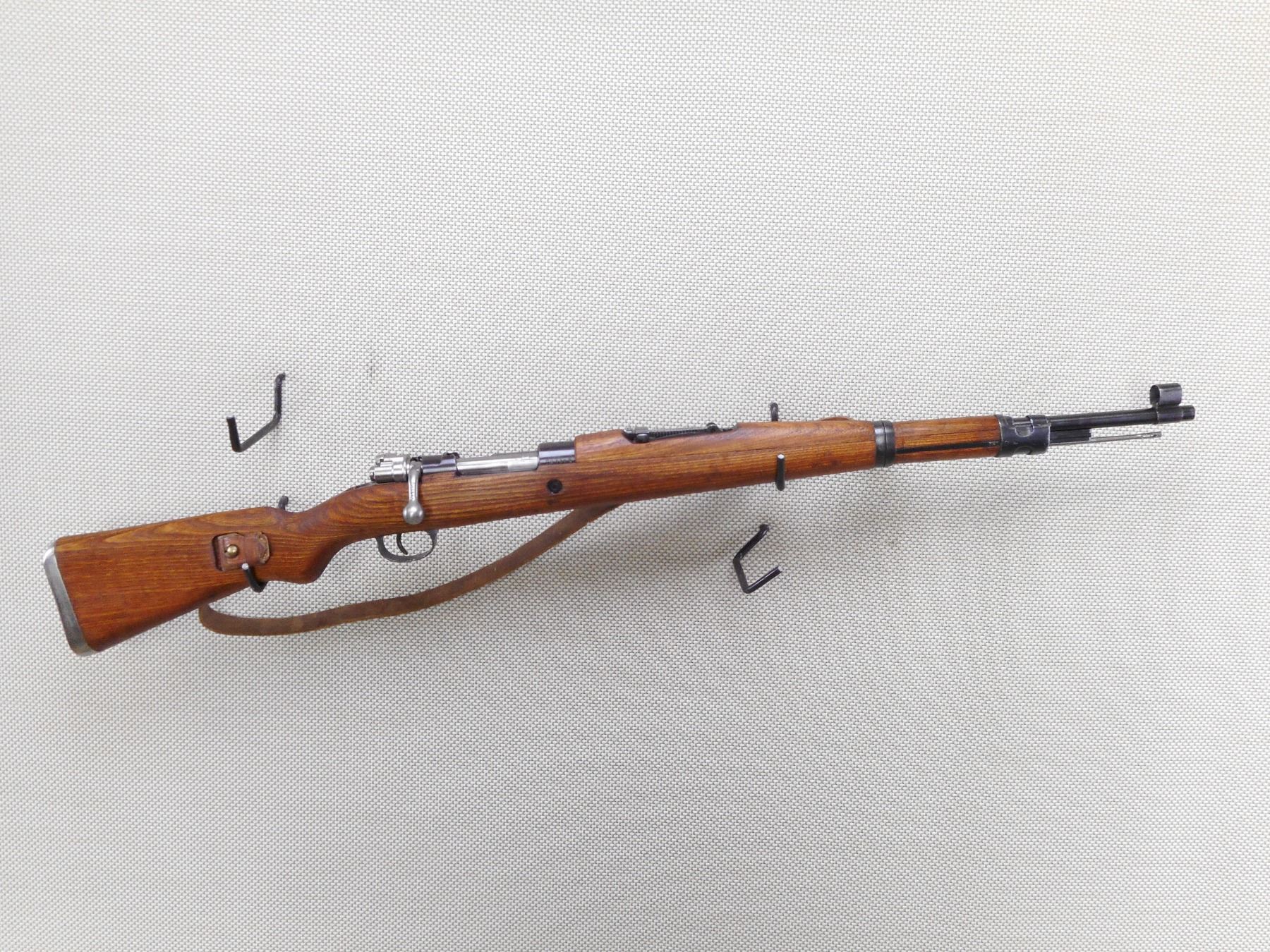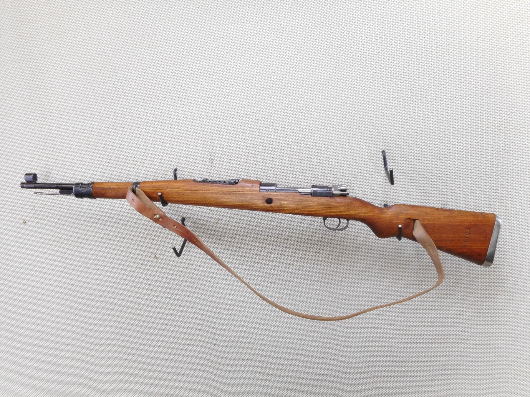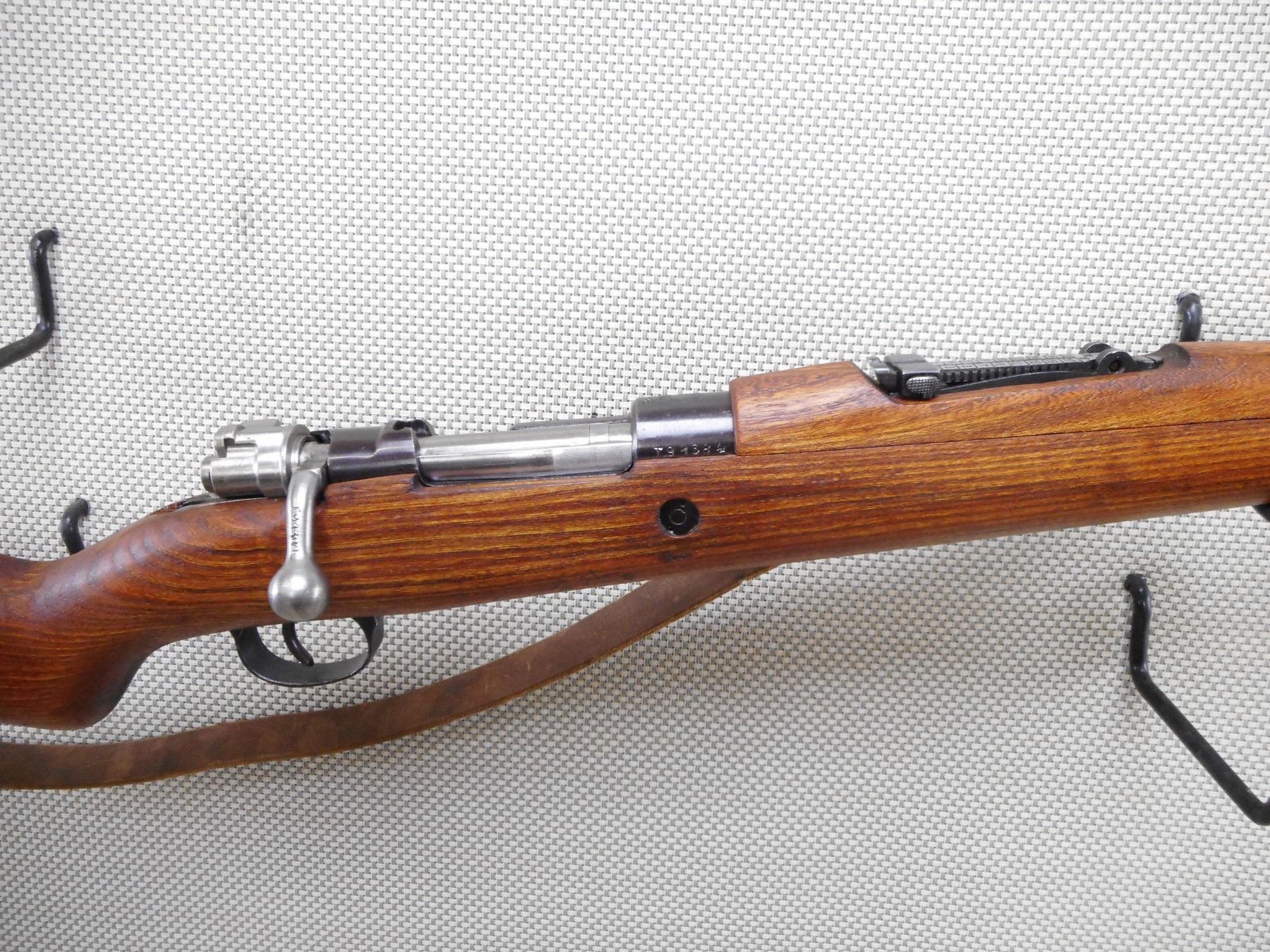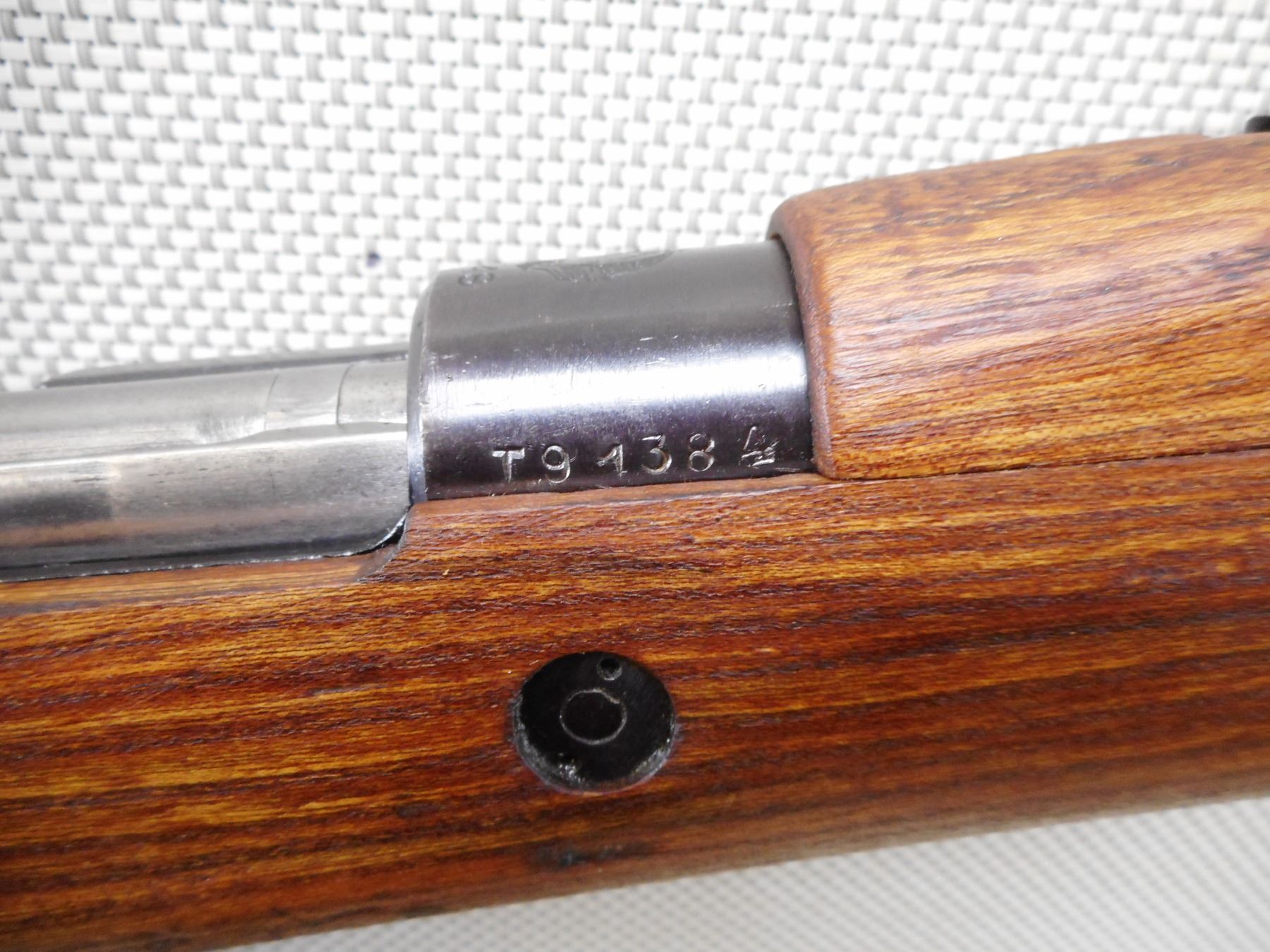 YUGOSLAVIAN , MODEL: M48 , CALIBER: 8MM MAUSER , BORE IS EXCELLENT WITH EXCELLENT RIFLING. BOLT AND RECEIVER MATCH BY SERIAL # TRIGGER GUARD DOES NOT. CORRECT LEATHER SLING. HOODED BARLEY CORN FRONT SIGHT. U NOTCH ADJUSTABLE REAR SIGHT. HAS CLEANING ROD. FULL LENGTH MILITARY STOCK. POLISHED STEEL BUTT PLATE. SHOWS SLIGHT HANDLING MARKS AND WEAR. ACTION: BOLT ACTION RIFLE , BARREL LENGTH: 23 1/2" , SERIAL # T91384 , CONDITION: 8/10 , CLASS: CANADIAN NON RESTRICTED CLASS