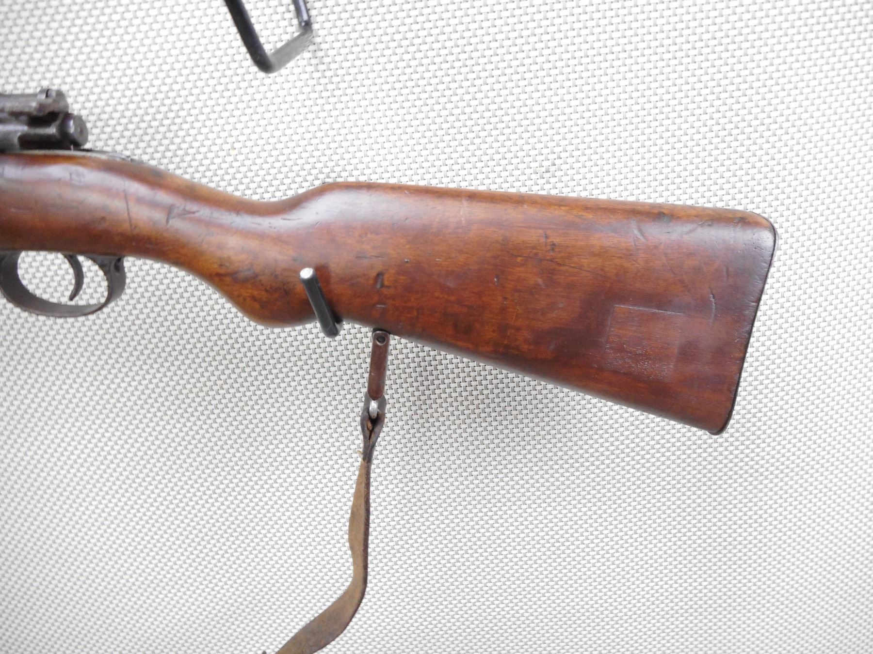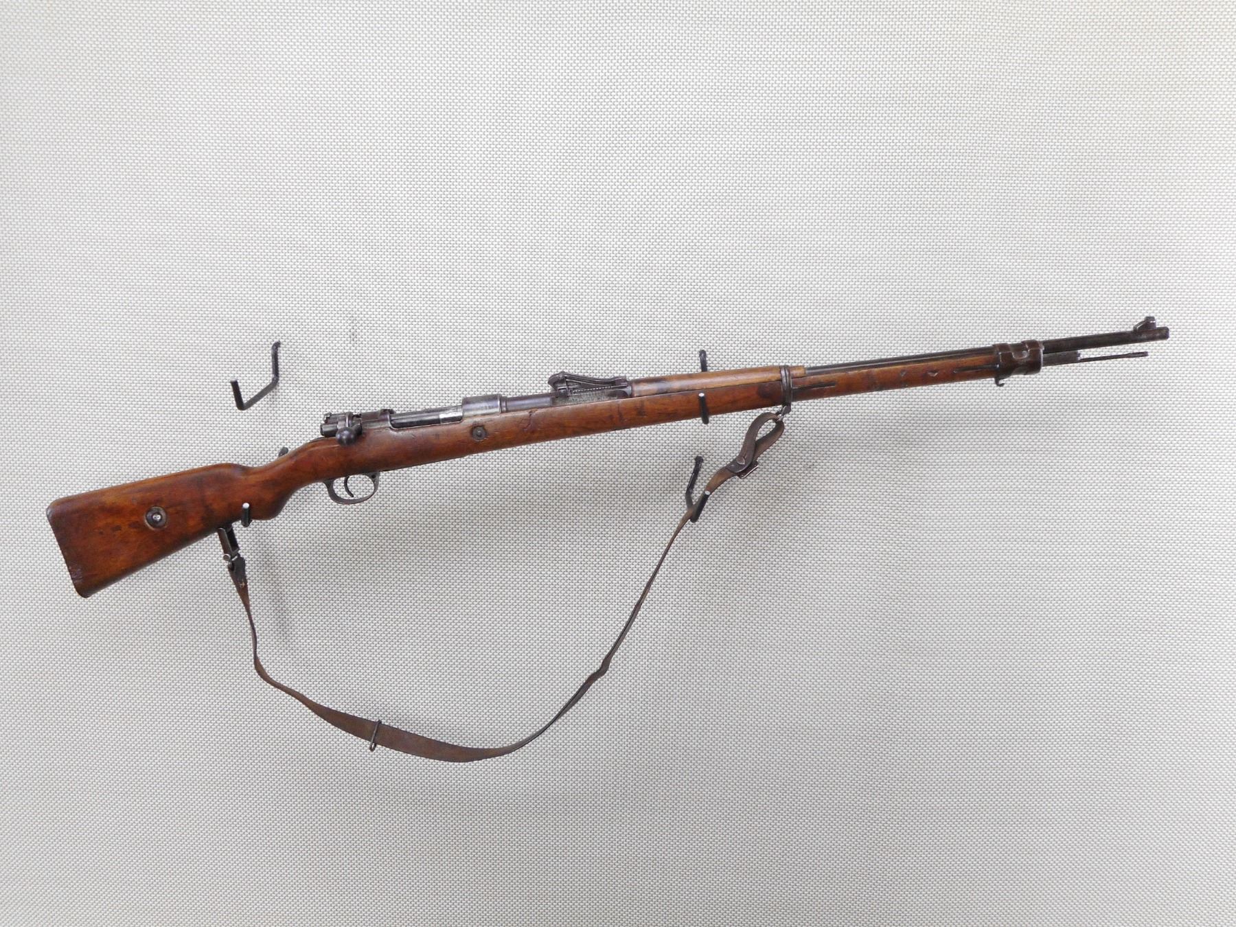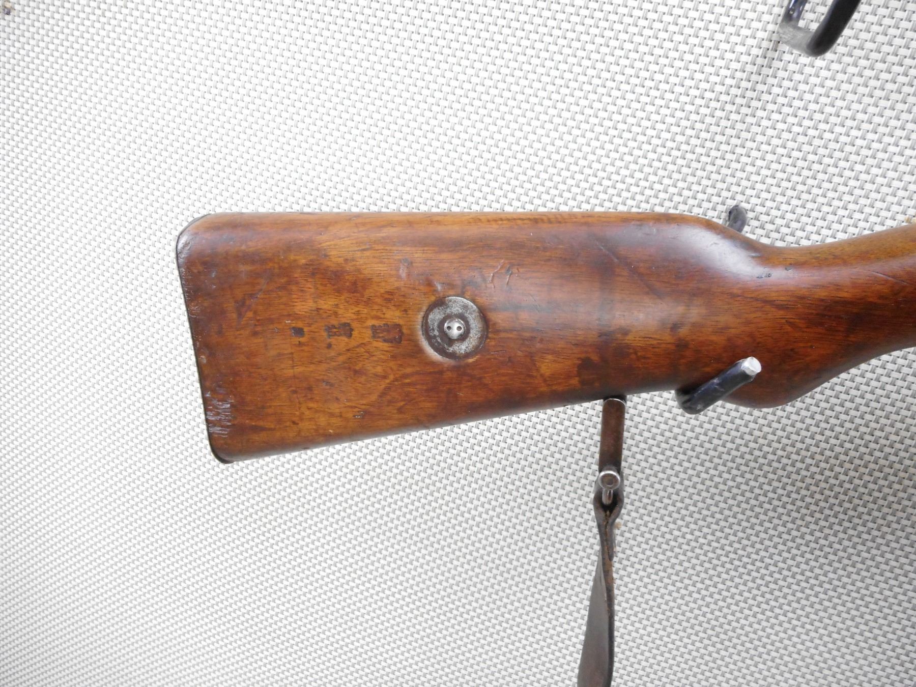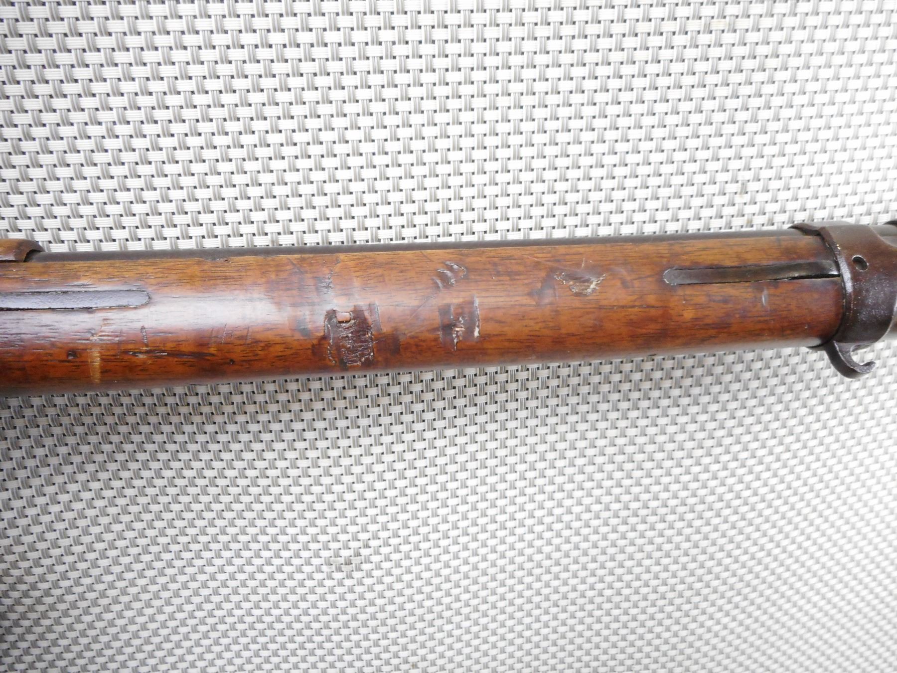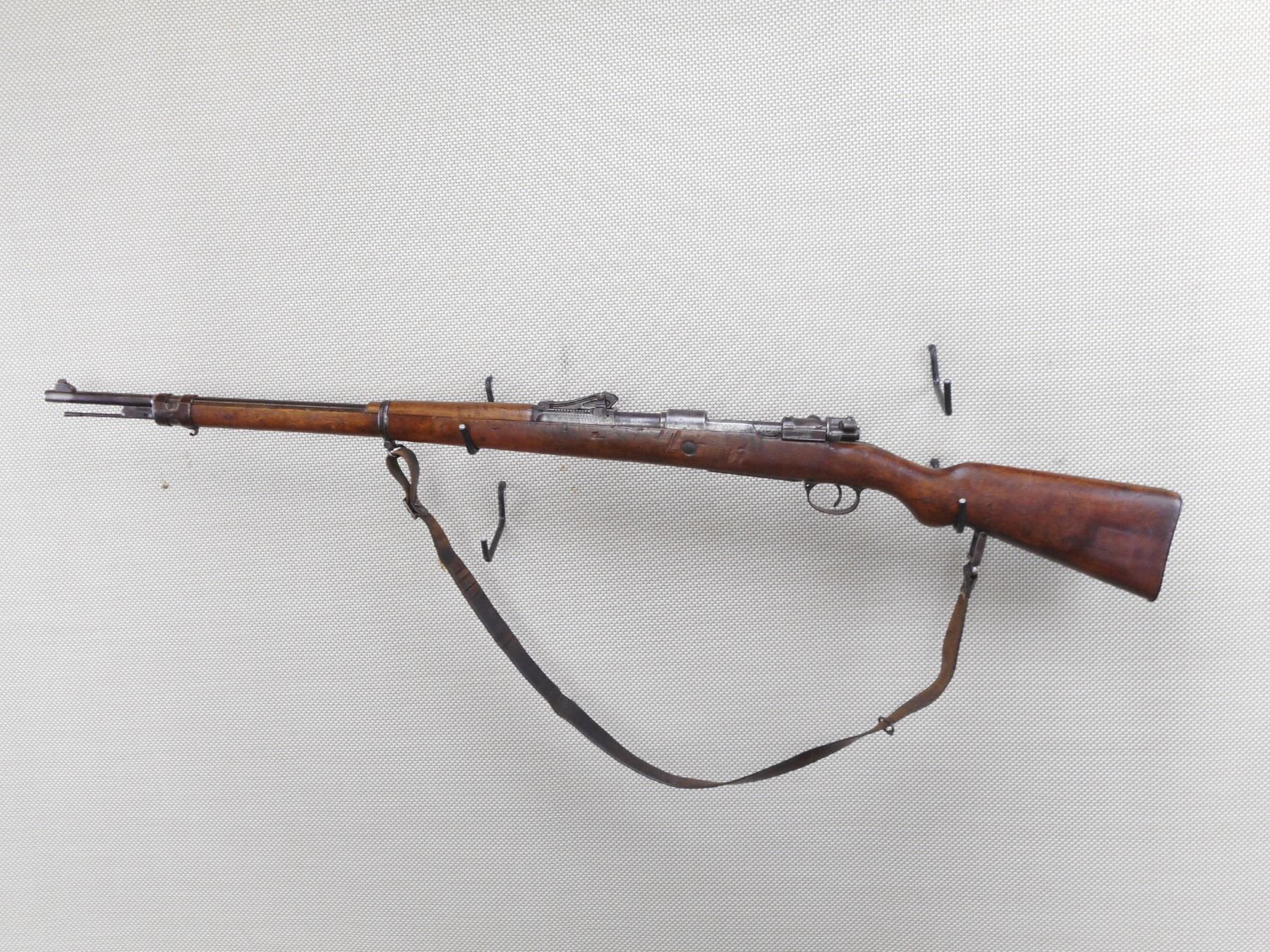 DANZIG , MODEL: GEW 98 , CALIBER: 8MM MAUSER , DANZIG 1905. BOLT HAS BEEN RENUMBERD TO MATCH BY SERIAL#. ARSENAL REPAIR TO THE BUTT. BORE IS POOR DARK AND PITTED. ORIGINAL SLING. BARLEY CORN FRONT SIGHT. ADJUSTABLE U NOTCH REAR SIGHT. CLEANING ROD. METAL FINISH IS TURNING BROWN. LIGHT RUST SPECKLING AND SILVER PATCHES. FULL LENGTH MILITARY STOCK. STEEL BUTT PLATE. SHOWS NUMEROUS CHIPS, DENTS AND HANDLING MARKS. ACTION: BOLT ACTION RIFLE , BARREL LENGTH: 29 1/2" , SERIAL # 1015 , CONDITION: 5/10 , CLASS: CANADIAN NON RESTRICTED CLASS