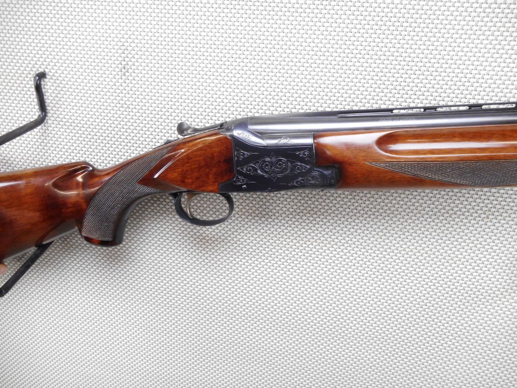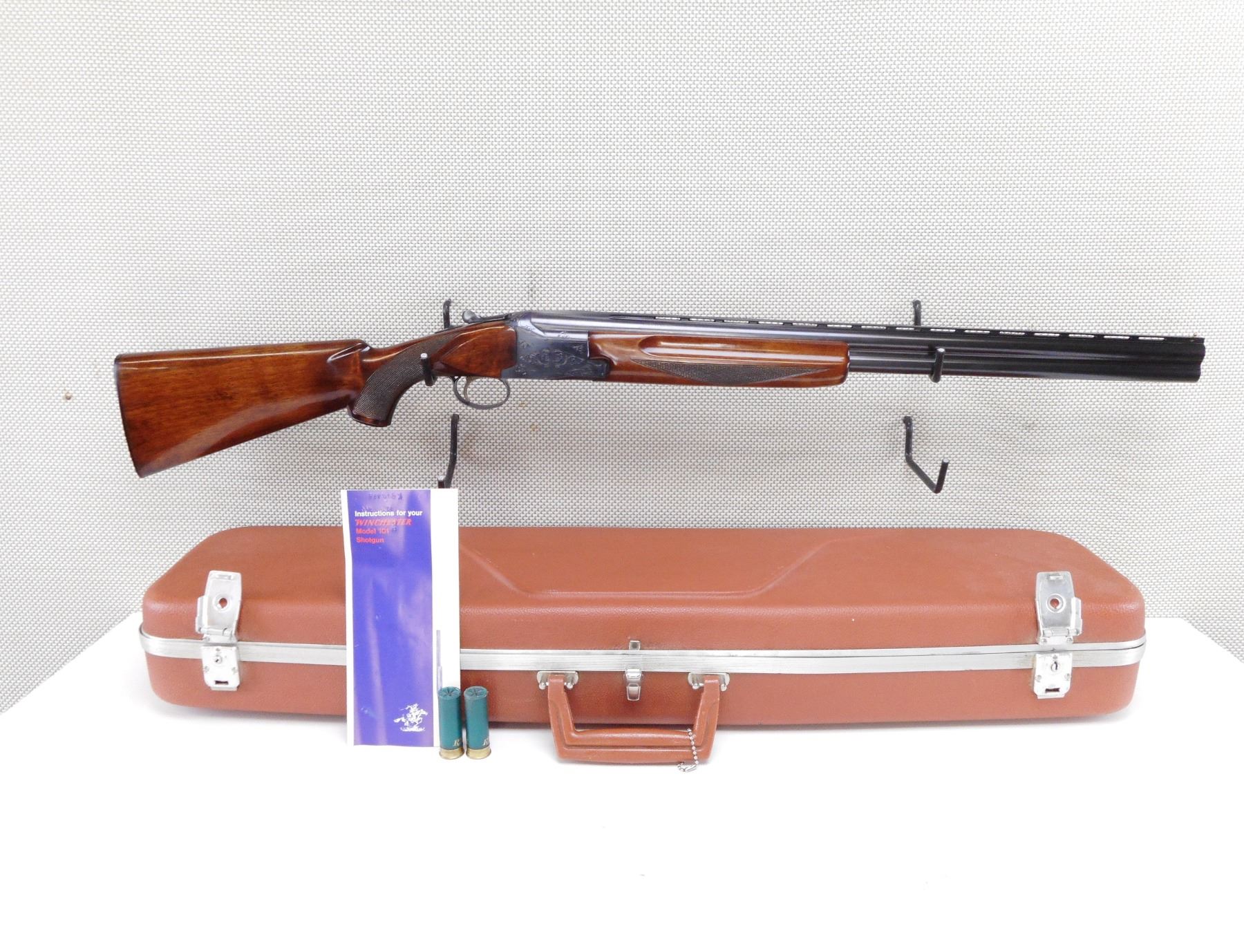 WINCHESTER , MODEL: 101 , CALIBER: 12GA X 2 3/4" , EXCELLENT BORES. FIXED MODIFIED/IMPROVED CYLINDER CHOKES. BRASS BEAD FRONT SIGHT. SERRATED RAISED RIB ON BARREL. POLISHED BLUE FINISH. RECEIVER IS ENGRAVED. CHECKERED FINGER GROOVED FOREND. CHECKERED BUTT STOCK WITH GRIP CAP. SERRATED BLACK POLYMER WINCHESTER BUTT PLATE. SINGLE SELECTIVE INERTIA TRIGGER. EJECTORS. COMES WITH HARD CASE. SHOWS VERY SLIGHT HANDLING MARKS AND WEAR. ACTION: OVER UNDER BREAK ACTION SHOTGUN , BARREL LENGTH: 26" , SERIAL # K305937 , CONDITION: 9/10 , CLASS: CANADIAN NON RESTRICTED CLASS