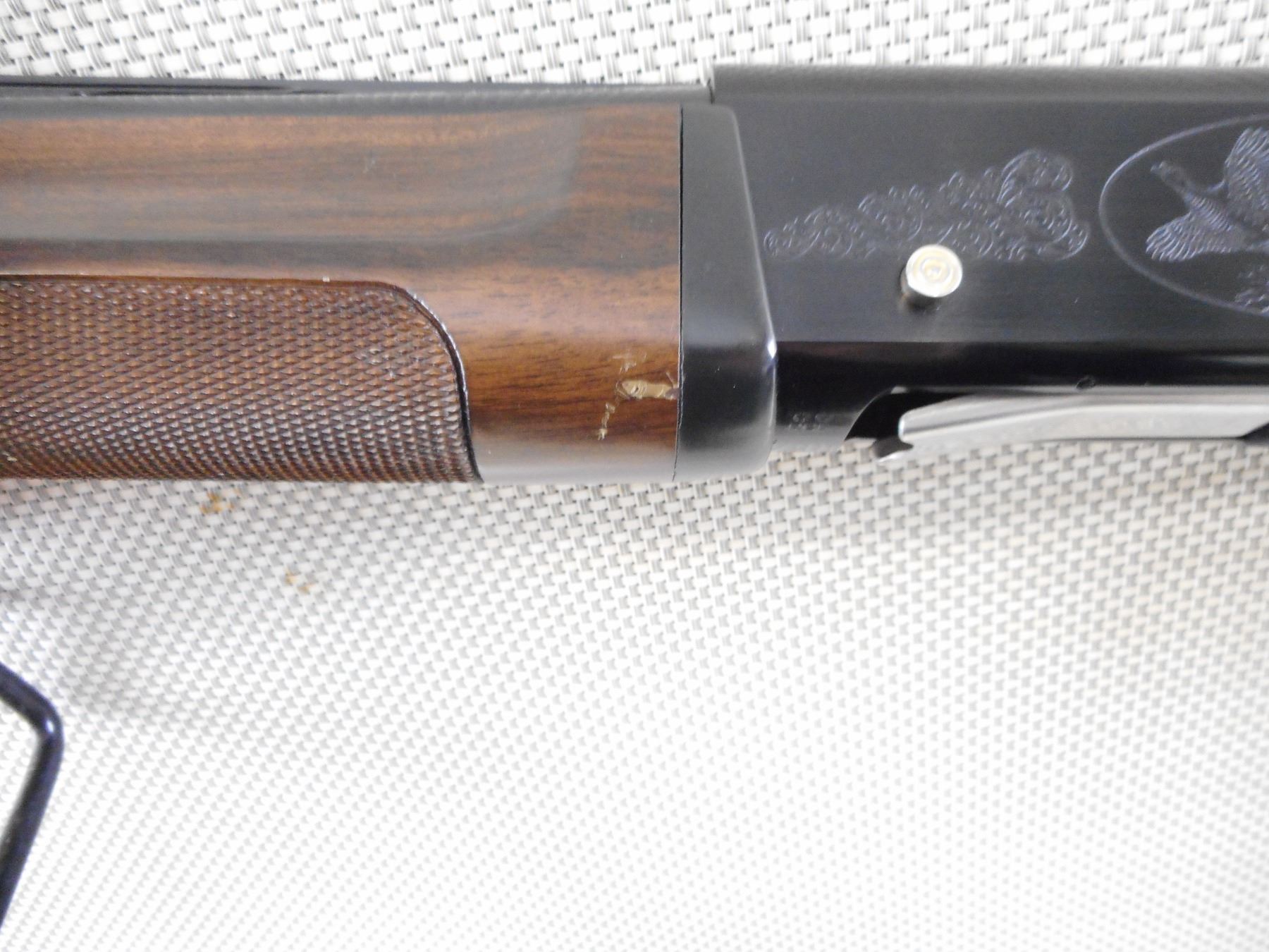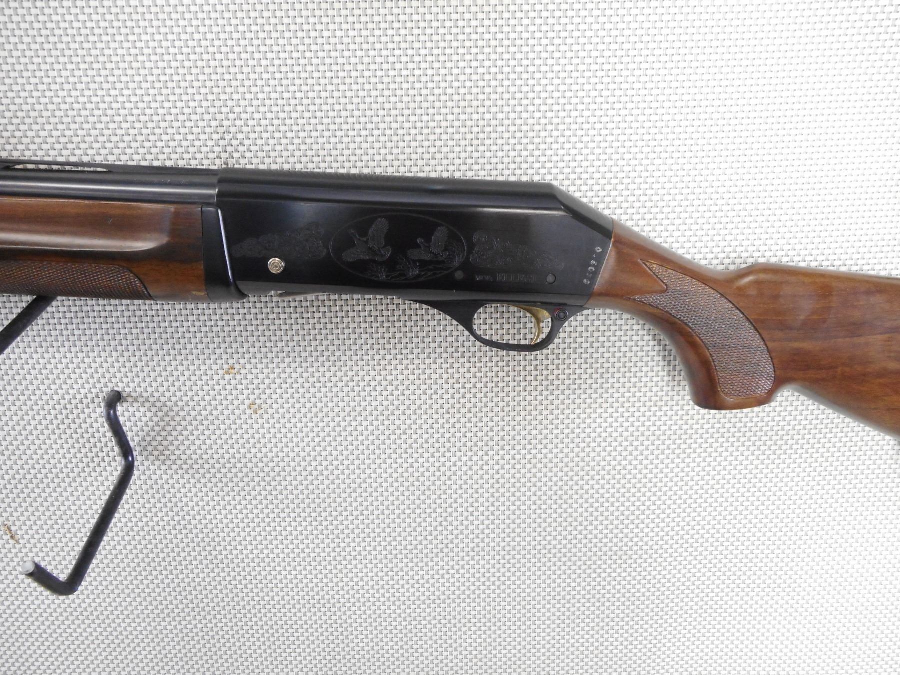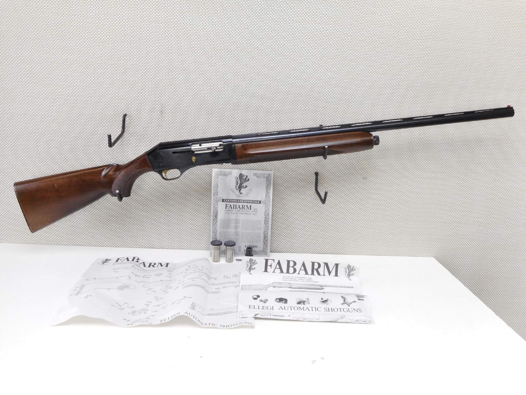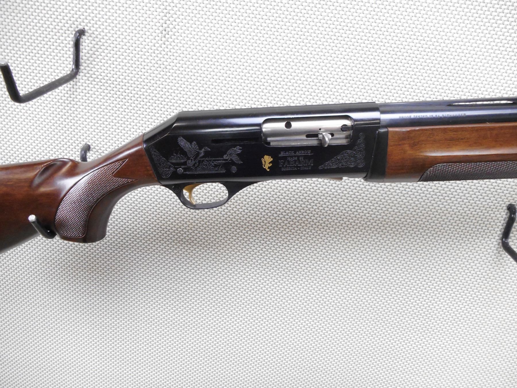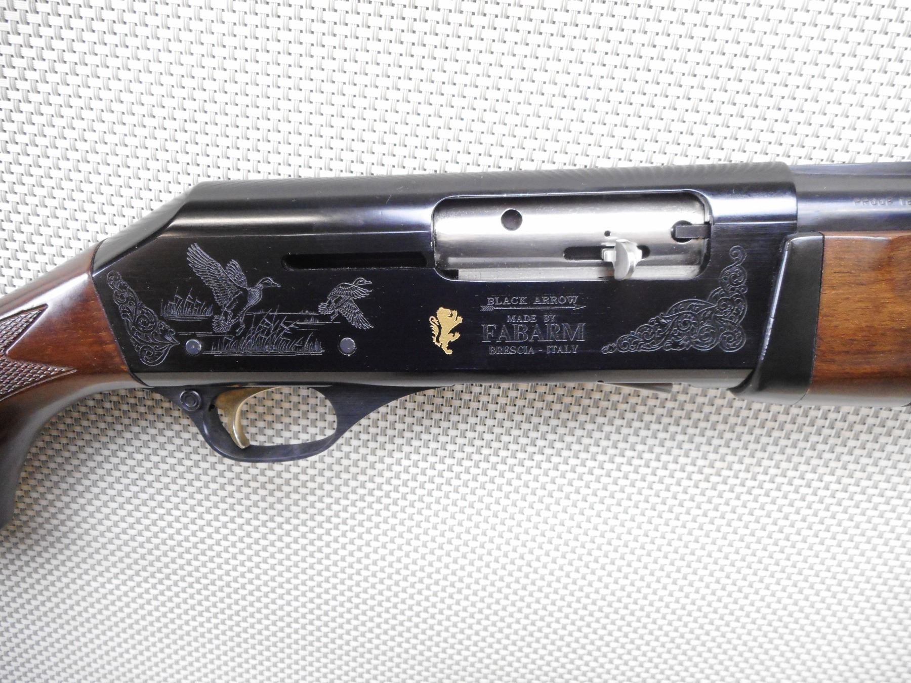 FABARM , MODEL: BLACK ARROW , CALIBER: 12GA X 3" , COMES WITH A TOTAL OF 3 CHOKES, CHOKE WRENCH AND MANUAL. BORE IS EXCELLENT. RED VFIBER OPTIC FRONT BEAD. SERRATED RAISED RIB ON BARREL. BLUED FINISH ON BARREL. BLACK RECEIVER WITH ENGRAVED GAME BIRDS. CHECKERED WOOD FORESTOCK. CHECKERED PISTOL GRIP WOOD BUTT STOCK. SERRATED BLACK POLYMER BUTT PLATE. SHOWS MINOR HANDLING MARKS AND WEAR. ACTION: SEMI AUTOMATIC SHOTGUN , BARREL LENGTH: 28" , SERIAL # 540910 , CONDITION: 8/10 , CLASS: CANADIAN NON RESTRICTED CLASS
