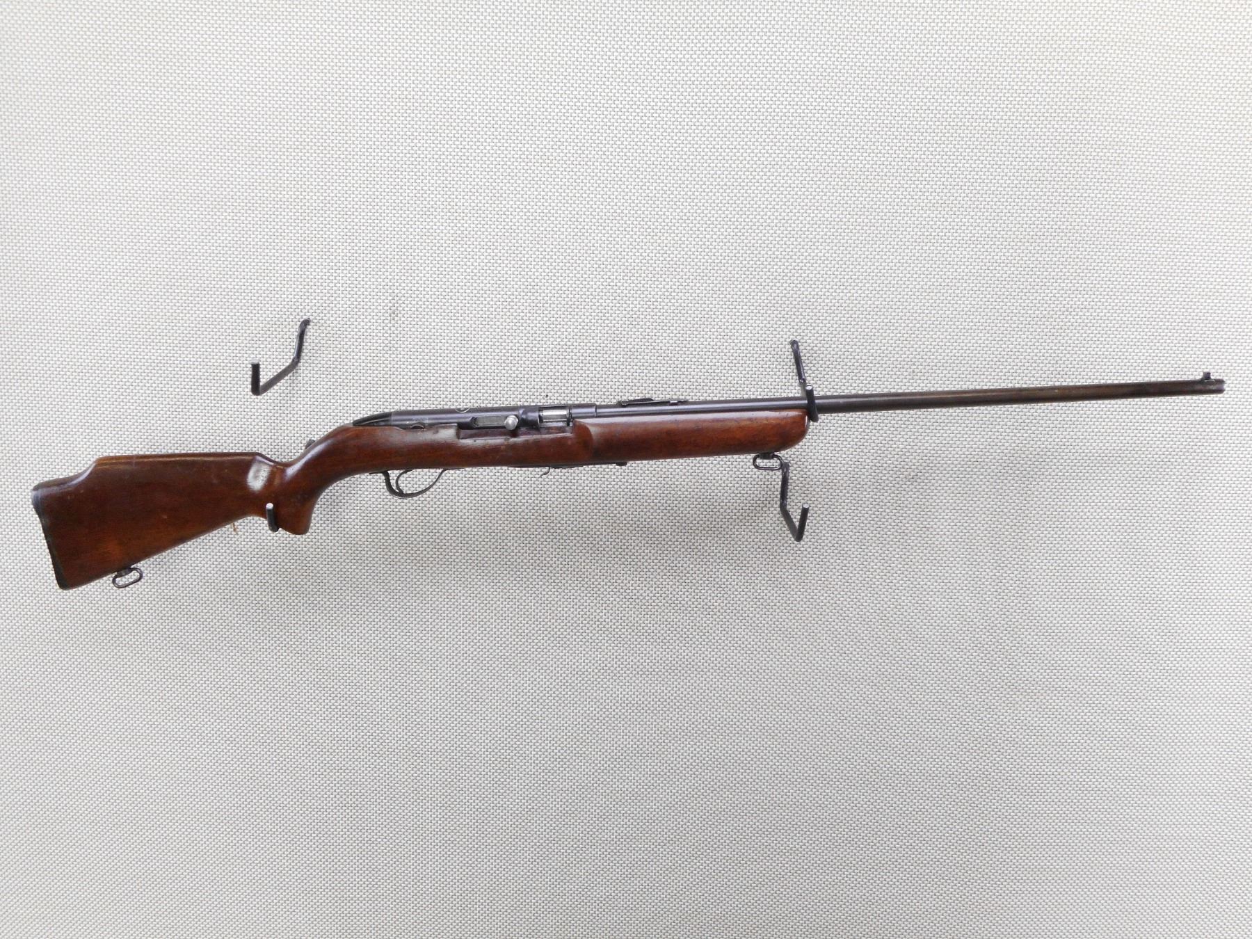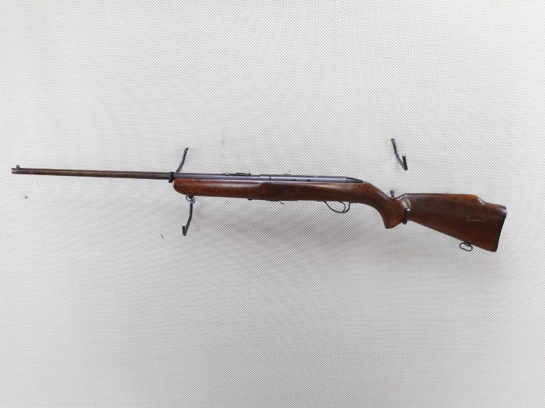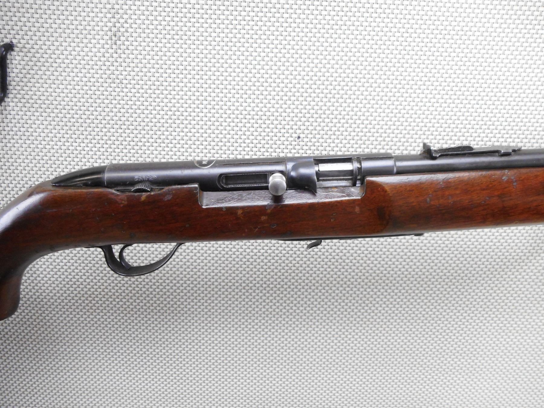 SAVAGE , MODEL: 7H , CALIBER: 22 LR , COMES WITH MAGAZINE. BORE IS EXCELLENT. BLADE FRONT SIGHT AND ADJUSTABLE U NOTCH REAR SIGHT. BLUED FINISH ON METAL PARTS. SMOOTH WOOD STOCK WITH SERRATED BLACK POLYMER BUTT PLATE. SLING SWIVELS. SHOWS SOME HANDLING MARKS AND WEAR. ACTION: SEMI-AUTOMATIC RIFLE , BARREL LENGTH: 24" , SERIAL # N/A , CONDITION: 6/10 , CLASS: CANADIAN NON RESTRICTED CLASS