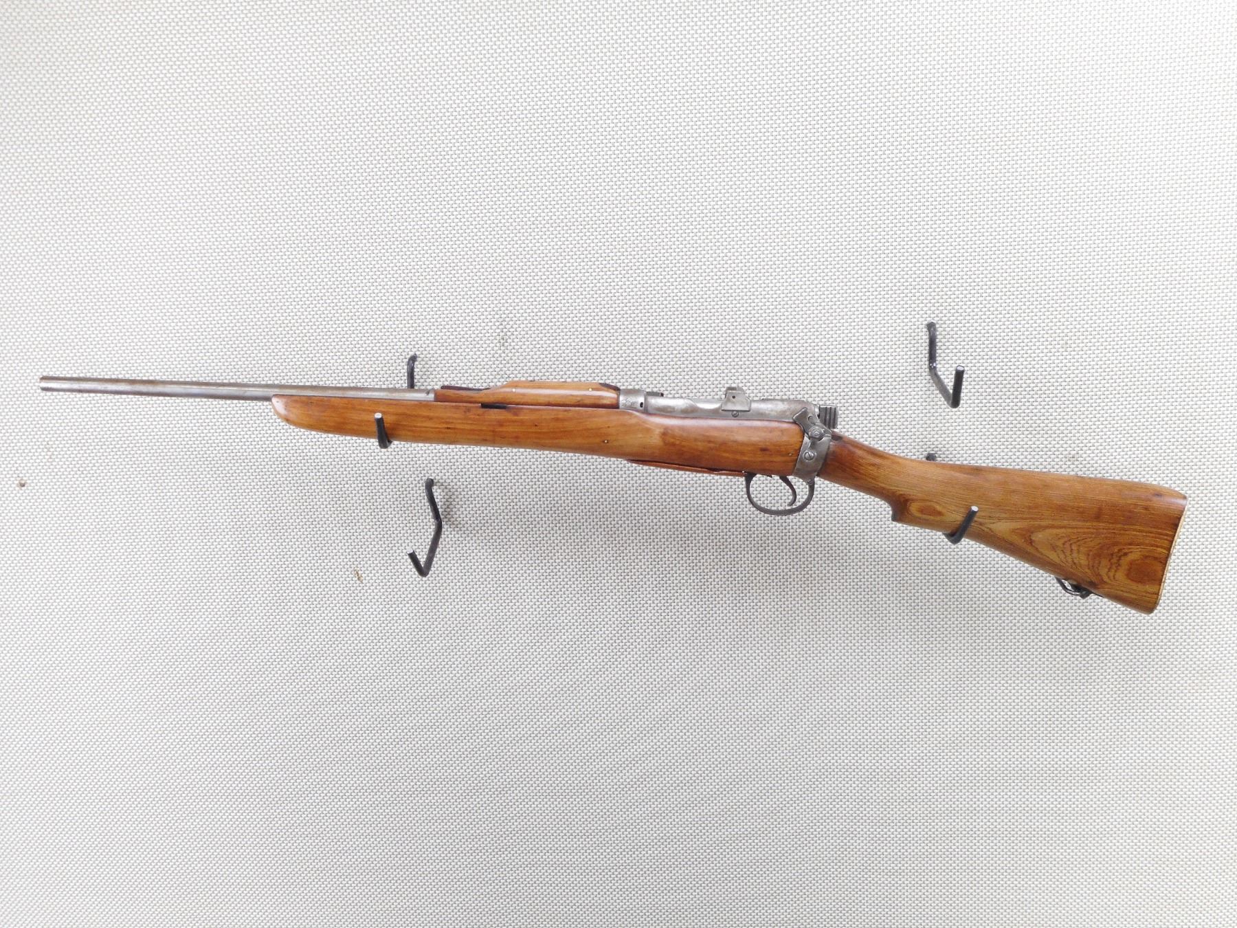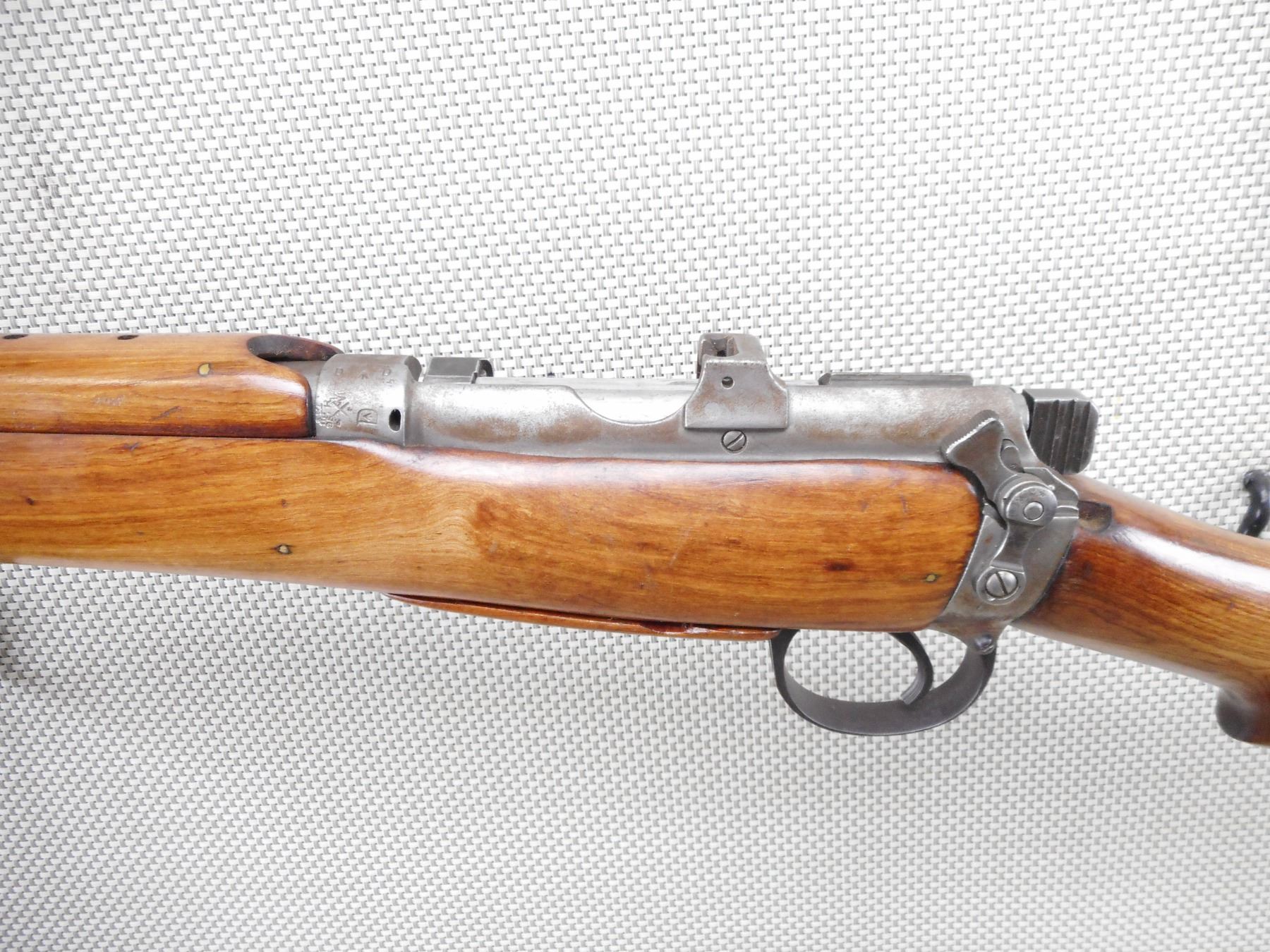 LEE ENFIELD , MODEL: NO. 1 MK III SPORTER , CALIBER: 303 BR , COMES WITH CUSTOM WOOD FLOOR PLATED 5 SHOT MAGAZINE . BOLT AND RECEIVER DON'T MATCH BY SERIAL #. DATED 1914.SPORTING RIFLE. AUSTRALIAN COACHWOOD FURNITURE. SHORT BARREL .GOOD BORE. NO BLUING REMAINING ON ALL METAL PARTS. NO SIGHTS. NOT DRILLED. HAS SAFETY AND GUARD SCREW. BRASS BUTTPLATE. MISSING THE FRONT SLING SWIVEL LOOP. OTHER LIGHTOW PARTS AND MARKINGS AND NUMEROUS BRD ARROW. SHOWS EXTENSIVE HANDLING MARKS.ACTION: BOLT ACTION RIFLE , BARREL LENGTH: 22" , SERIAL # 6566 , CONDITION: 5/10 , CLASS: CANADIAN NON RESTRICTED CLASS