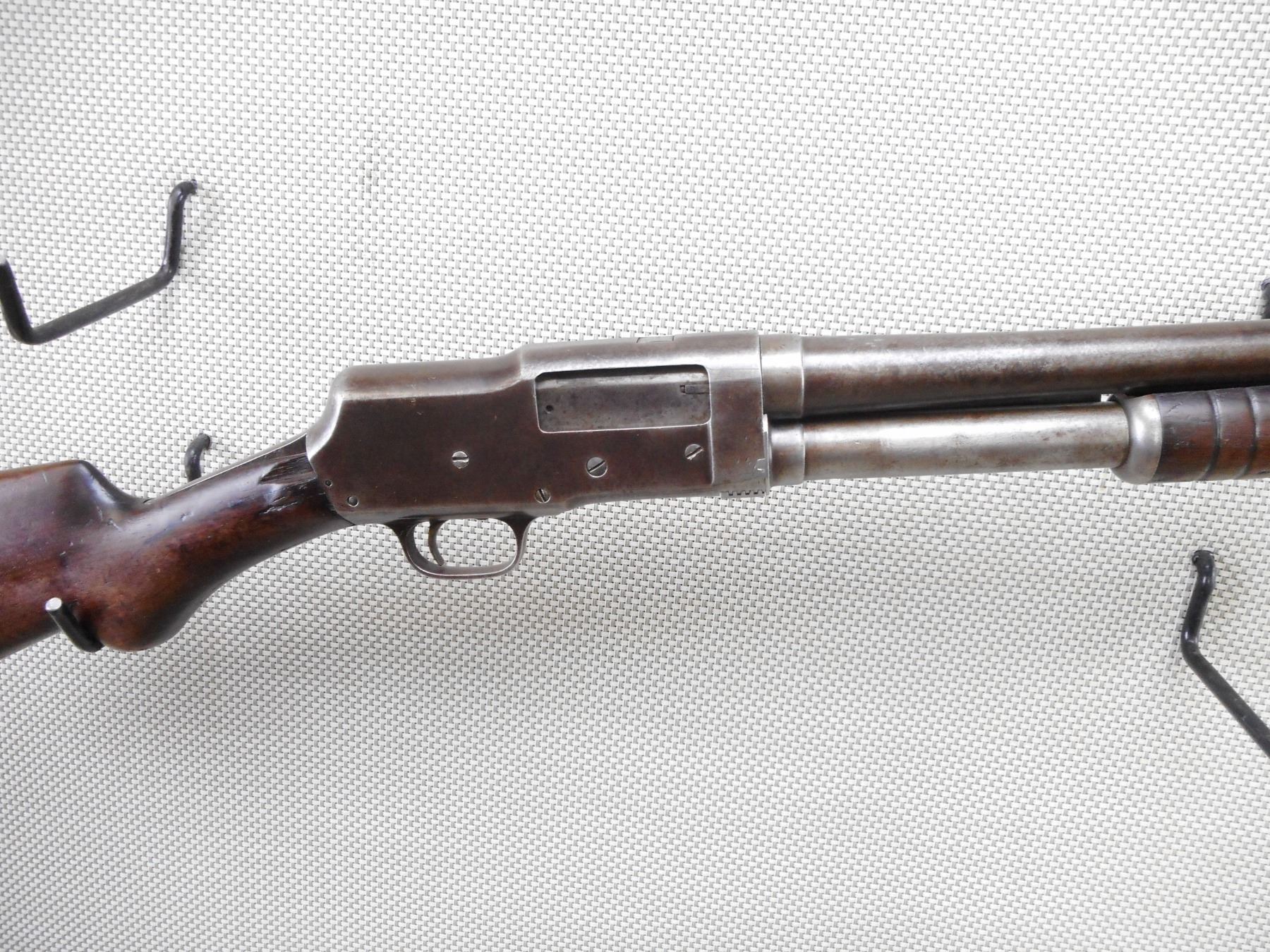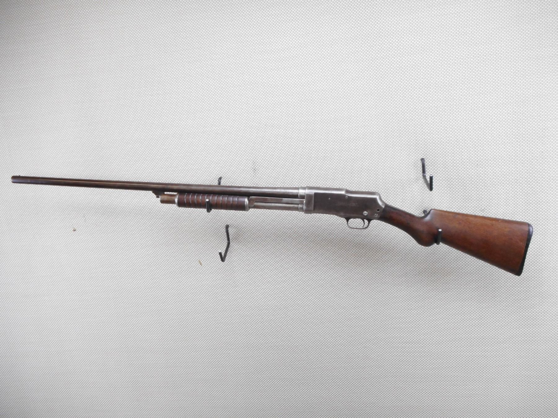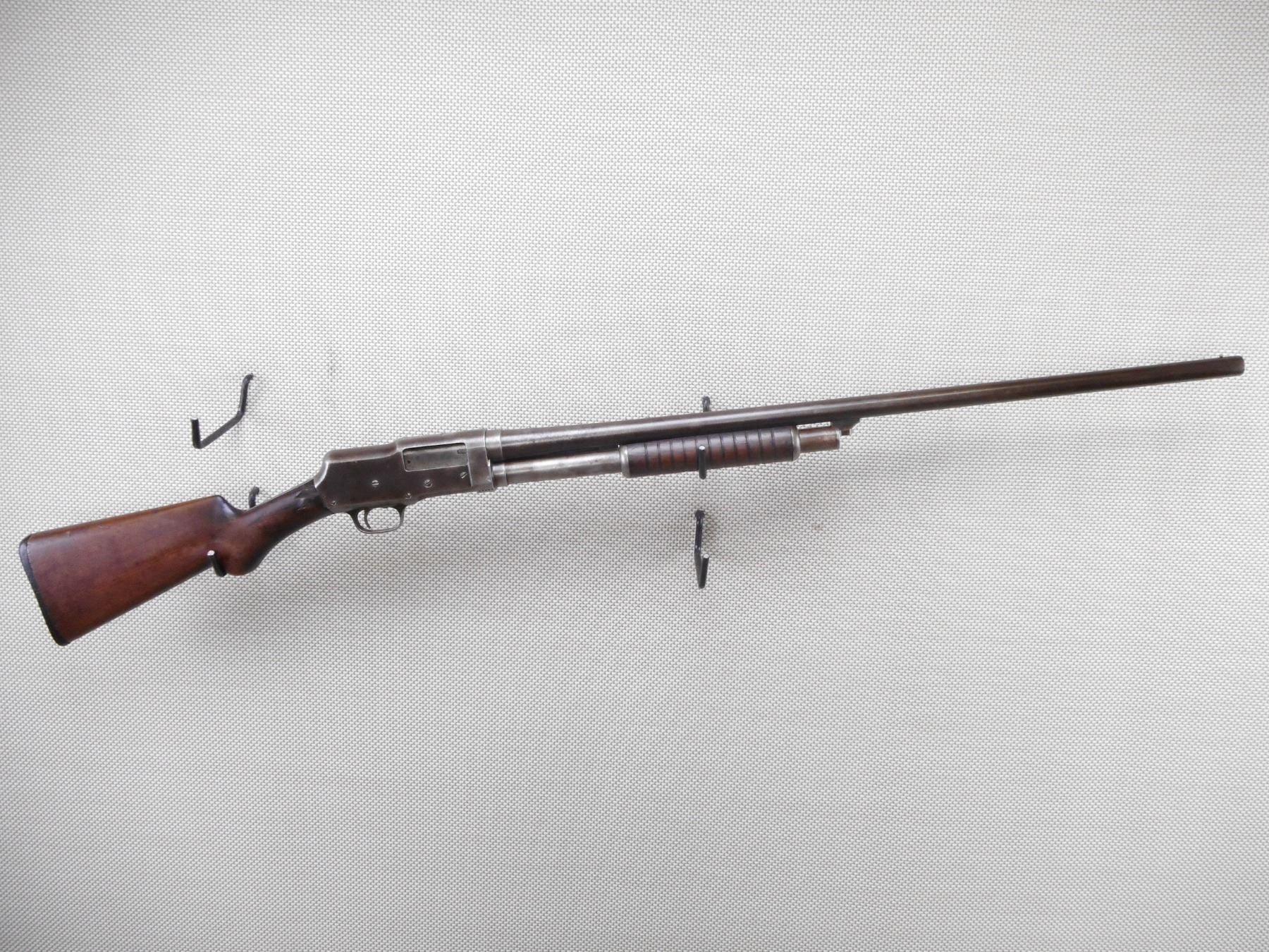 STEVENS , MODEL: 520 , CALIBER: 12GA X 2 3/4" , FIXED FULL CHOKE. BORE IS GOOD. BEAD FRONT SIGHT. 2 PIECE HARDWOOD STOCK WITH PLASTIC BUTT PLATE. STOCK IS CRACKED AND CHIPPED AT THE WRIST. OVERALL BROWN FINISH. MISSING A RECEIVER SCREW. SHOWS SOME HANDLING MARKS. ACTION: PUMP ACTION SHOTGUN , BARREL LENGTH: 30" , SERIAL # 2825 , CONDITION: 5/10 , CLASS: CANADIAN NON RESTRICTED CLASS