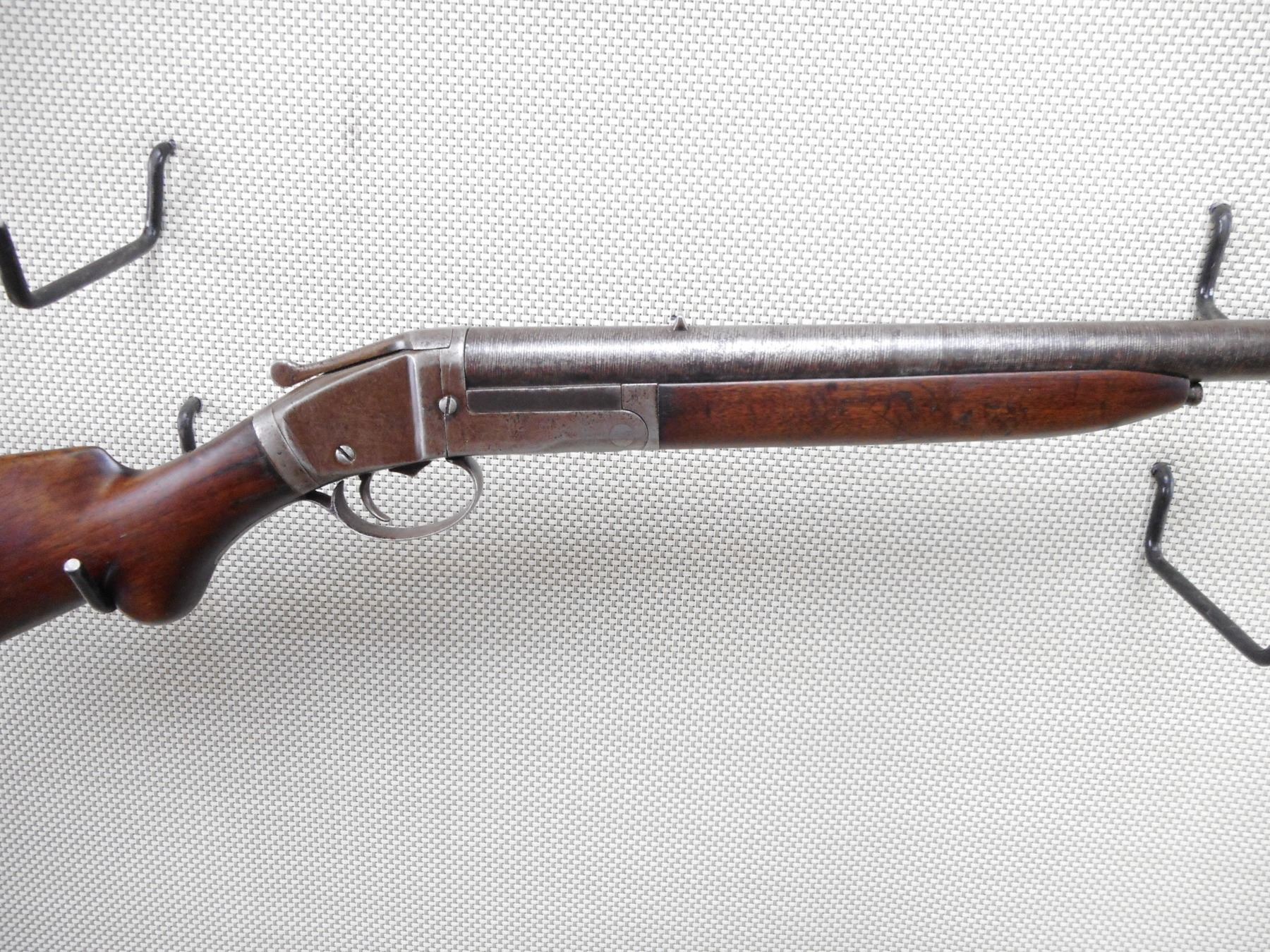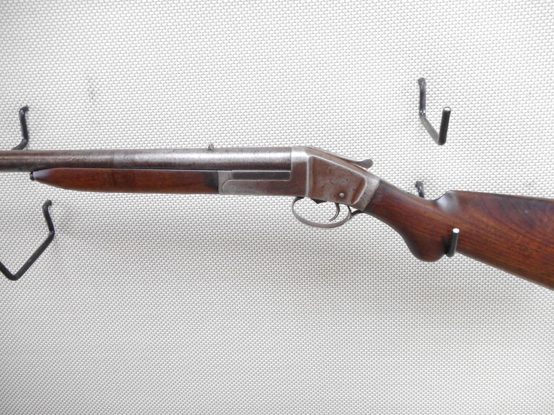 STRONG FIREARMS CO. , MODEL: SINGLE SHOT , CALIBER: 12GA X 3" , BORE IS GOOD. IMPROVED CYLINDER CHOKE. BEAD FRONT SIGHT AND FIXED REAR SIGHT. TWO PIECE HARDWOOD STOCK WITH PLASTIC BUTT PLATE AND A SMALL CRACK AT THE WRIST. SHOWS SOME HANDLING MARKS. APPEARS TO BE A DAMASCUS BARREL. ACTION: SINGLE SHOT SHOTGUN , BARREL LENGTH: 32" , SERIAL # 1736 , CONDITION: 5/10 , CLASS: CANADIAN NON RESTRICTED CLASS