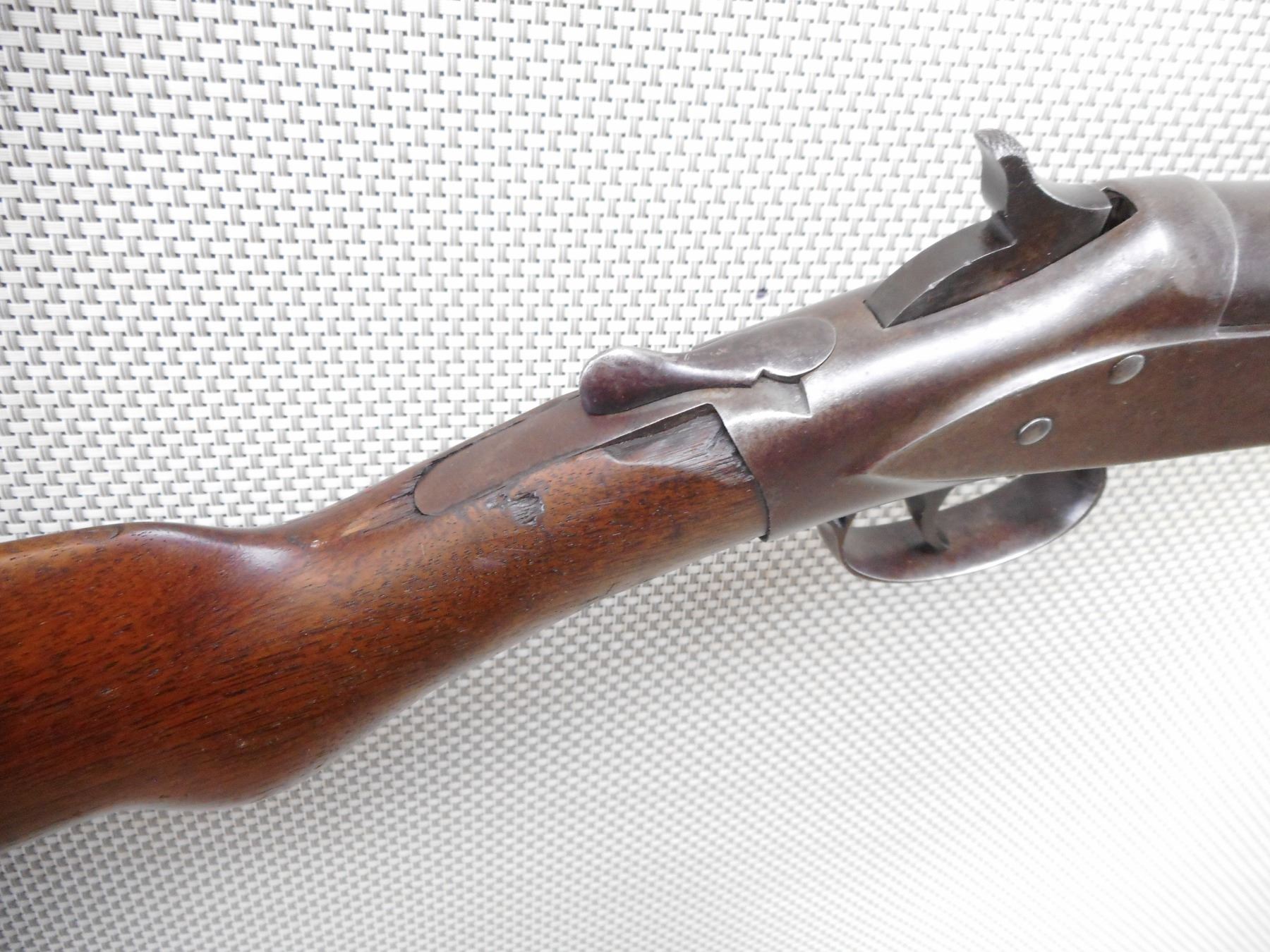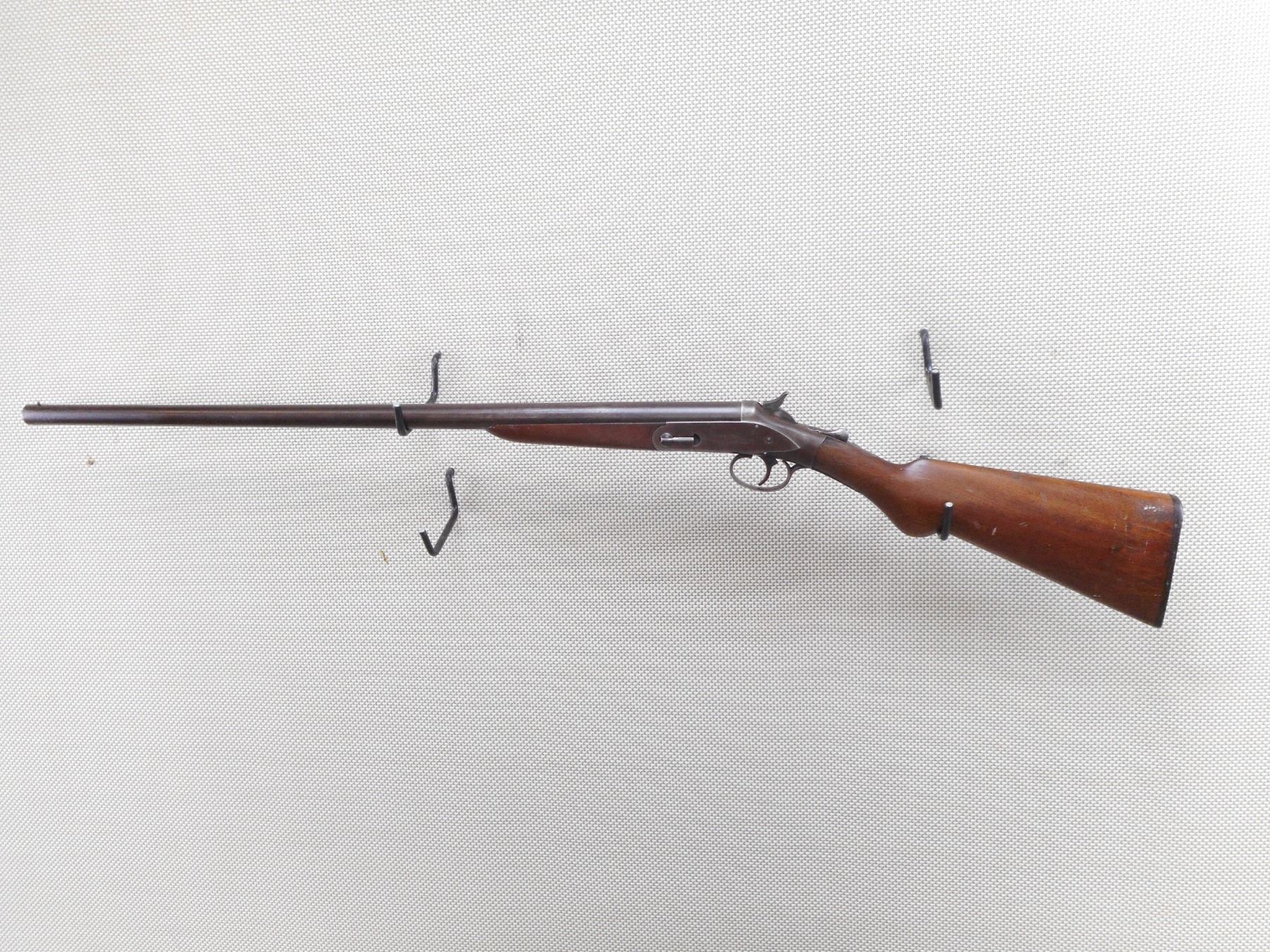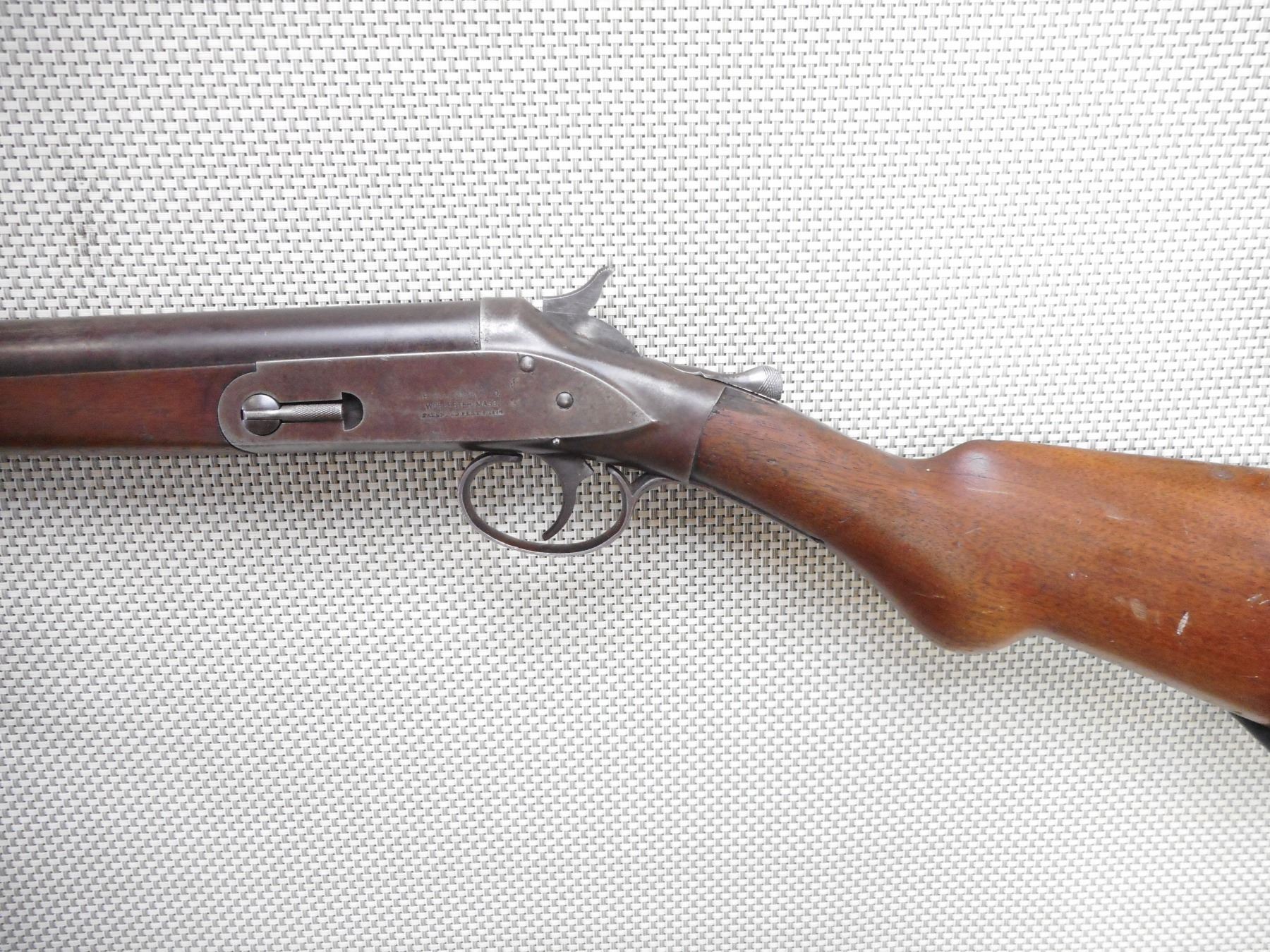 FOREHAND & WADSWORTH , MODEL: SINGLE SHOT , CALIBER: 12GA X 2 3/4" , CYLINDER BORE IN GOOD CONDITION. BEAD FRONT SIGHT. TWO PIECE HARDWOOD STOCK WITH PLASTIC BUTT PLATE. RETAINS ORGINAL DAVENPORT TAKEDOWN SYSTEM. CHIPPED AND CRACKED AT THE WRIST. SHOWS SOME HANDLING MARKS.ACTION: SINGLE SHOT SHOTGUN , BARREL LENGTH: 29 1/2" , SERIAL # 49388 , CONDITION: 5/10 , CLASS: CANADIAN NON RESTRICTED CLASS