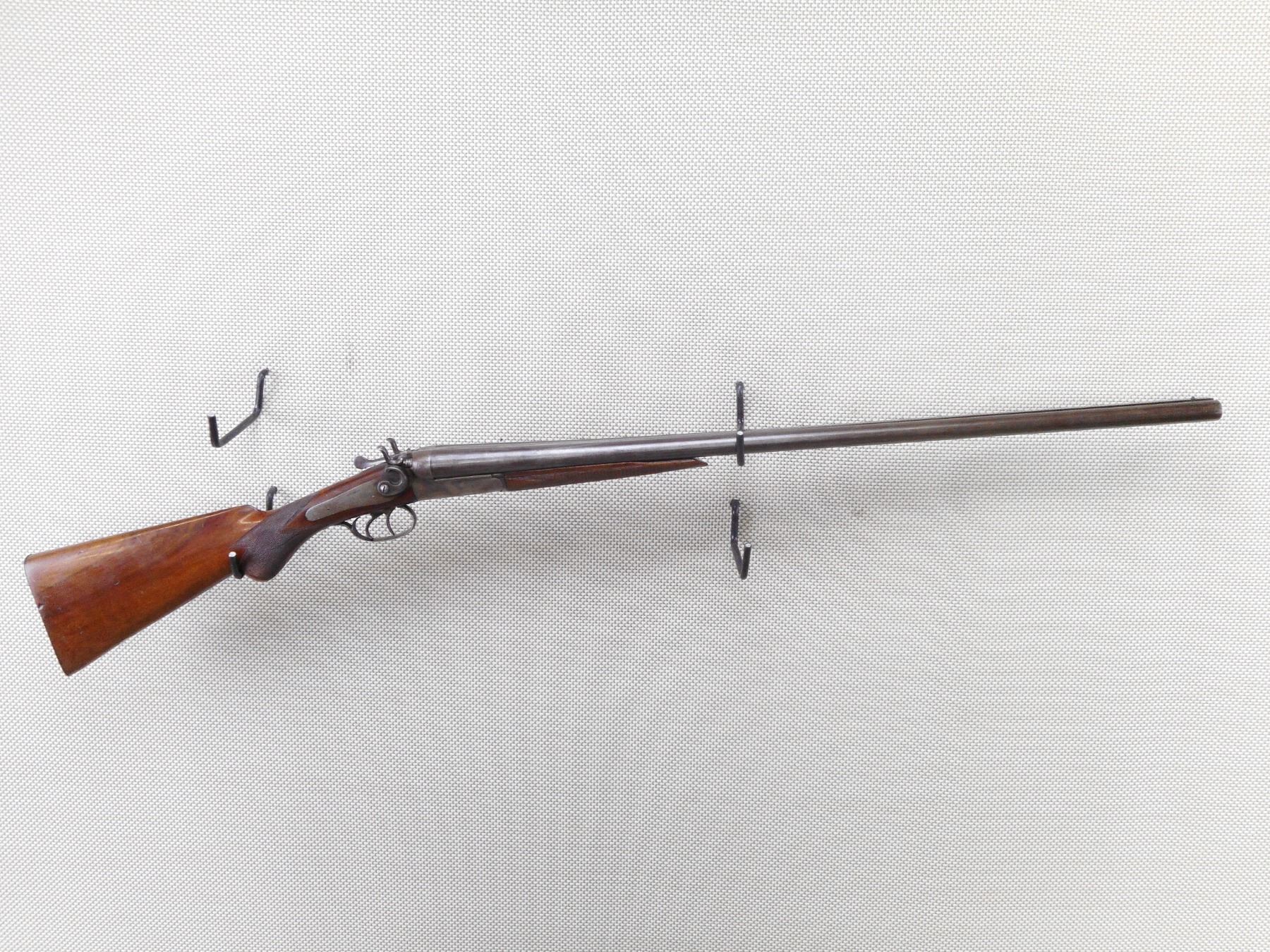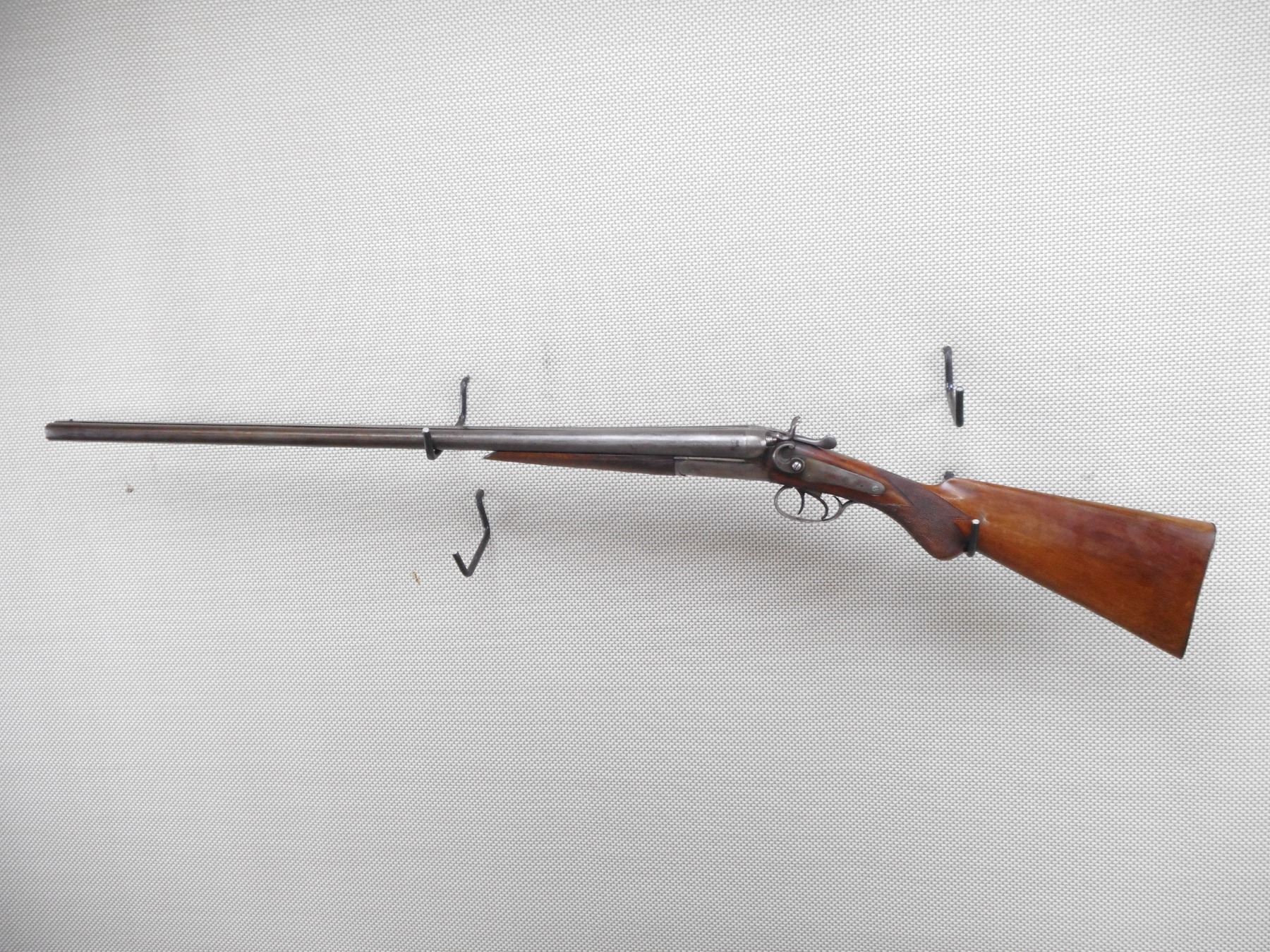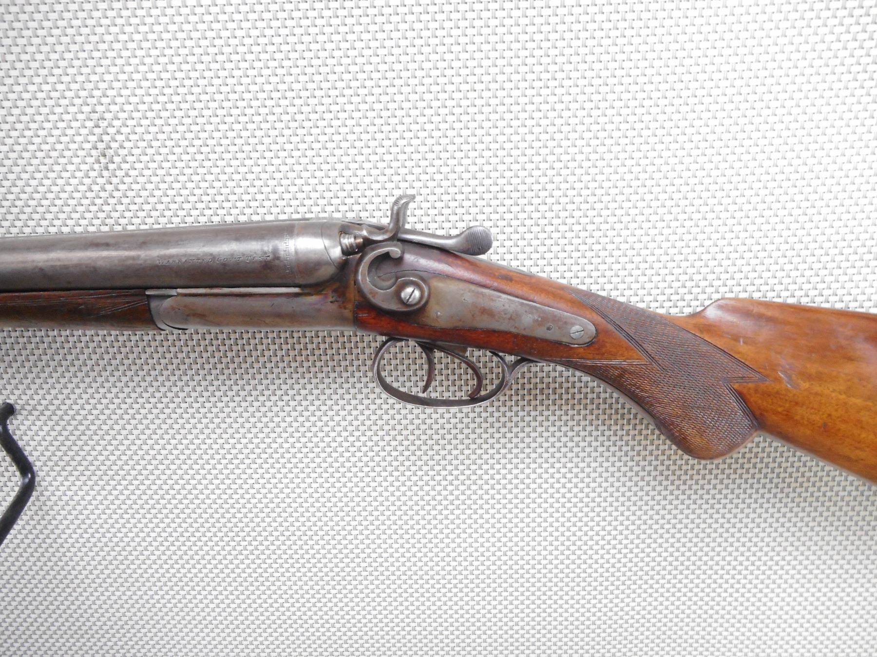 JANSSEN SONS & CO , MODEL: SIDE BY SIDE , CALIBER: 12GA X 2 3/4" , BORES ARE GOOD. FIXED IMPROVED AND MODIFIED CHOKES. BEAD FRONT SIGHT. CHECKERED TWO PIECE HARDWOOD STOCK WITH STEEL BUTT PLATE. BRASS DISK IN THE BUTT STOCK. ACTION IS TIGHT. SHOWS SOME HANDLING MARKS. ACTION: BREAK ACTION SIDE BY SIDE SHOTGUN , BARREL LENGTH: 30" , SERIAL # 21415 , CONDITION: 6/10 , CLASS: CANADIAN NON RESTRICTED CLASS