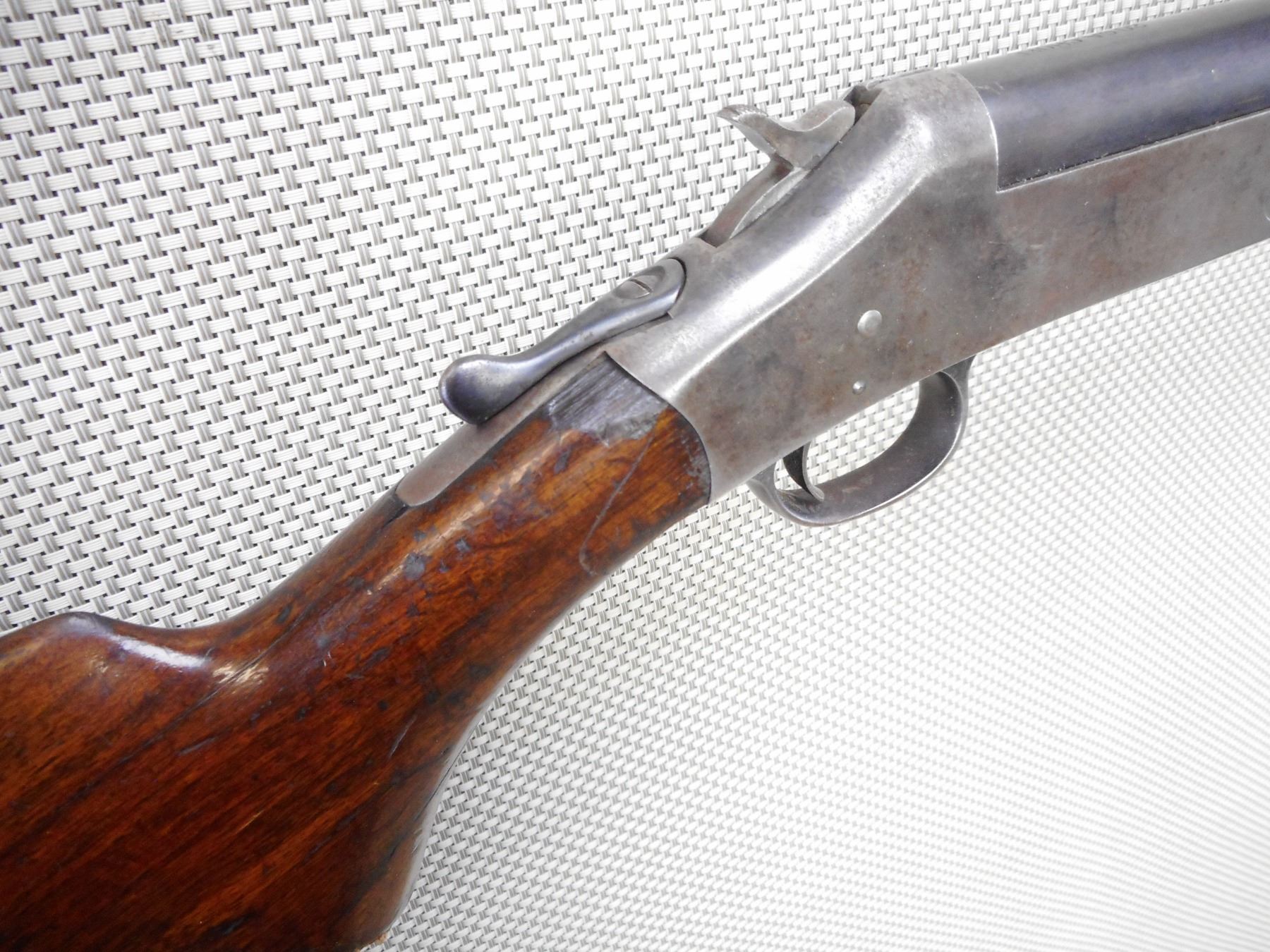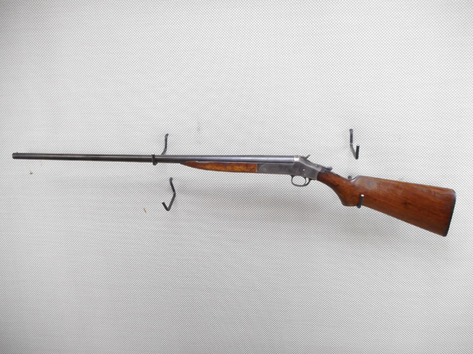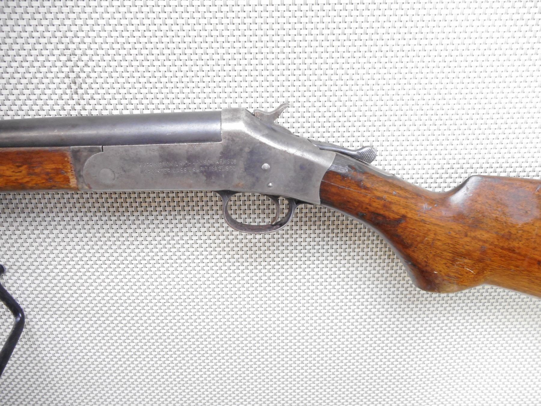 HARRINGTON & RICHARDSON , MODEL: SINGLE SHOT , CALIBER: 20GA X 2 3/4" , BORE IS VERY. FIXED MODIFIED CHOKE. BEAD FRONT SIGHT. TWO PIECE HARDWOOD STOCK WITH SMALL CHIP IN THE FOREND. SHOWS EXTENSIVE HANDLING MARKS. LARGE CHIP AT THE WRIST. ACTION: SINGLE SHOT BREAK ACTION SHOT GUN , BARREL LENGTH: 30" , SERIAL # 194211 , CONDITION: 6/10 , CLASS: CANADIAN NON RESTRICTED CLASS