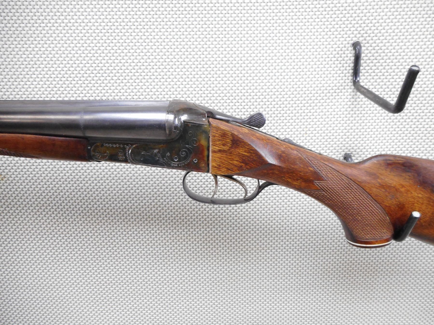 BAIKAL , MODEL: IJ-26 , CALIBER: 12GA X 2 3/4" , CAN'T OPEN ACTION WILL REQUIRE GUN SMITH TO FIX. FIXED FULL AND MODIFIED CHOKE. BORES ARE GOOD. BEAD FRONT SIGHT. CHECKERED TWO PIECE HARDWOOD STOCK WITH POORLY FITTING BUTT STOCK. PLASTIC BUTT PLATE. SLING SWIVEL LOOPS. RICHLY CASE HARDENED RECEIVER. COCKING INDICATORS. SMALL CHIP AT THE WRIST. ACTION: SIDE BY SIDE BREAK ACTION SHOTGUN , BARREL LENGTH: 28" , SERIAL # N/A , CONDITION: 3/10 , CLASS: CANADIAN NON RESTRICTED CLASS