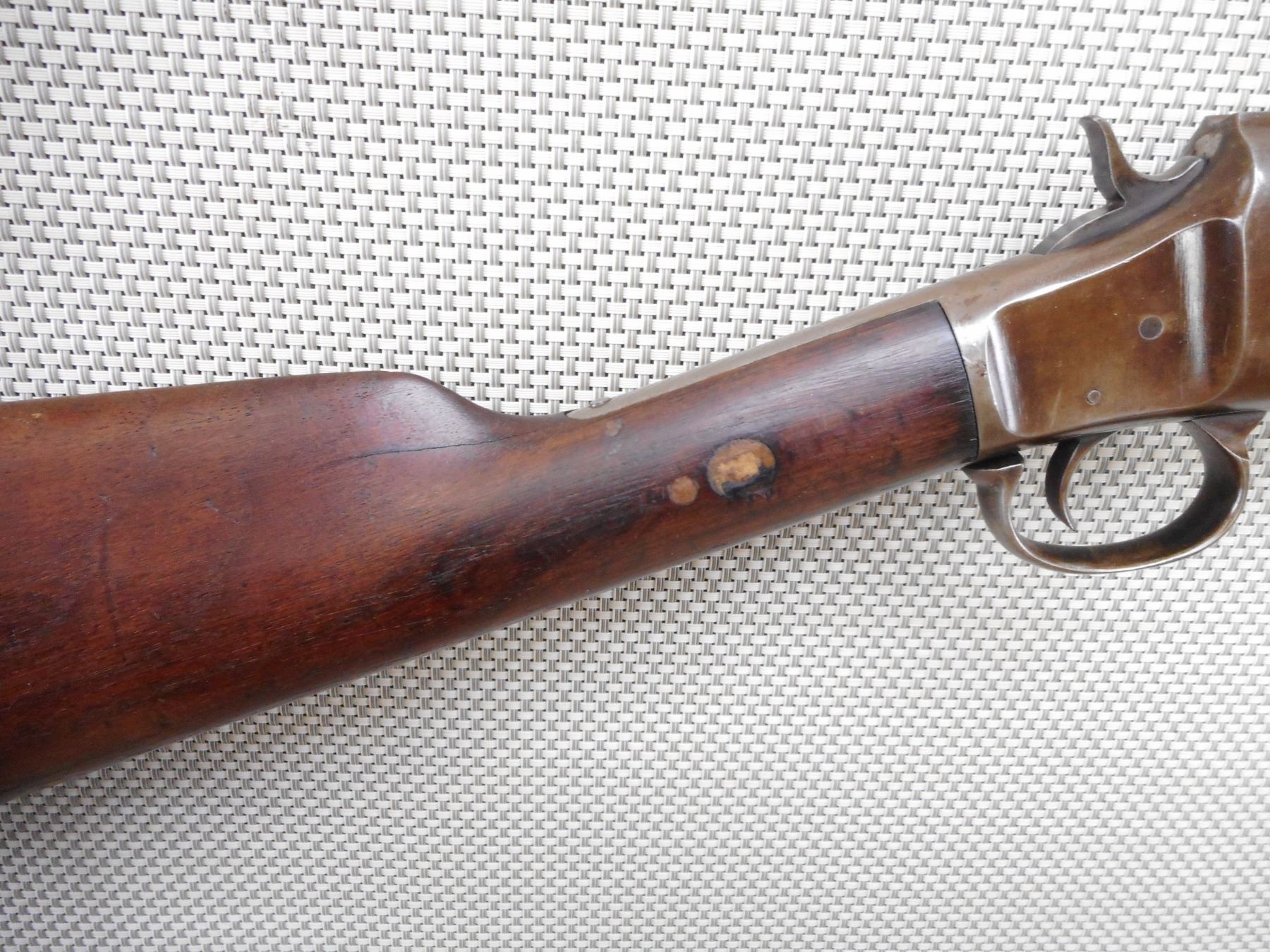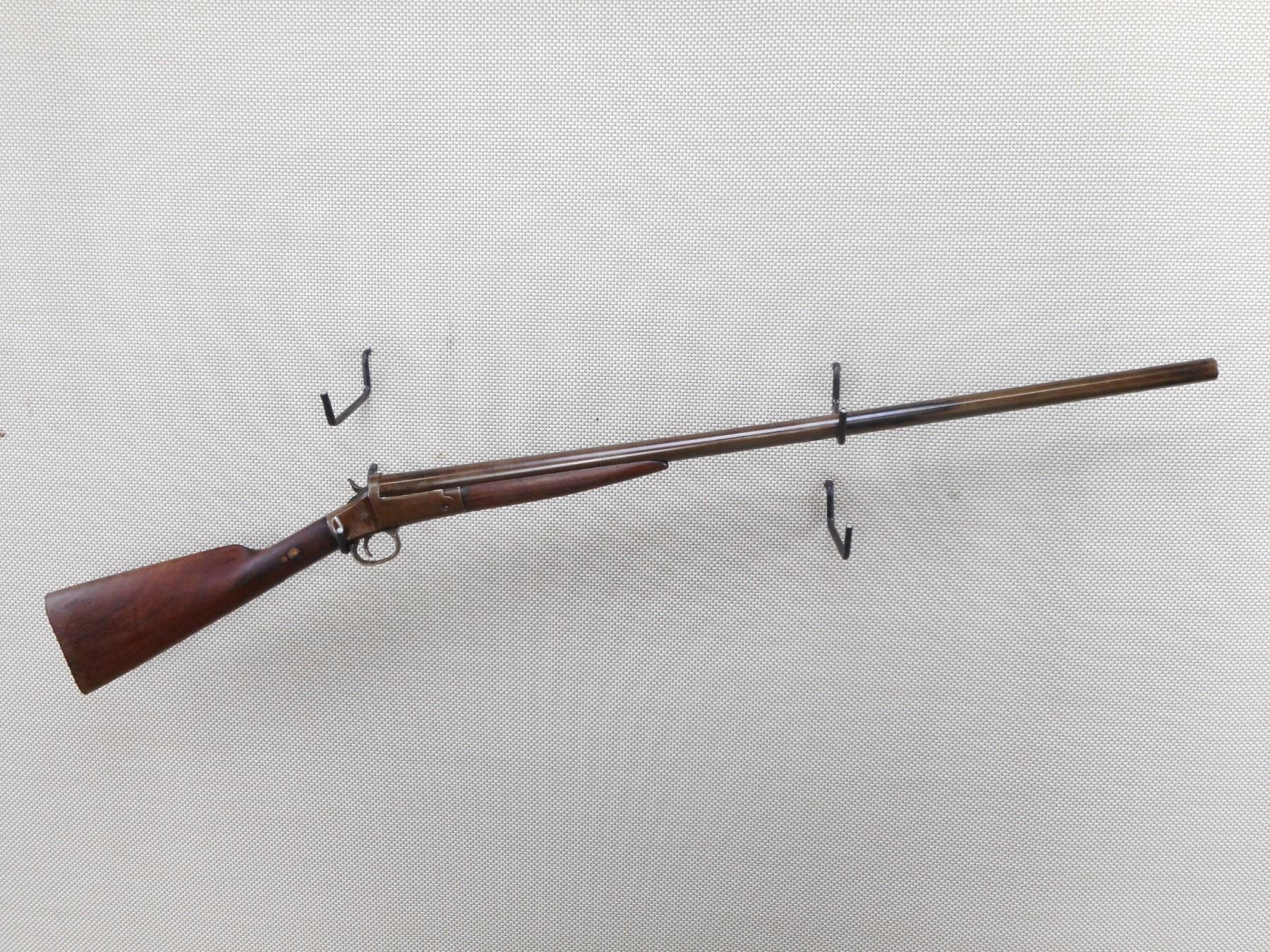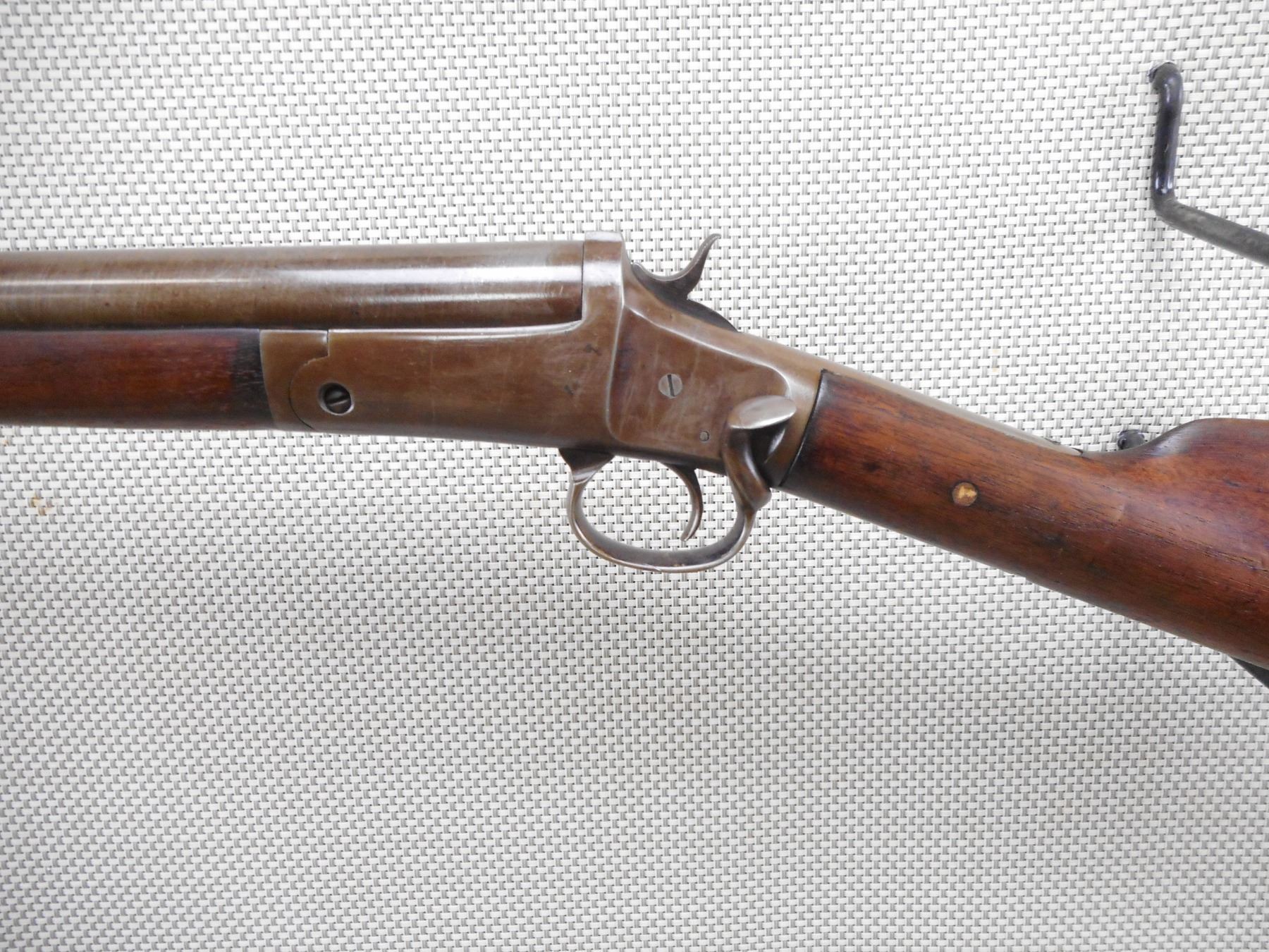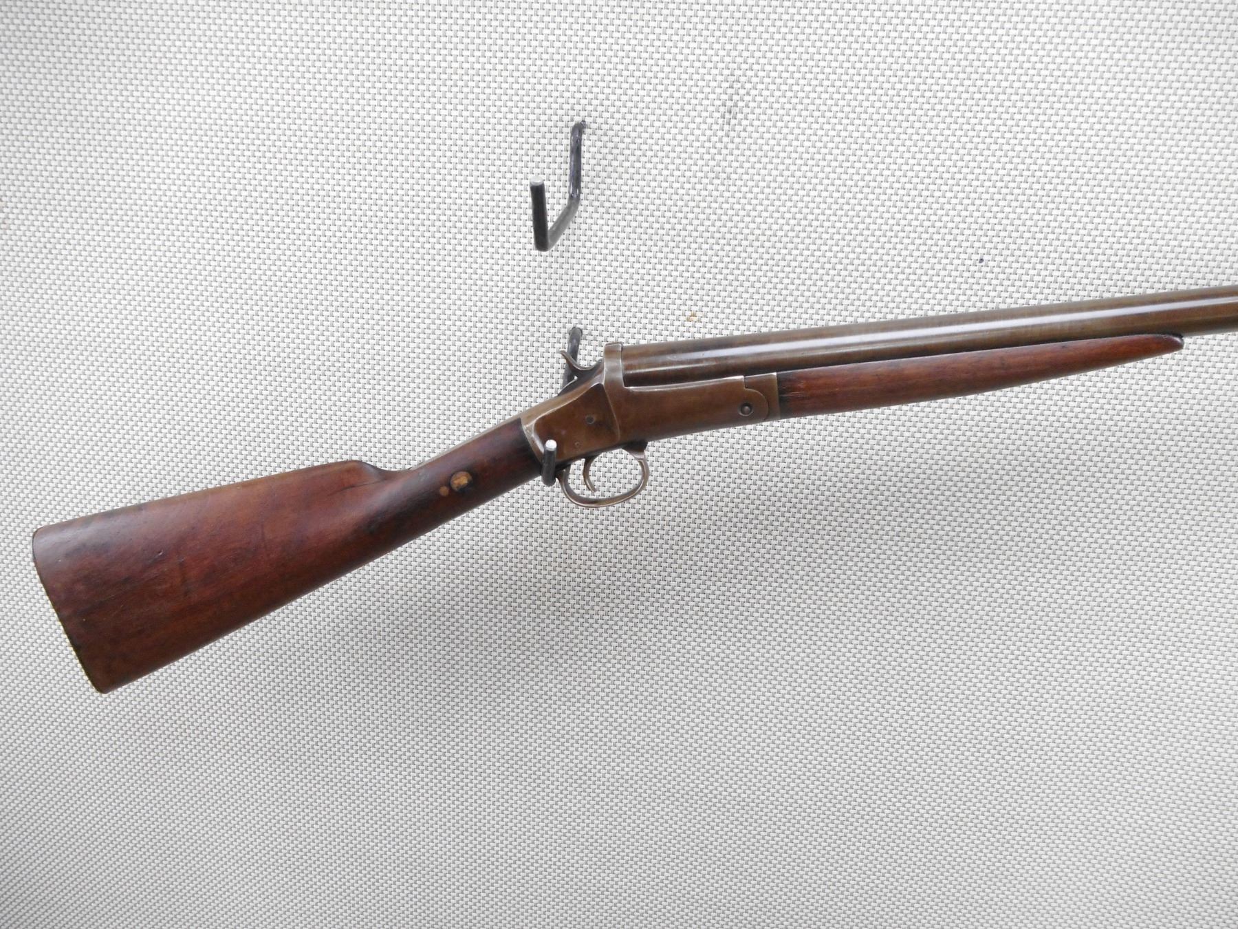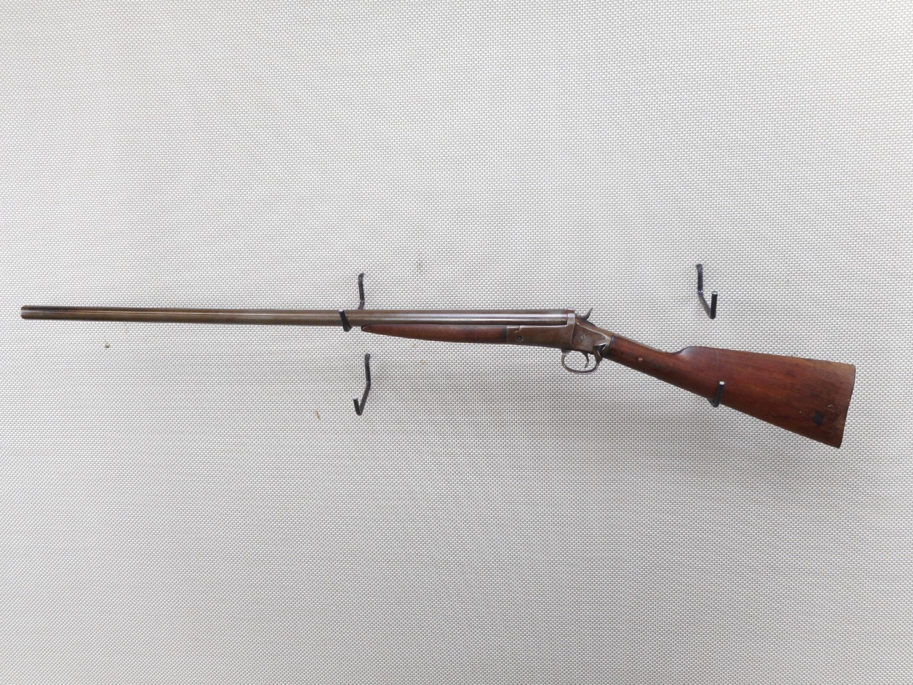 UNKNOWN , MODEL: CHAMPION SINGLE SHOT , CALIBER: 12GA X 2 3/4" , MAKER IS NOT MARKED. BORE IS FAIR WITH PITTING. CYLINDER CHOKE. MISSING BEAD FRONT SIGHT. DAMASCUS PATTERN BARREL. SMOOTH WOOD FOREND. STRAIGHT GRIP BUTT STOCK WITH REPLACED BRASS BUTT PLATE. STOCK REPAIRED AT THE WRIST. UNIQUE TRIGGER GUARD OPENING LEVER. SHOWS NUMEROUS HANDLING MARKS AND WEAR. ACTION: SINGLE SHOT BREAK ACTION SHOT GUN , BARREL LENGTH: 30" , SERIAL # 14055 , CONDITION: 4/10 , CLASS: CANADIAN NON RESTRICTED CLASS