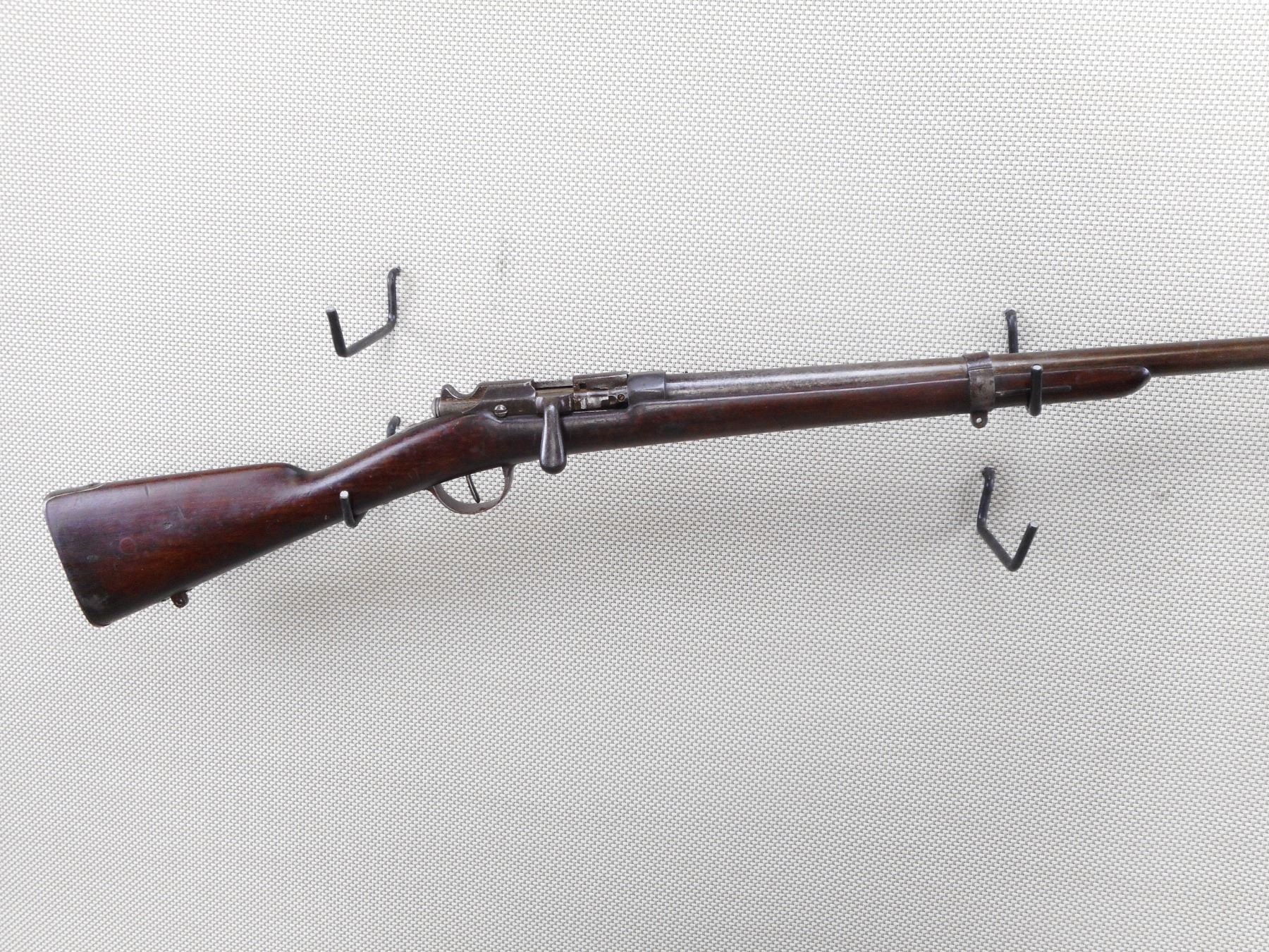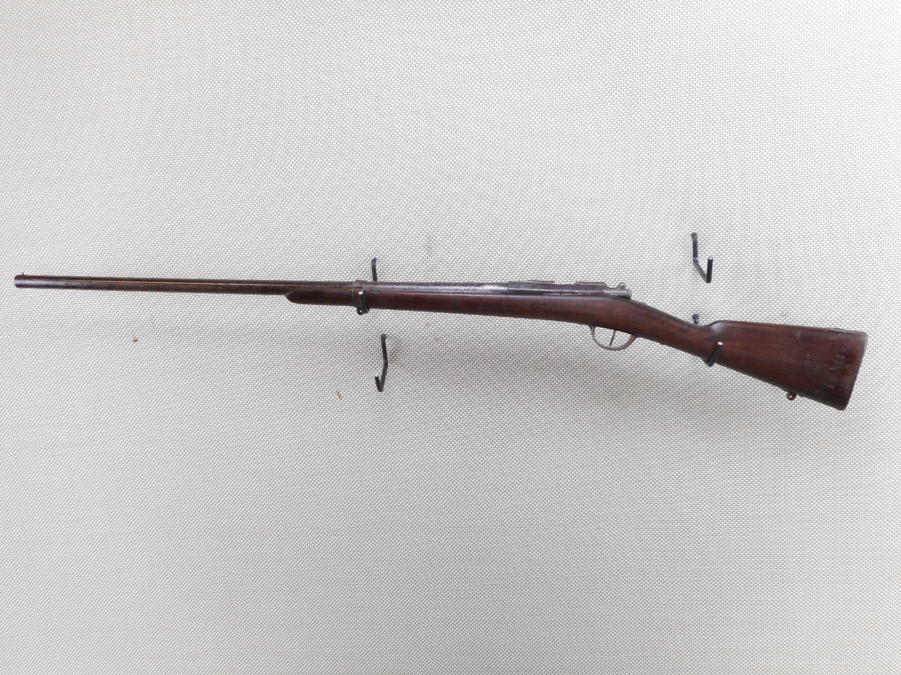 GRAS , MODEL: M80 , CALIBER: 12GA X 2 3/4" , BORE IS FAIR WITH PITTING. CYLINDER CHOKE. BRASS BEAD FRONT SIGHT. METAL FINISH IS SILVER GREY WITH LIGHT PITTING. ONE BARREL BAND. LIGHT PITTING. STRAIGHT GRIP STOCK WITH STEEL BUTT PLATE. SWIVEL STUDS. EXTRACTOR IS BROKEN. SHOWS NUMEROUS HANDLING MARKS AND WEAR. ACTION: BOLT ACTION SINGLE SHOT SHOTGUN , BARREL LENGTH: 29 1/2" , SERIAL # N/A , CONDITION: 4/10 , CLASS: CANADIAN NON RESTRICTED CLASS