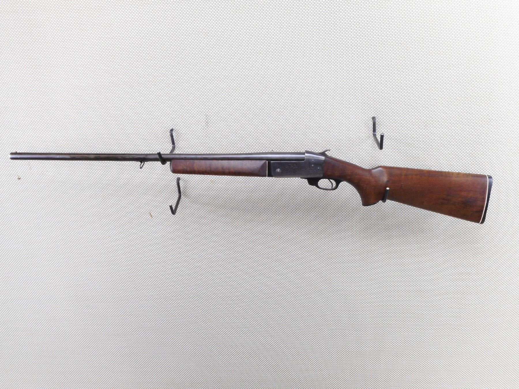 CIL , MODEL: 402 , CALIBER: 20GA X 2 3/4" , BORE IS EXCELLENT. FIXED FULL CHOKE. BRASS BEAD FRONT SIGHT. WOOD FOREND. PISTOL GRIP BUTT STOCK WITH CAP. GROOVED BLACK POLYMER BUTT PLATE. METAL FINISH IS TURNING SILVER GREY. SLING LOOPS ON BARREL. CRACKS IN THE FOREND. SHOWS NUMEROUS HANDLING MARKS AND WEAR. ACTION: SINGLE SHOT BREAK ACTION SHOT GUN , BARREL LENGTH: 28" , SERIAL # 430099 , CONDITION: 5/10 , CLASS: CANADIAN NON RESTRICTED CLASS