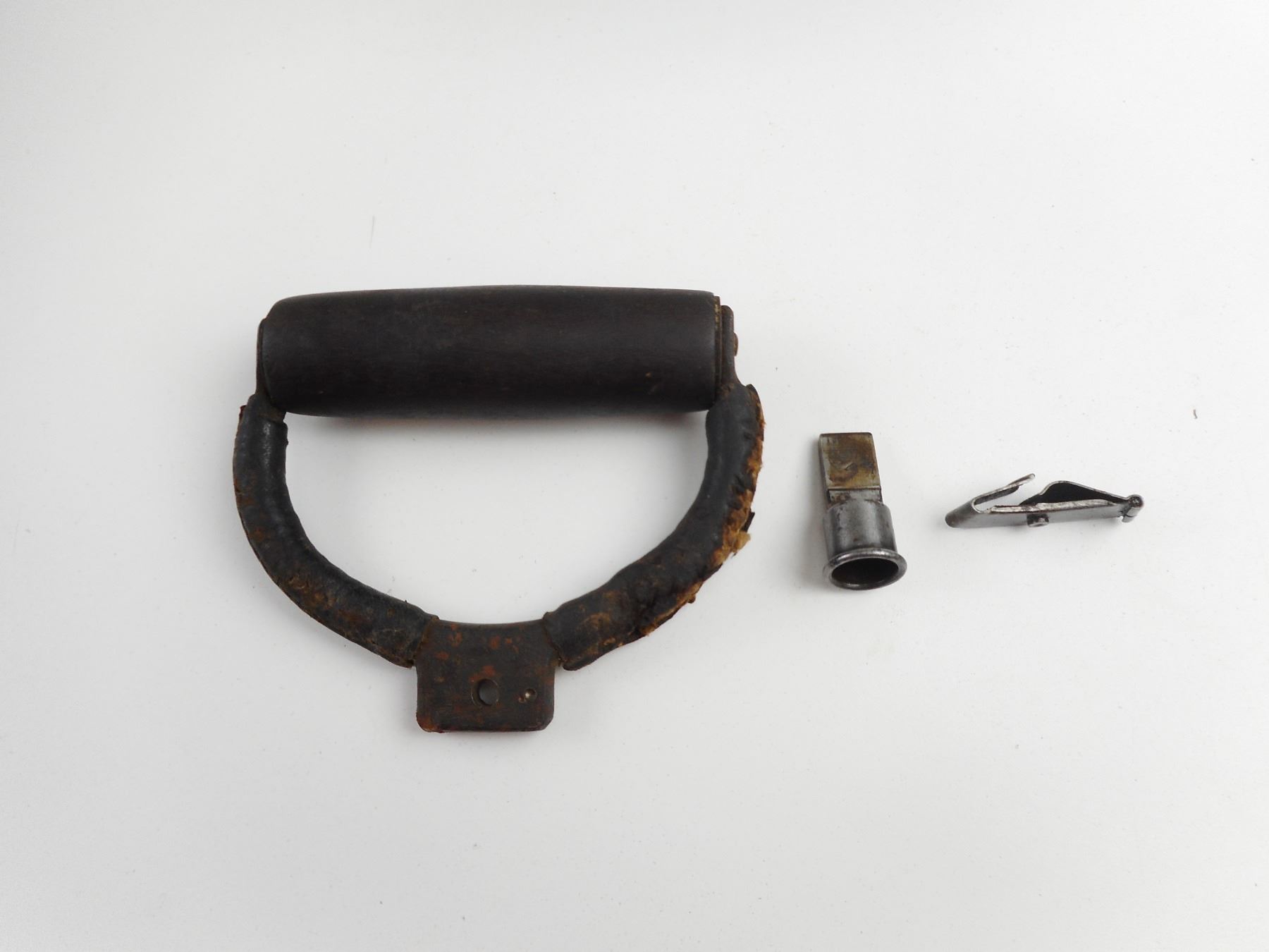 WWI BRITISH LEWIS .303 MG PARTS , (1) COCKING HANDLE (1) CARTRIDGE GUIDE (1) CARRYING HANDLE (NO BRACKET). SOME FAINT BROAD ARROW MARKS. LOT OF 3 CLASS: NO LICENSE REQUIRED