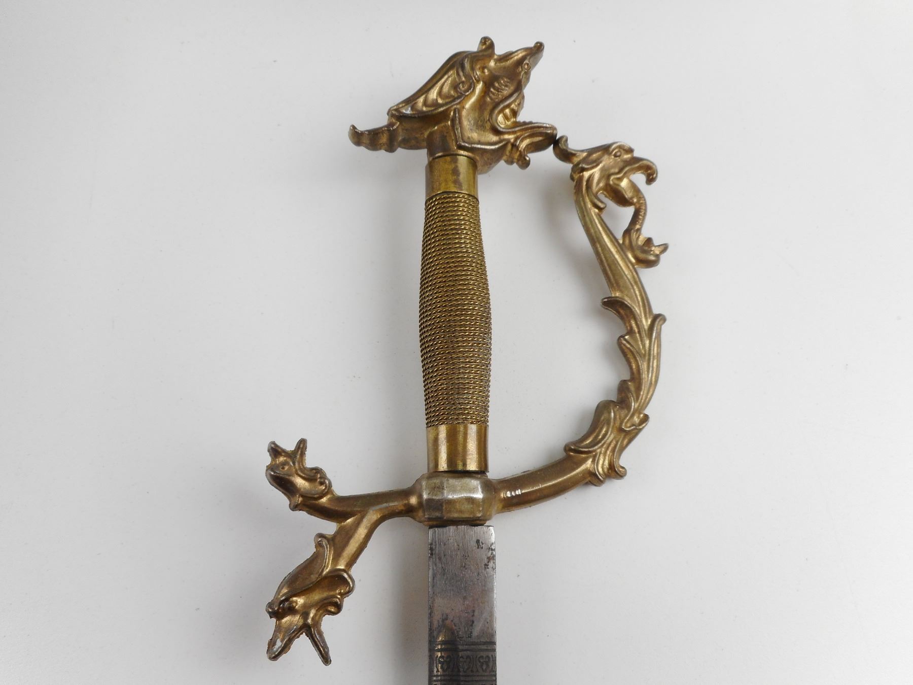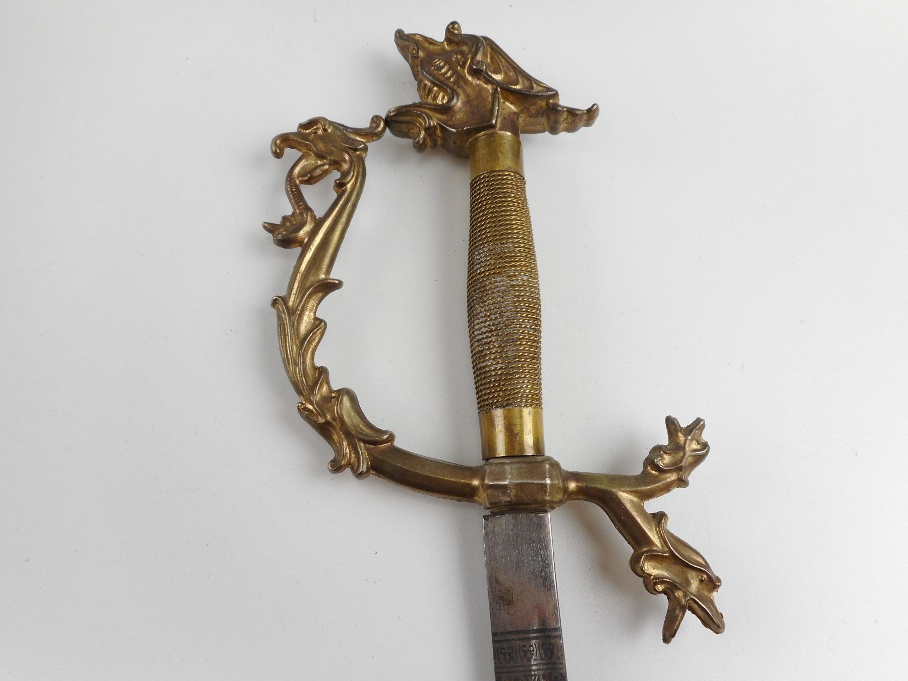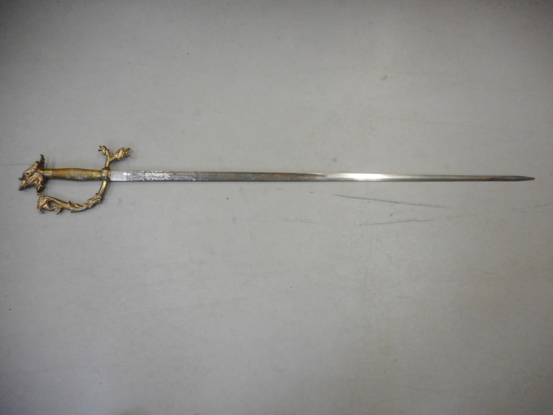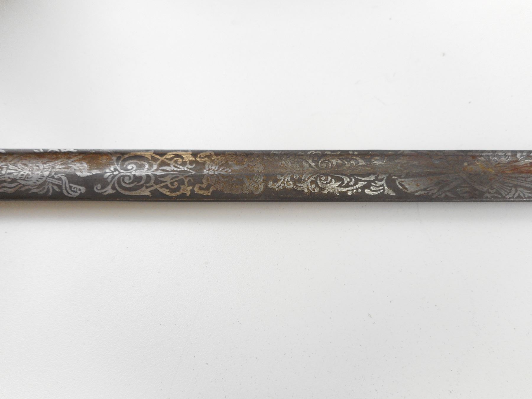 REPRODUCTION ITALIANA SWORD , DECORATIVE BLADE. BLADE LENGTH APPROX. 32.5" APPROX. TOTAL LENGTH 39"