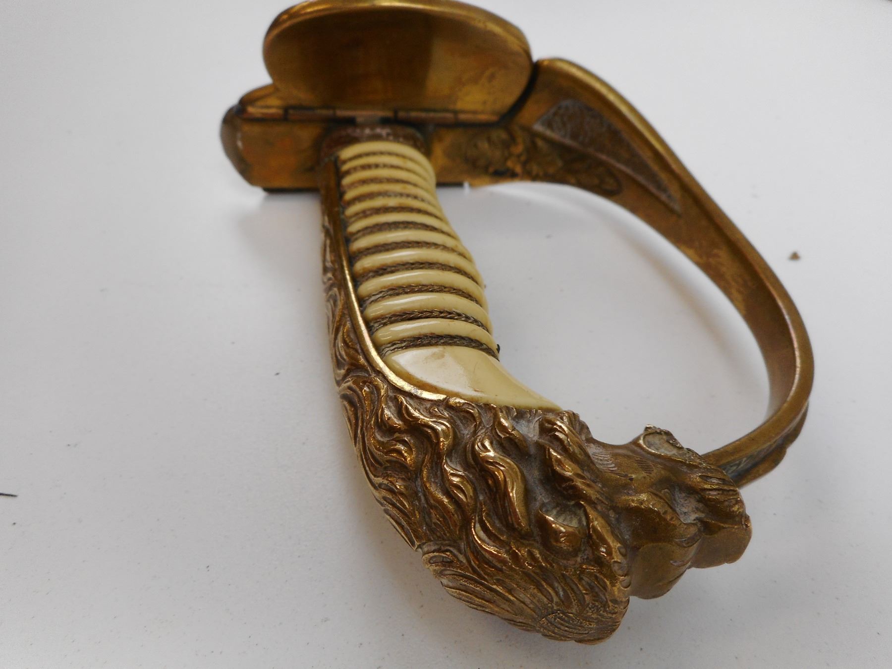 GERMAN KRIEGSMARINE NAVAL SWORD BY E & F HORSTER SOLINGEN WITH MATCHING SCABBARD , RICASSO MARKED SHH EMBLEM, AND E&F HORSTER SOLINGEN. CROSS GUARD MARKED N113, HAS LION HEAD ON HANDLE. BLADE LENGTH APPROX. 27" TOTAL LENGTH APPROX. 32.75". SCABBARD MATCHES SWORD AND CLASPS IN NICELY, MARKED N113 WITH AN IMPERIAL EAGLE.