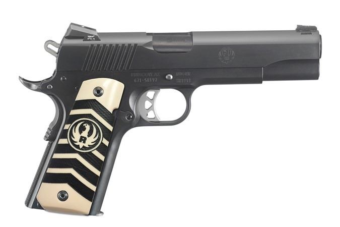 $885 FFL Cost, $1009 Retail, 5" BRL, Chevron Ivorylite Grips, Black Nitride Finish, Skeletonized Trigger & Hammer, 8 shot, 40.4 oz, Oversize Beavrtail/Grip Safety, Night Sights,