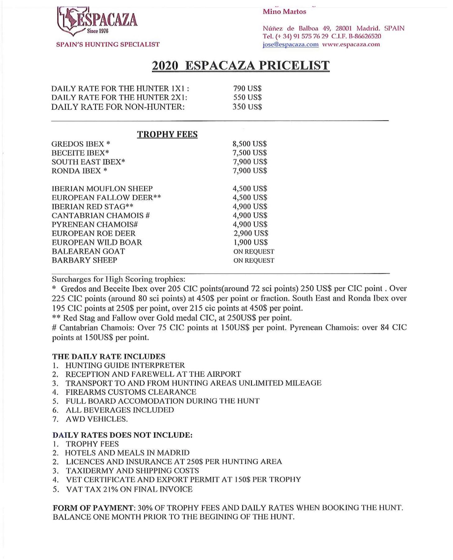 Lot 2 Spain Hunt - Espacaza