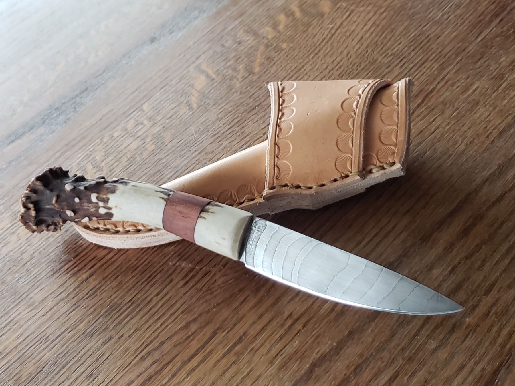Tim Louk of Fa’el’s Forge has donated a Damascus blade, with stacked 15n20 and 1084 high carbon steels. The handle is a laminated Whitetail deer antler with paduk (a West African hardwood) accent. Sheath is 9 oz waxed leather and is ambidextrous so it can be carried on either hip, or in the small of your back for right or left handed draw. Both the knife and sheath are Tim’s creations. Tim is well known for his appearance on “Forged in Fire” and he was the winner of Season 5, Episode 15 of “The Kelewang.”