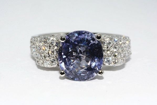 oval-shaped unheated purple hue sapphire weighing 3.88 carats.