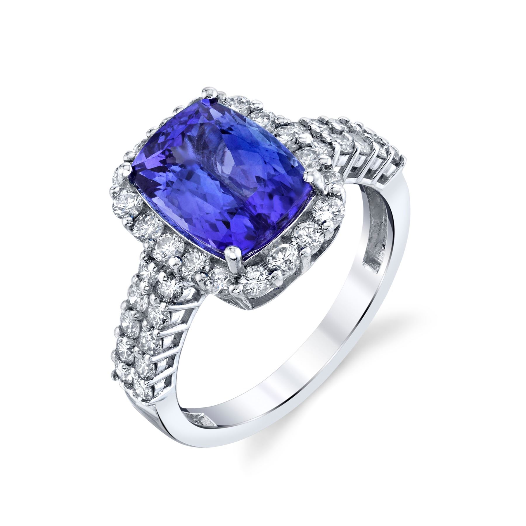 Lot 17G BARANOF JEWELERS Natural Tanzanite and Diamond Ring set in 14k White Gold.