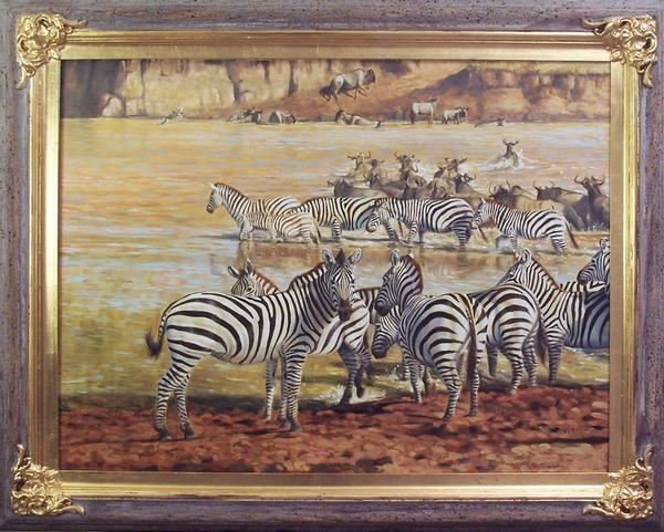 Grant Hacking has donated an Original Oil on Linen titled 'Great Crossing.' Hacking is an exhibitor who has had his art on the cover of Safari Magazine four separate times. He was born and raised in South Africa and resided there until the age of twenty-five, so he still experiences great pleasure in depicting the diverse animal life native to the African Continent. This painting depicts the river crossing during the great migration. It measures 30-in. x 40-in., and is in a rustic wood frame with a gold lip. For more information, contact Grant V. Hacking at 603-356-6944 and visit www.granthacking.com.
