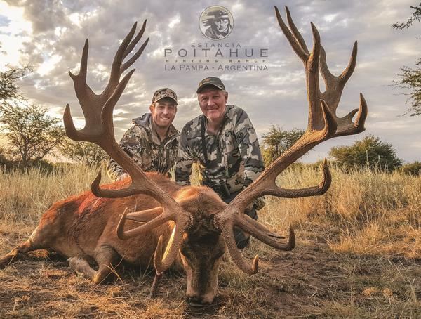 Two hunters will travel to Argentina for this 7-night/6-day, 1x1 guided hunt by Poitahue Hunting and PH Santiago Rossi, who also guides in the US and NZ, for one free-range red stag with no limit in size, two free-range bronze-medal blackbucks up to 60 SCI Score, one bronze-medal water buffalo up to 75 SCI, and one management stag donated by Poitahue Hunting Ranch. The total game included will be shared by the two hunters. Schedule hunt with outfitter for open dates March-May 2020 or 2021. Method of take is hunters' choice. Poitahue Hunting Ranch offers one of Argentina's best spots for rifle and bow hunting red deer stag, fallow deer, water buffalo and other exotics within its family-owned 80,000 acres of free-range. Endless woods, green plains, moderate hilly terrain and rich fauna will ensure unique scenery for a truly wild hunting experience that maximizes the chances of facing monster red stags. Included are accommodations, airport transfers, meals, guide service, trophy fees for one free-range red stag, two free-range blackbucks, one water buffalo and one management stag and field prep. Additional hunters are welcome; see outfitter for details. Not included are any before/after hunt expenses, trophy export, packaging/shipping, gratuities and Poitahue's regular charter flight to La Pampa (optional service at $800/per round trip). Arrival/departure point is Buenos Aires, Argentina. For more information, contact Santiago Diaz Mathe at Int. Cell 214-329-9013 or at info@poitahue-hunting.com. Company's website: www.poitahue-hunting.com