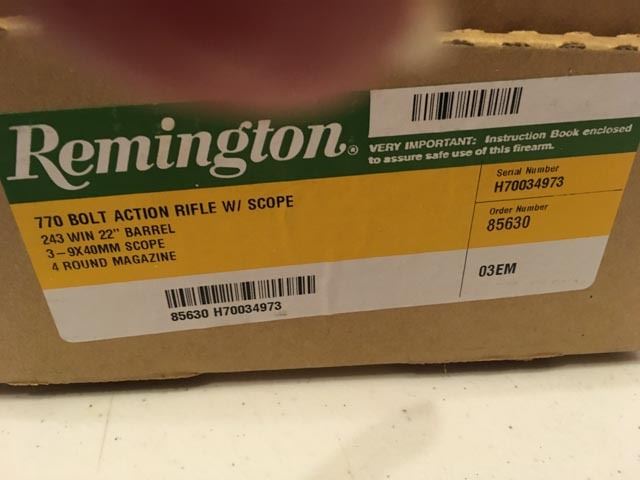 Remington Model 770 in .243 with 3-9 power scope