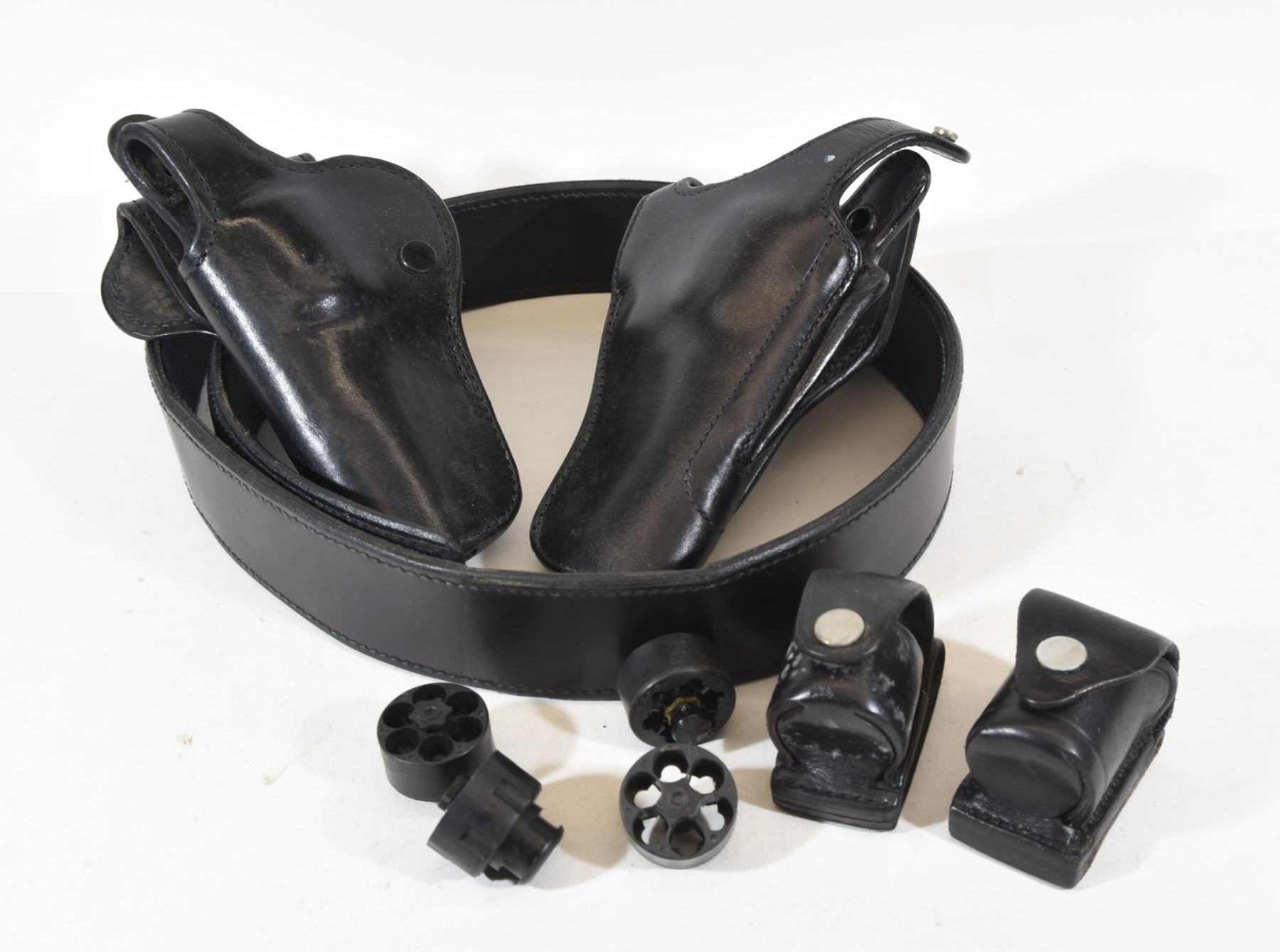 Size 36 tactical belt, left and right holsters, two speed loader holsters and four speed loaders.