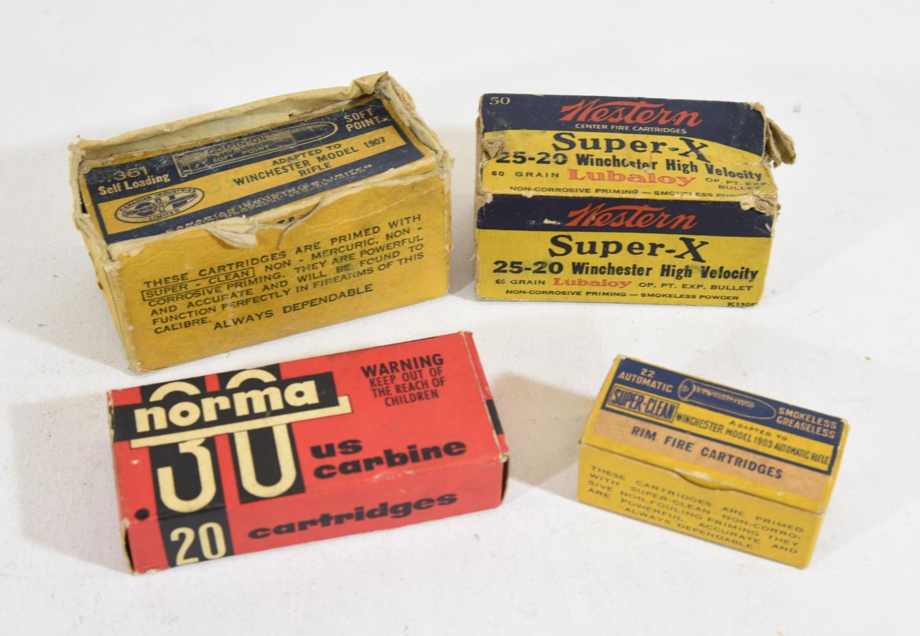 1) Collectors CIL 22 Automatic 45grain 50 rounds 2) Collectors 30 US Carbine 110grain 20 rounds 3) Collectors 25-20 Winchester 60grain 30 rounds 4) Collectors .351CF 180grain 35 rounds