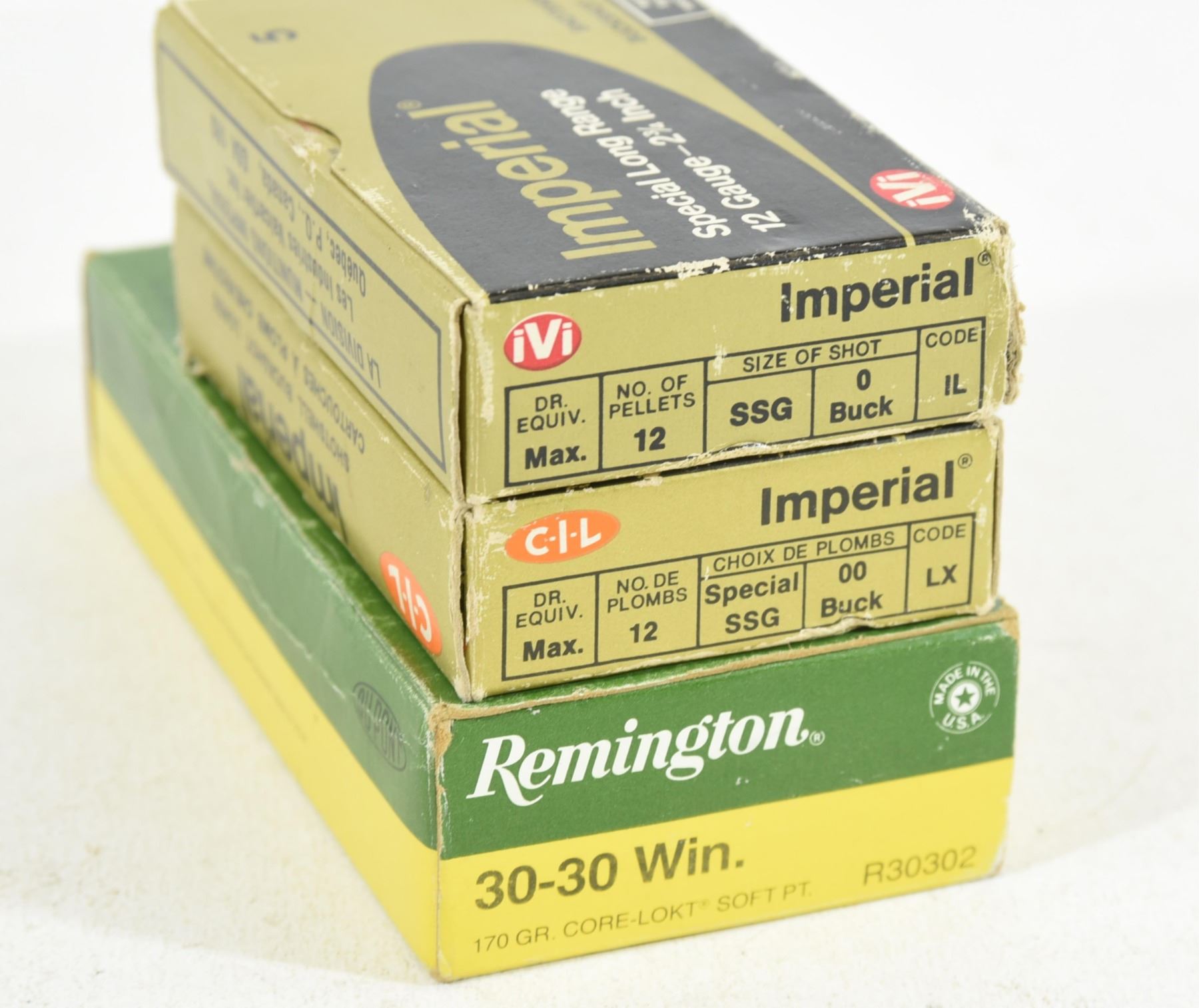 20 rounds Remington 30-30 Win 170grain Core Lokt SP, 5 Rounds Imperial 00BK, 5 Rounds Imperial 0BK.