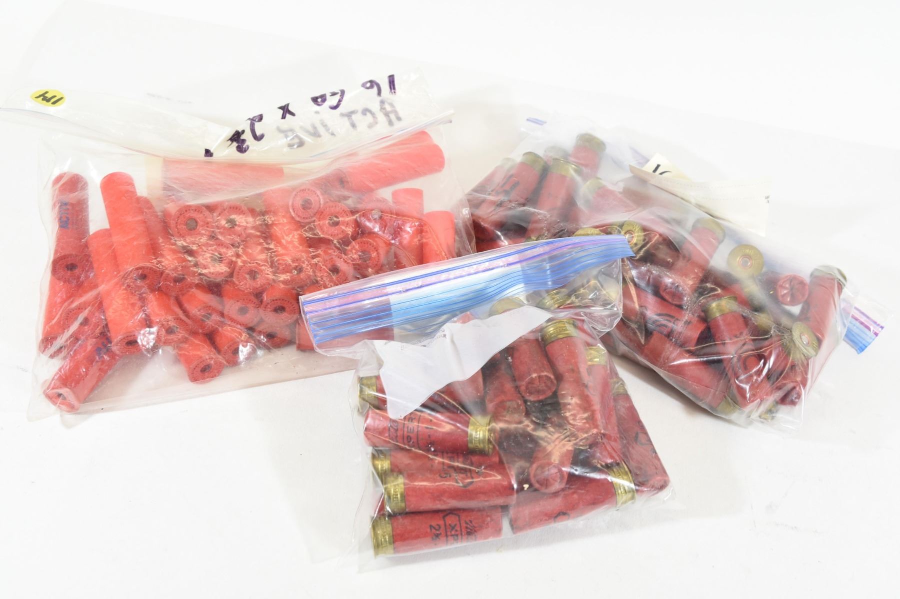 1) 25 rounds 2 3/4" # 6 paper 2) 40 rounds 2 3/4" # 8 plastic 3) 35 pieces 2 3/4" new Active hulls