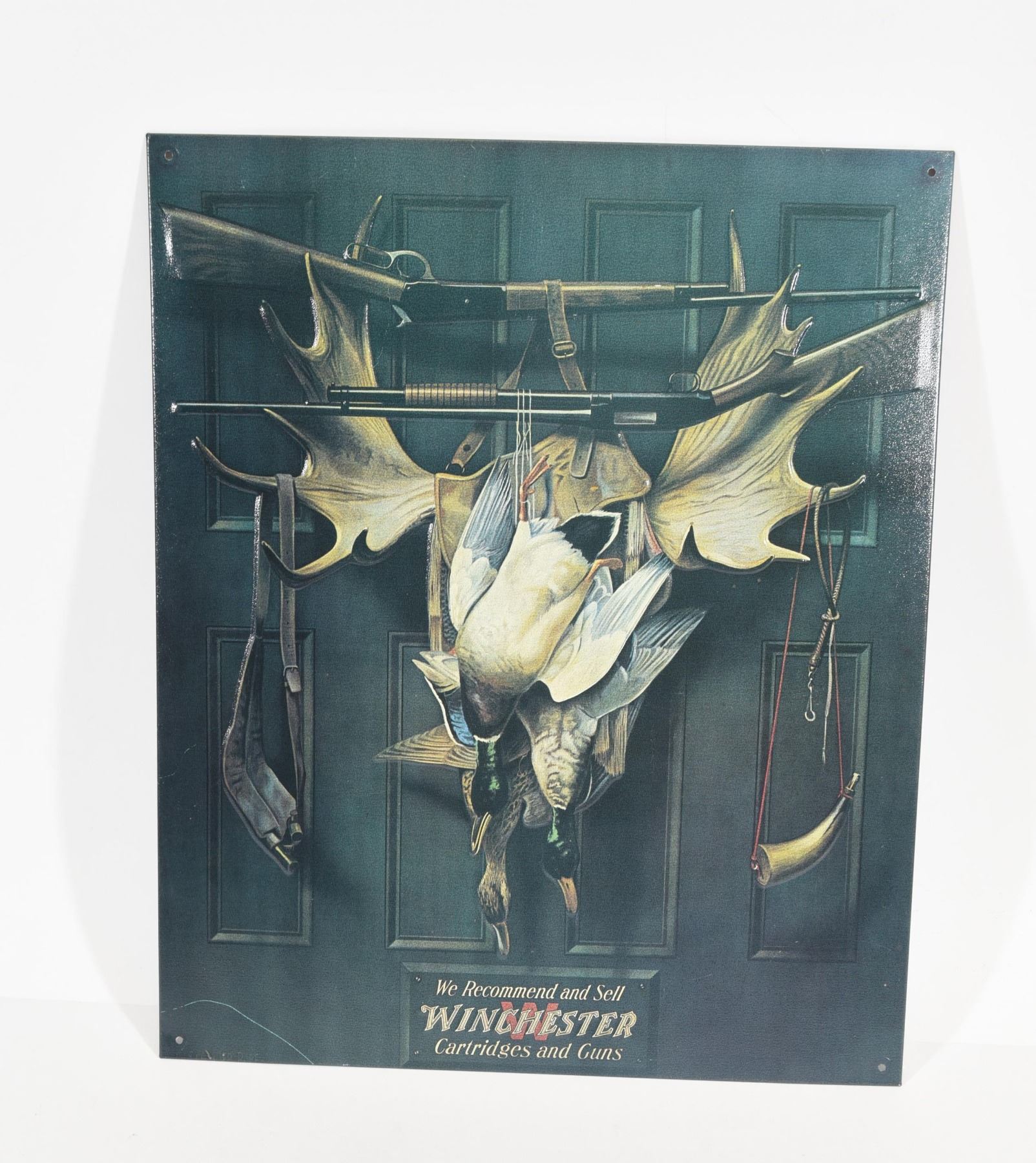 Tin, 15 1/2" high by 12 3/4" wide, has a scratch on bottom left hand corner