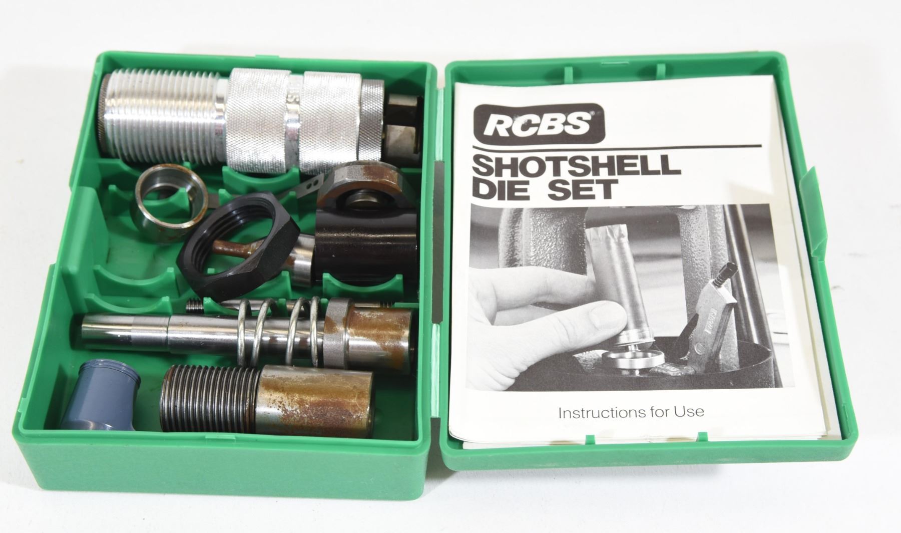 RCBS 12 ga. die set, #99000 to fit standard rifle press. Some parts have surface rust.