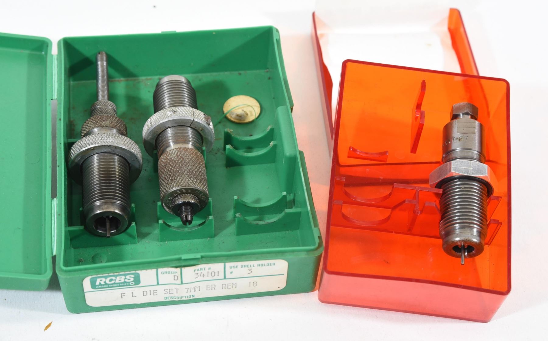 1) RCBS 2 die set for 7mm BR Rem. 2) Lee sizing die for .38/.357 mag and .357 max, carbide
