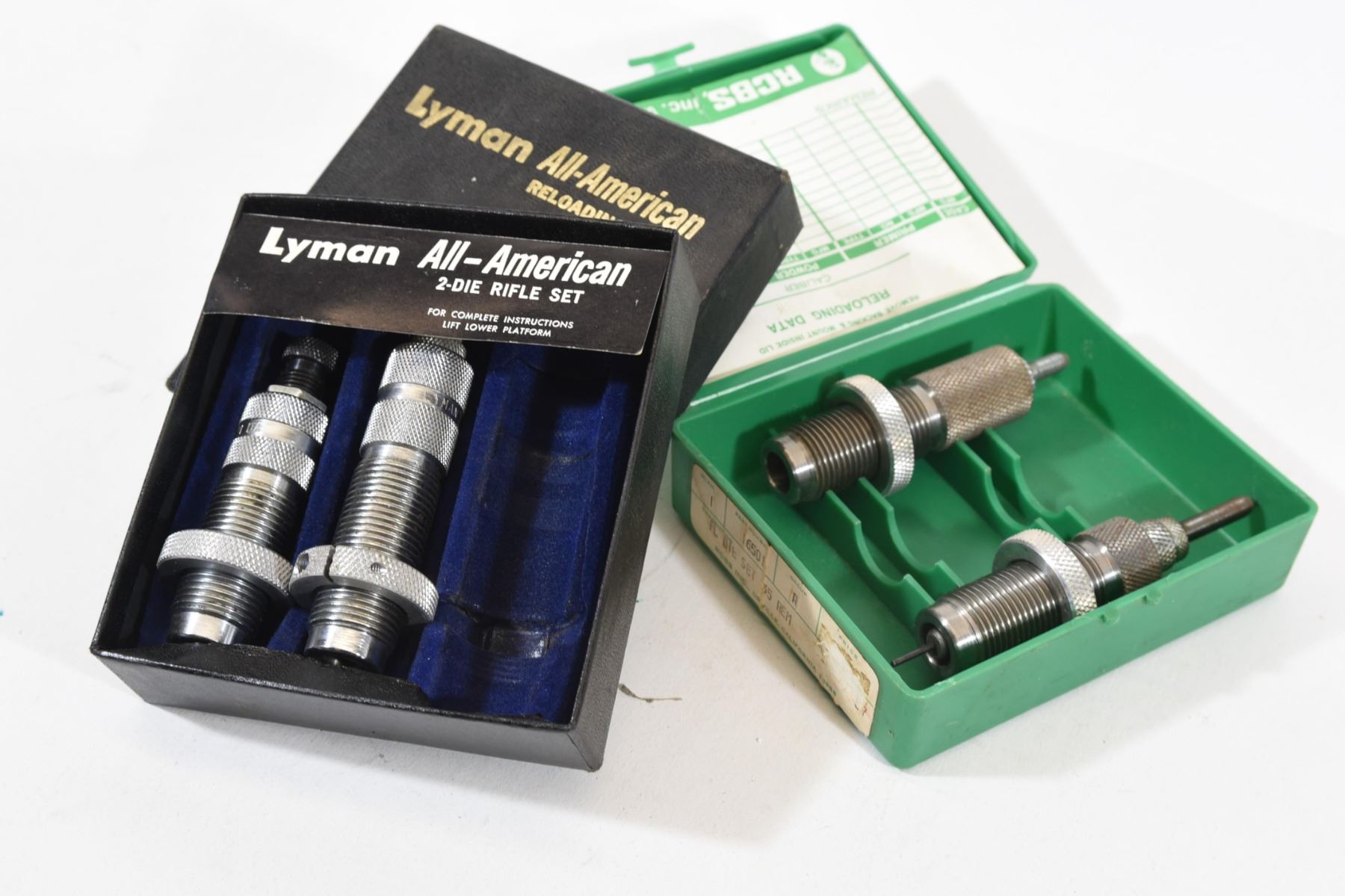 1) RCBS 2 die set for .35 Rem. in good condition 2) Lyman 2 die set for .220 swift in good condition